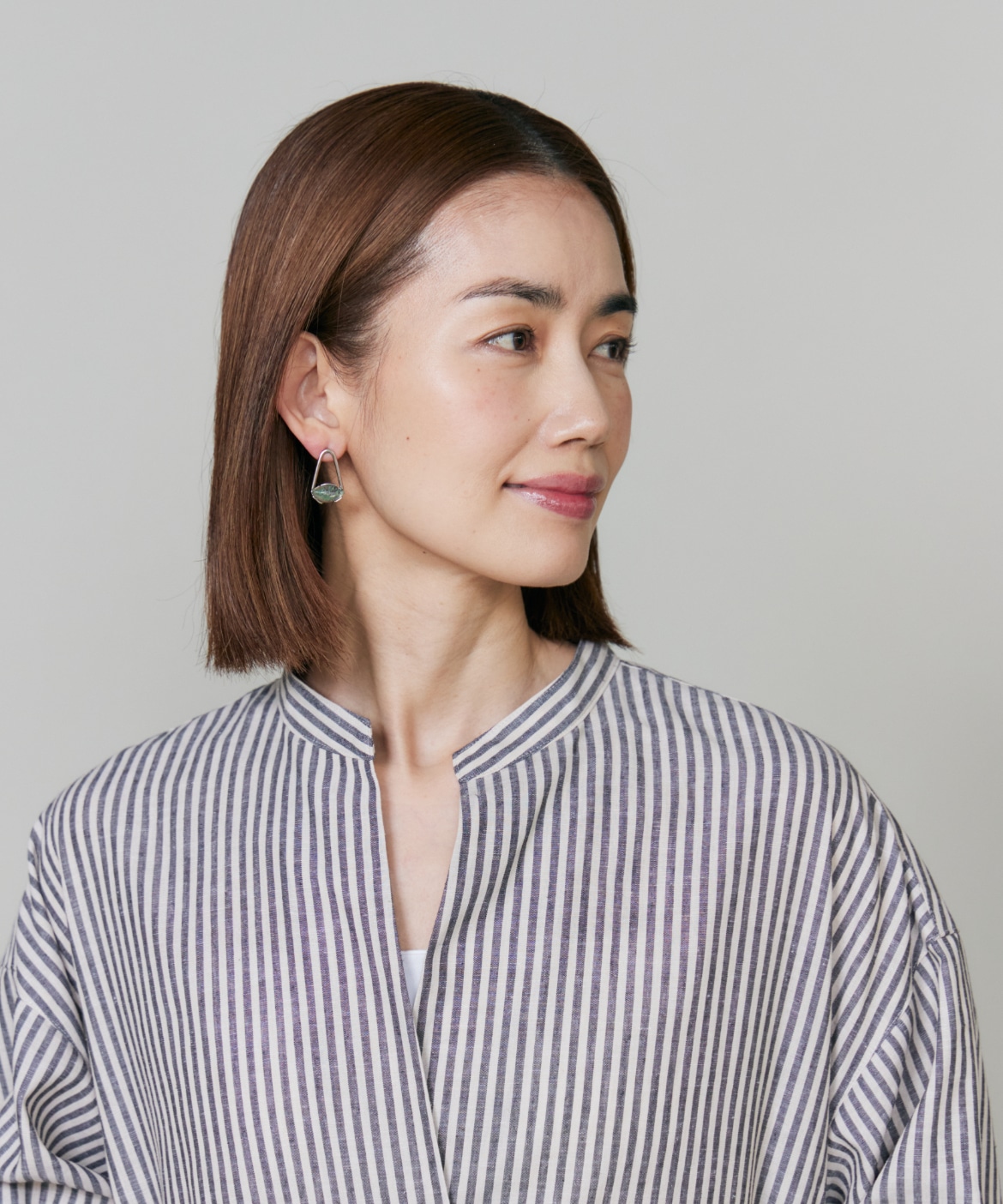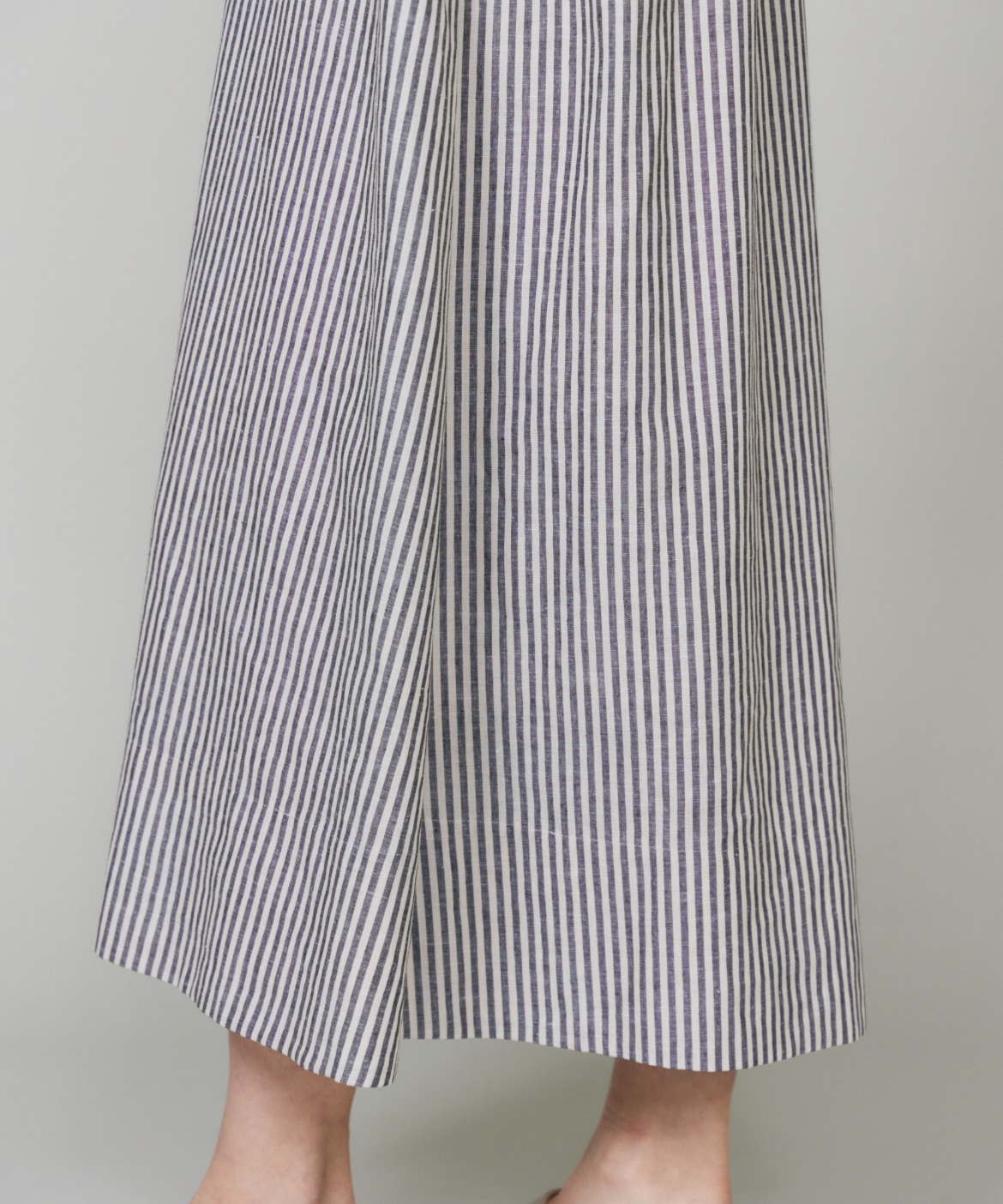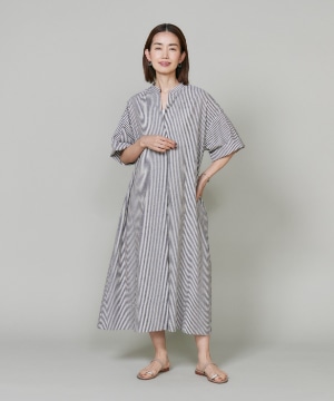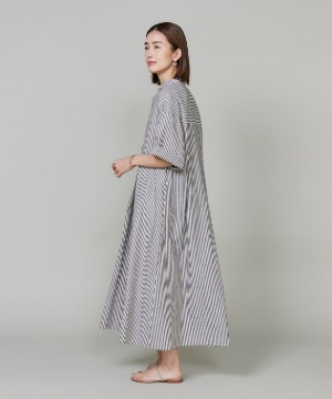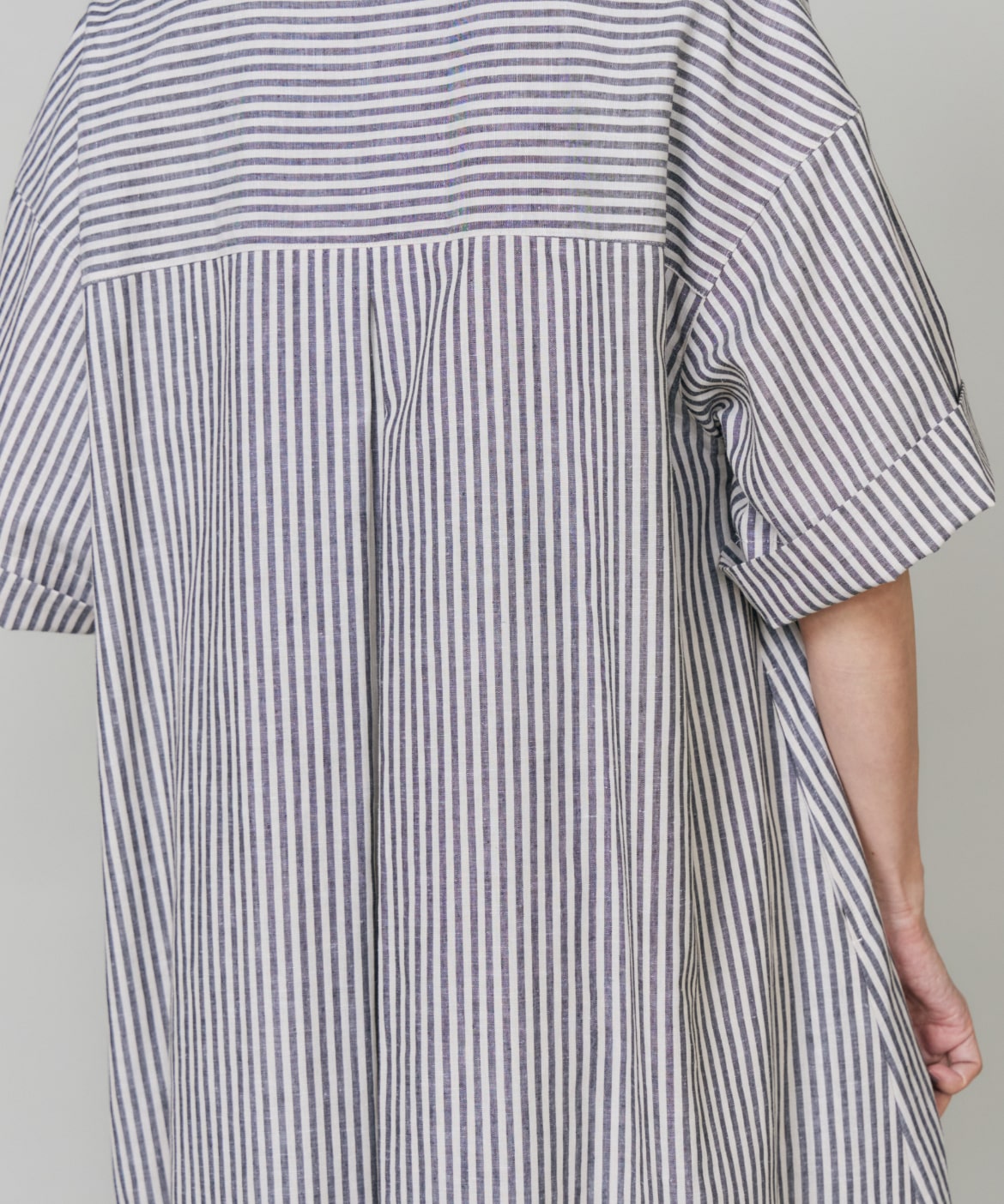 ポリエステルとヘンプの混紡糸を使用したストライプ素材。ヘンプ特有のドライなタッチを残しつつ、タンブラー加工を施すことでソフトに仕上げています。ナチュラルな表面感がありながら、程良いしなやかさと落ち感をあわせ持ち、心地良く着用できる素材です。存在感のある爽やかなストライプがポイント。