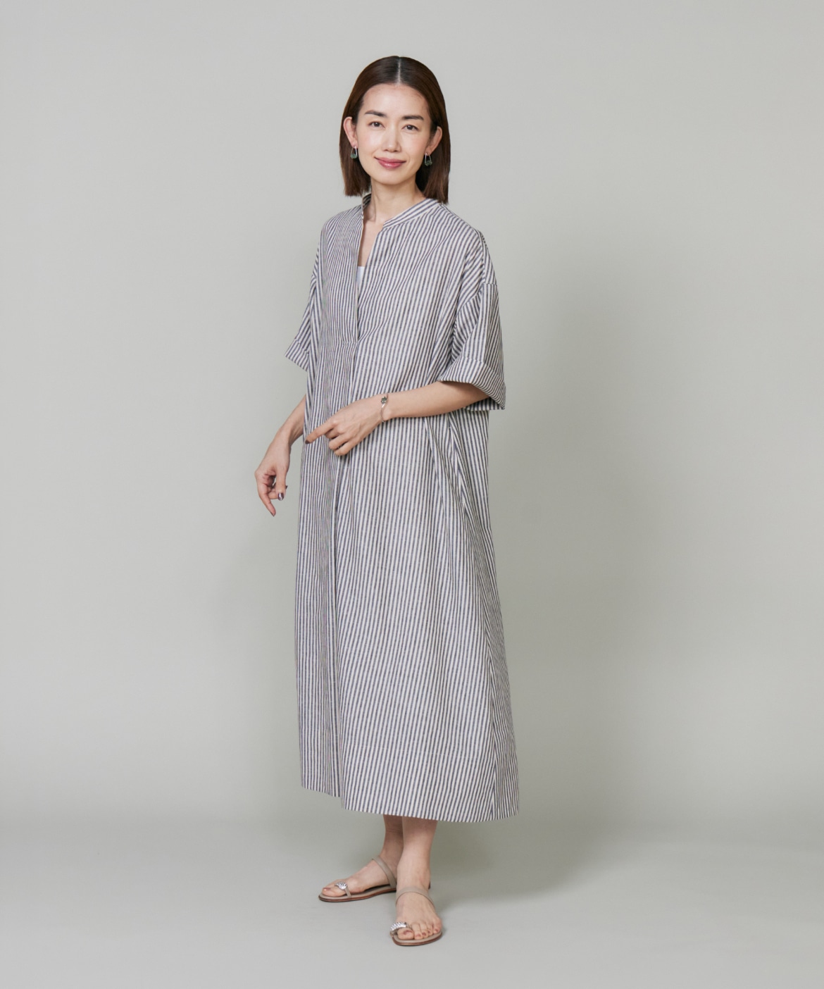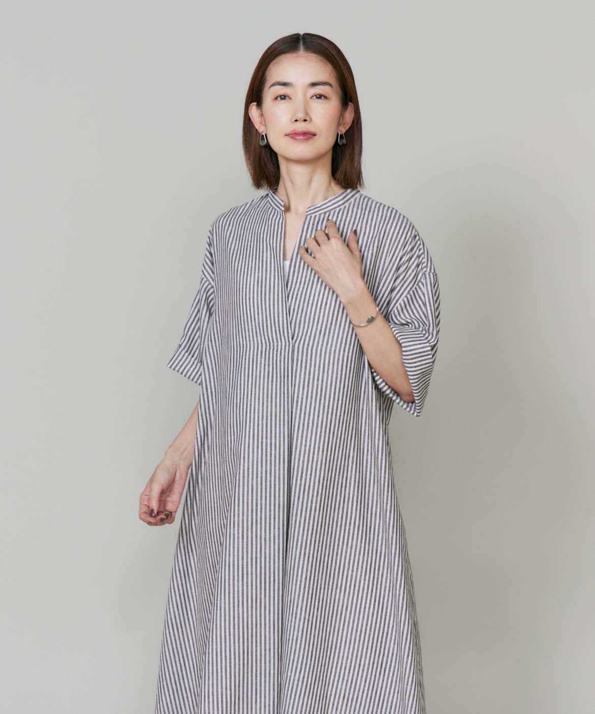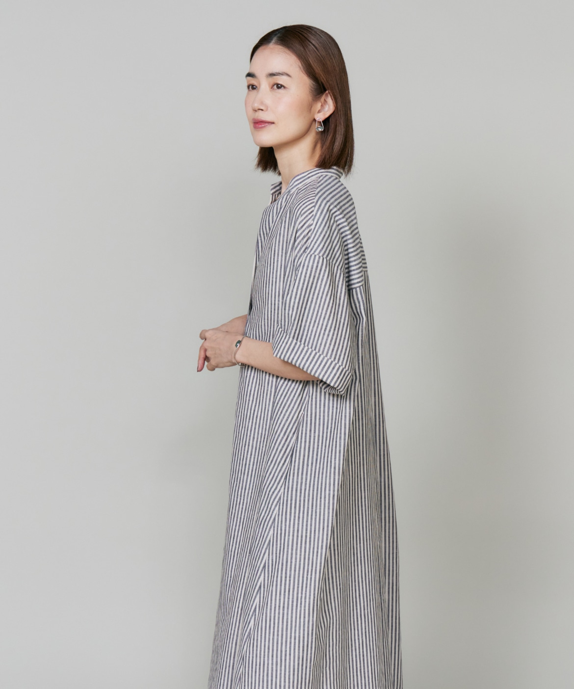 高級感のあるたっぷりとした分量感がポイントのロングワンピース。抜け感のある襟デザインやシルエットでリラックス感をプラスしました。袖は折り返して表情の変化を楽しんでいただけます。裾の見返し仕様で重さをプラスし、よりリッチに仕上げました。