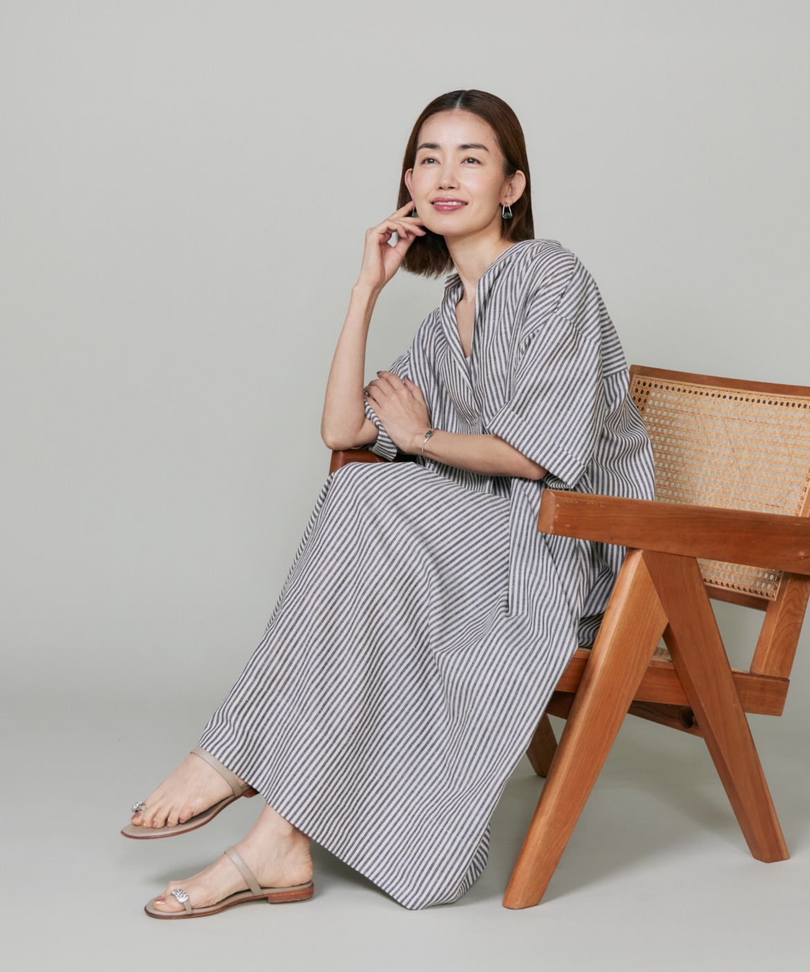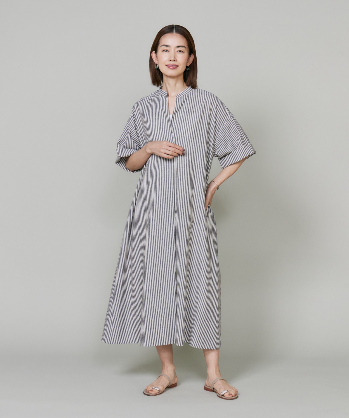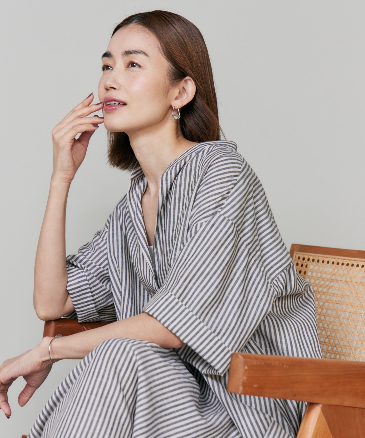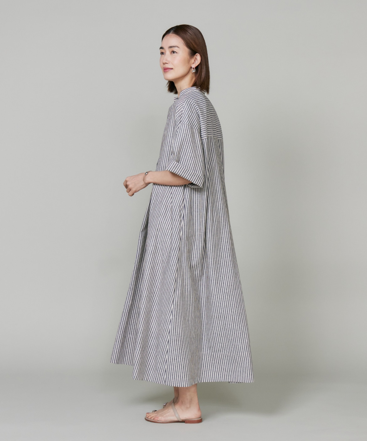 高級感のあるたっぷりとした分量感がポイントのロングワンピース。抜け感のある襟デザインやシルエットでリラックス感をプラスしました。袖は折り返して表情の変化を楽しんでいただけます。裾の見返し仕様で重さをプラスし、よりリッチに仕上げました。