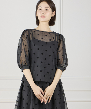 《INED de base》麻調シアーフロッキードットブラウス【セットアップ対応】