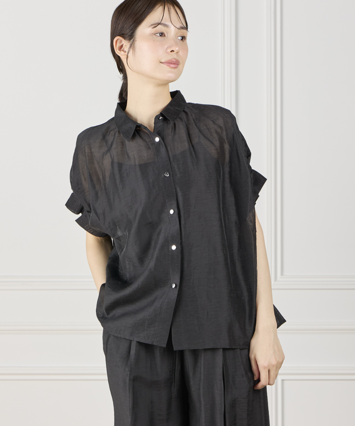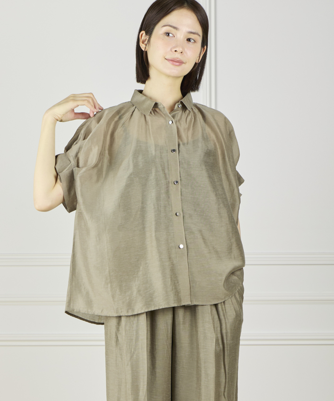 《INED de base》シアーリネンタンブラー シャツブラウス【セットアップ対応】