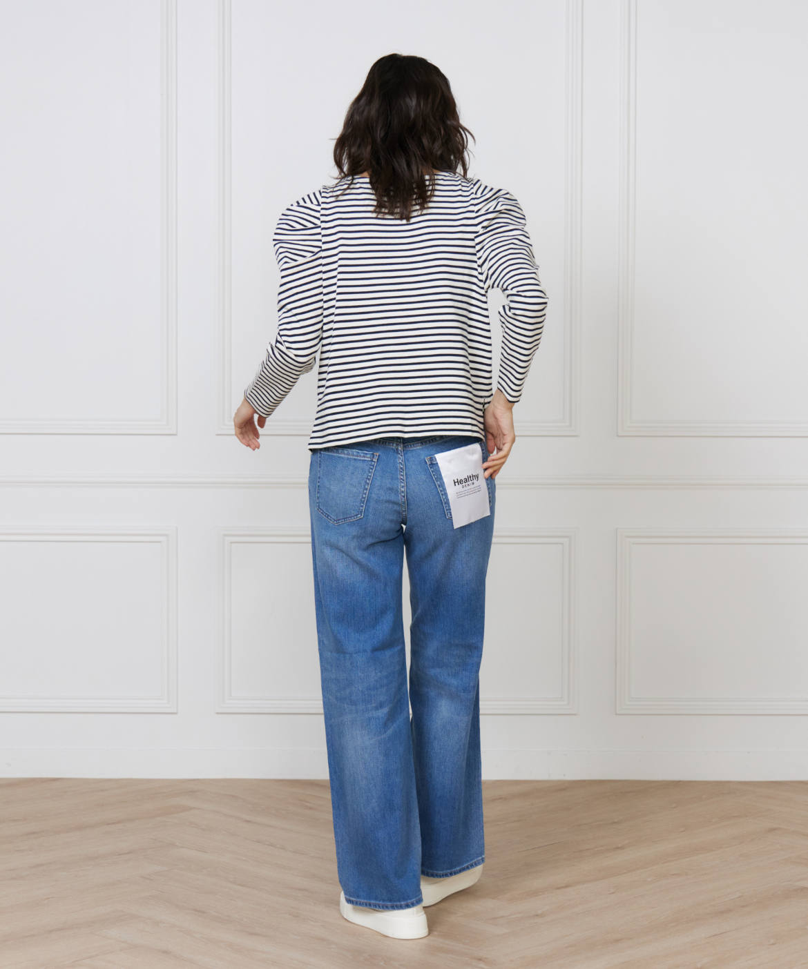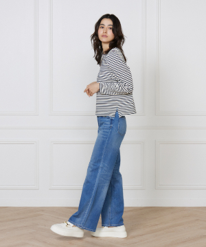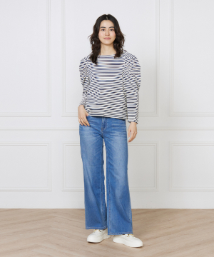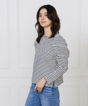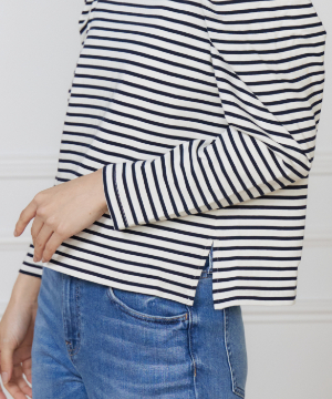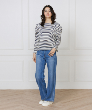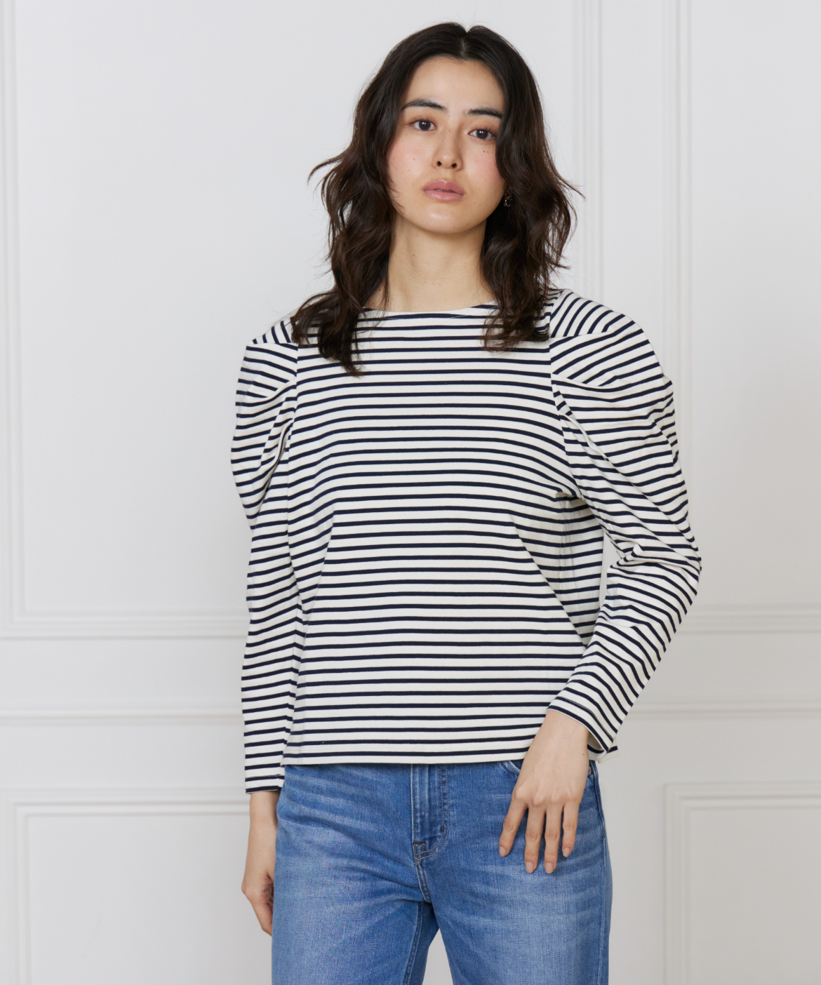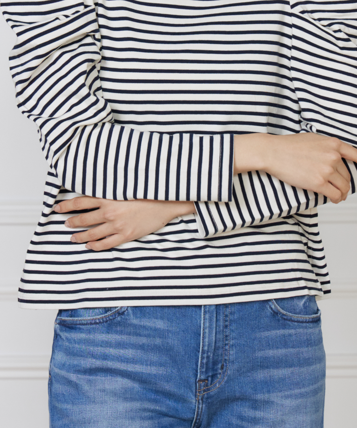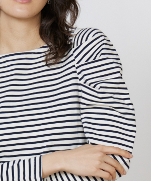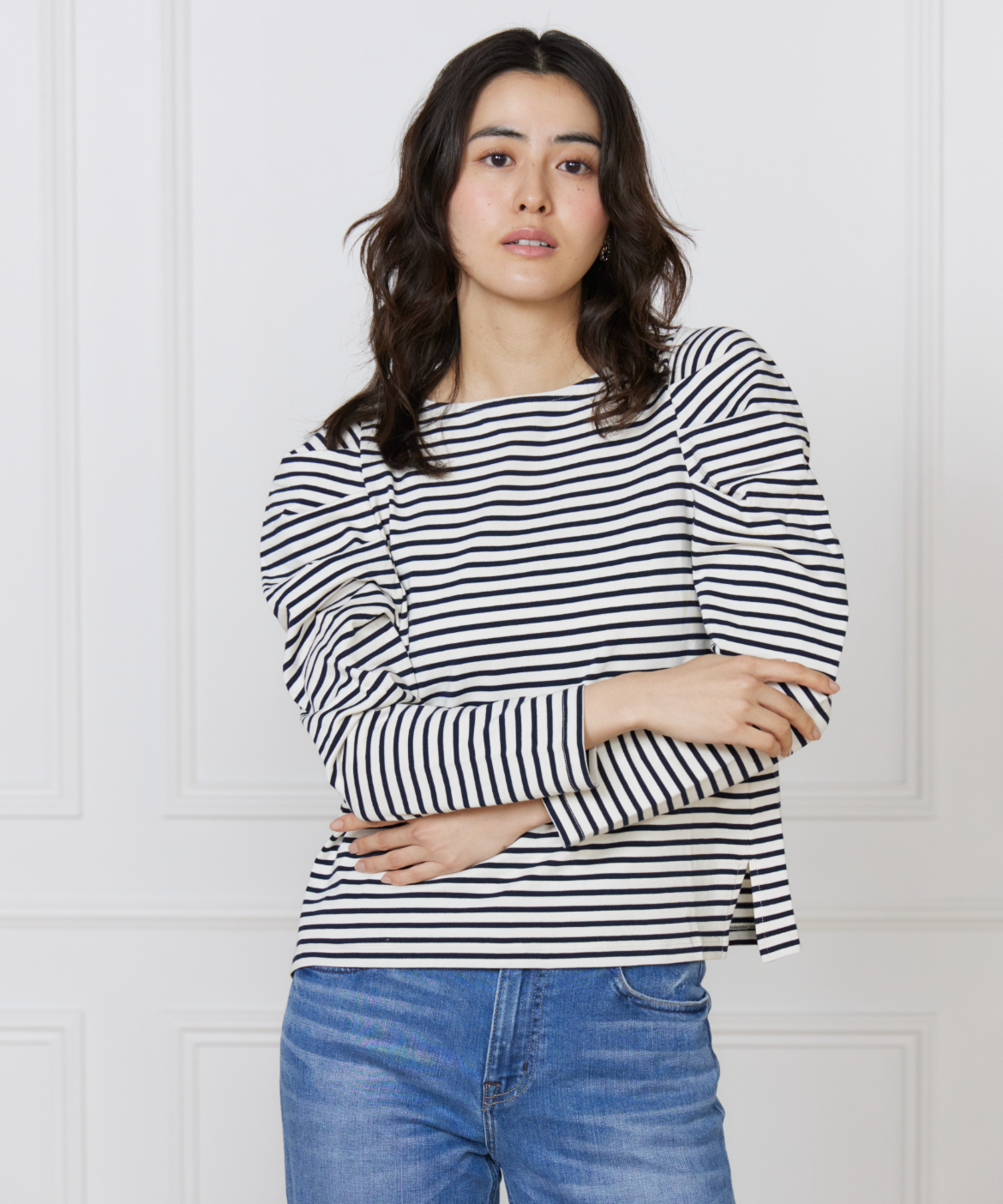 《INED de base》ボーダーシルケット天竺 ボリュームスリーブカットソー
