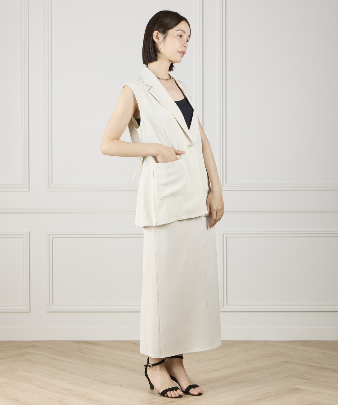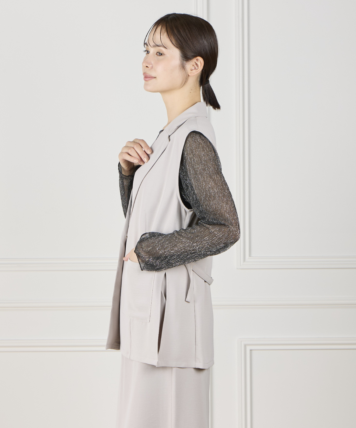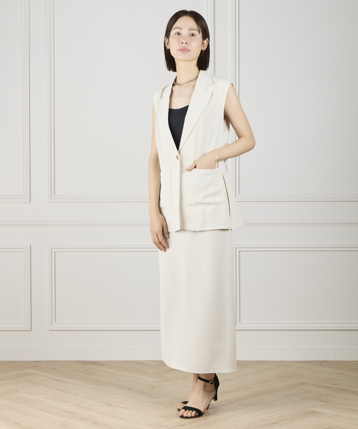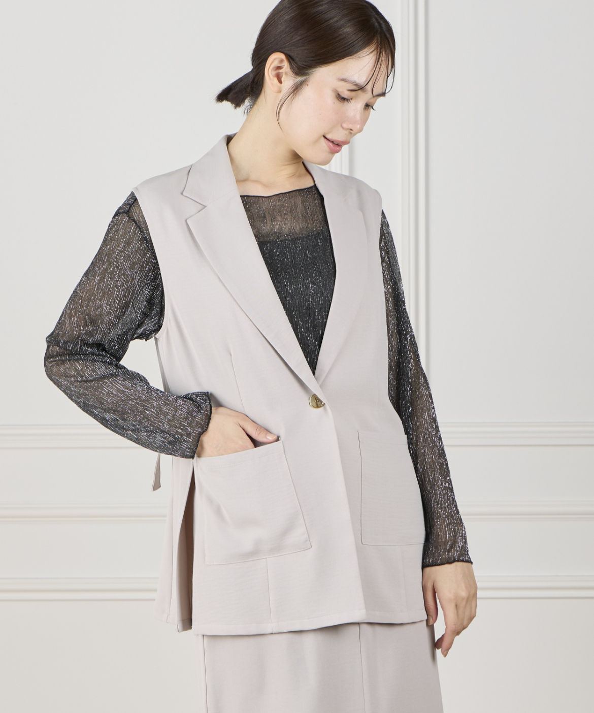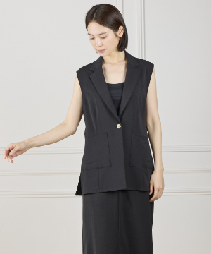 《INED de base》ハイストレッチカルゼワッシャー ジレジャケット【セットアップ対応】