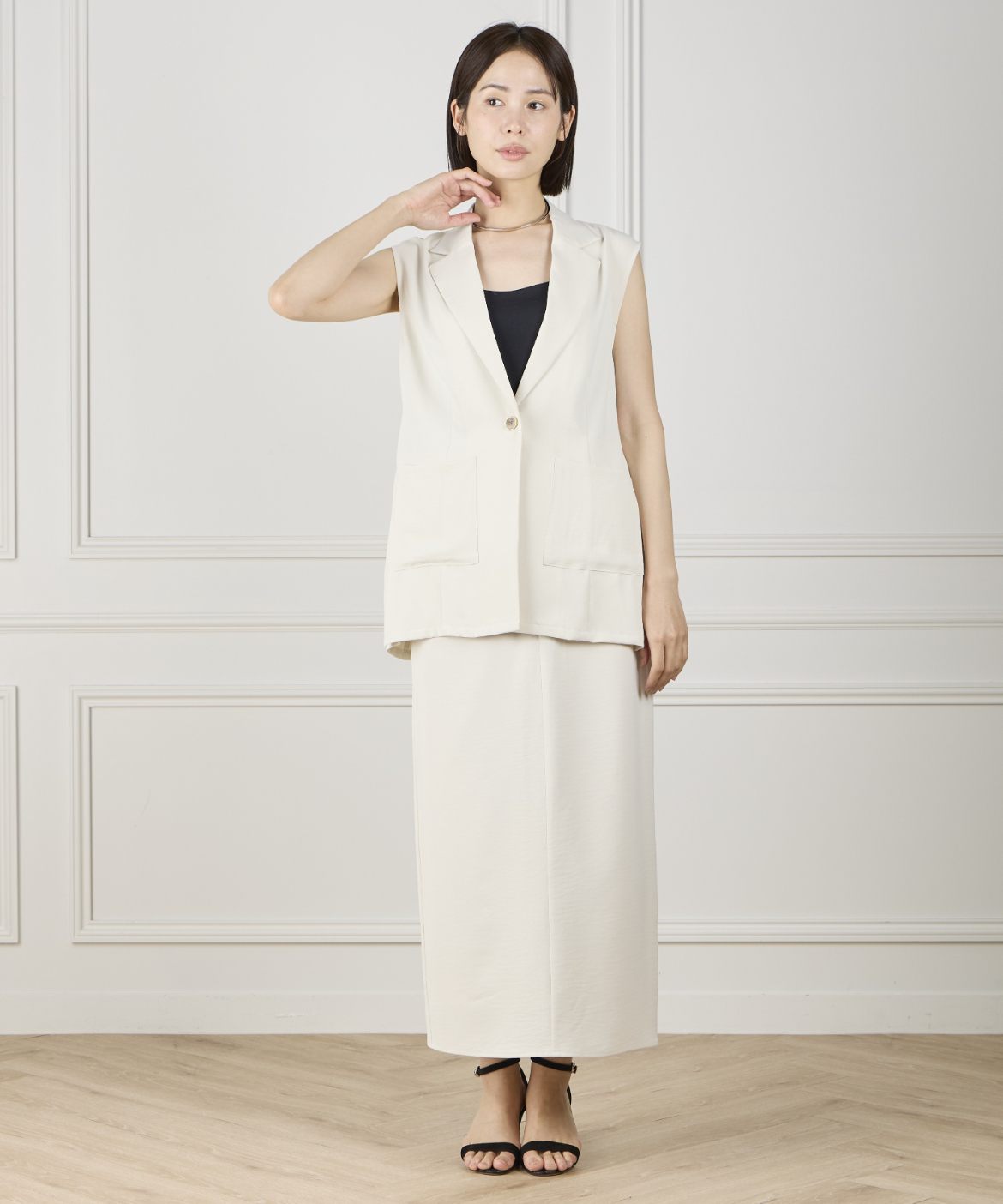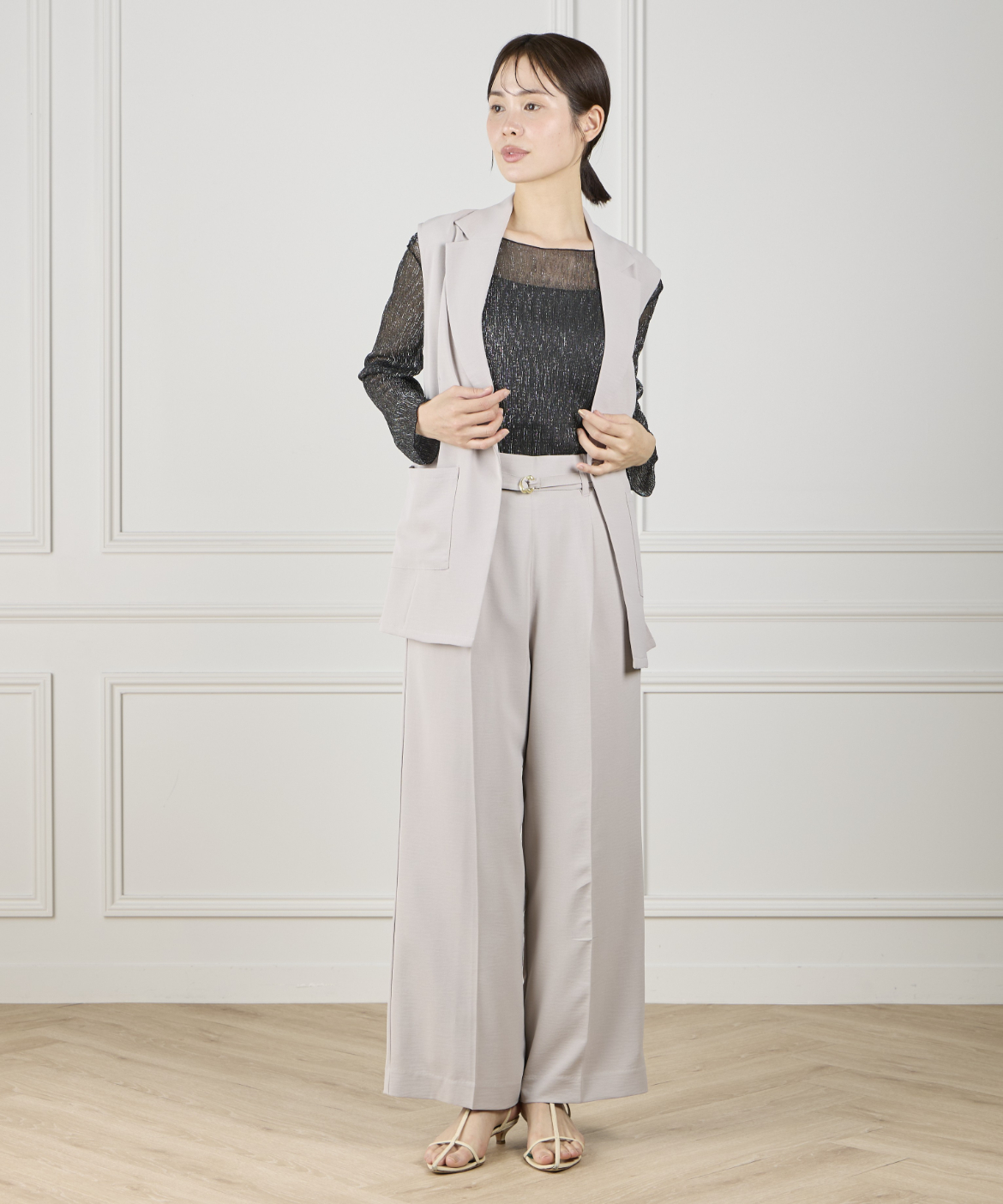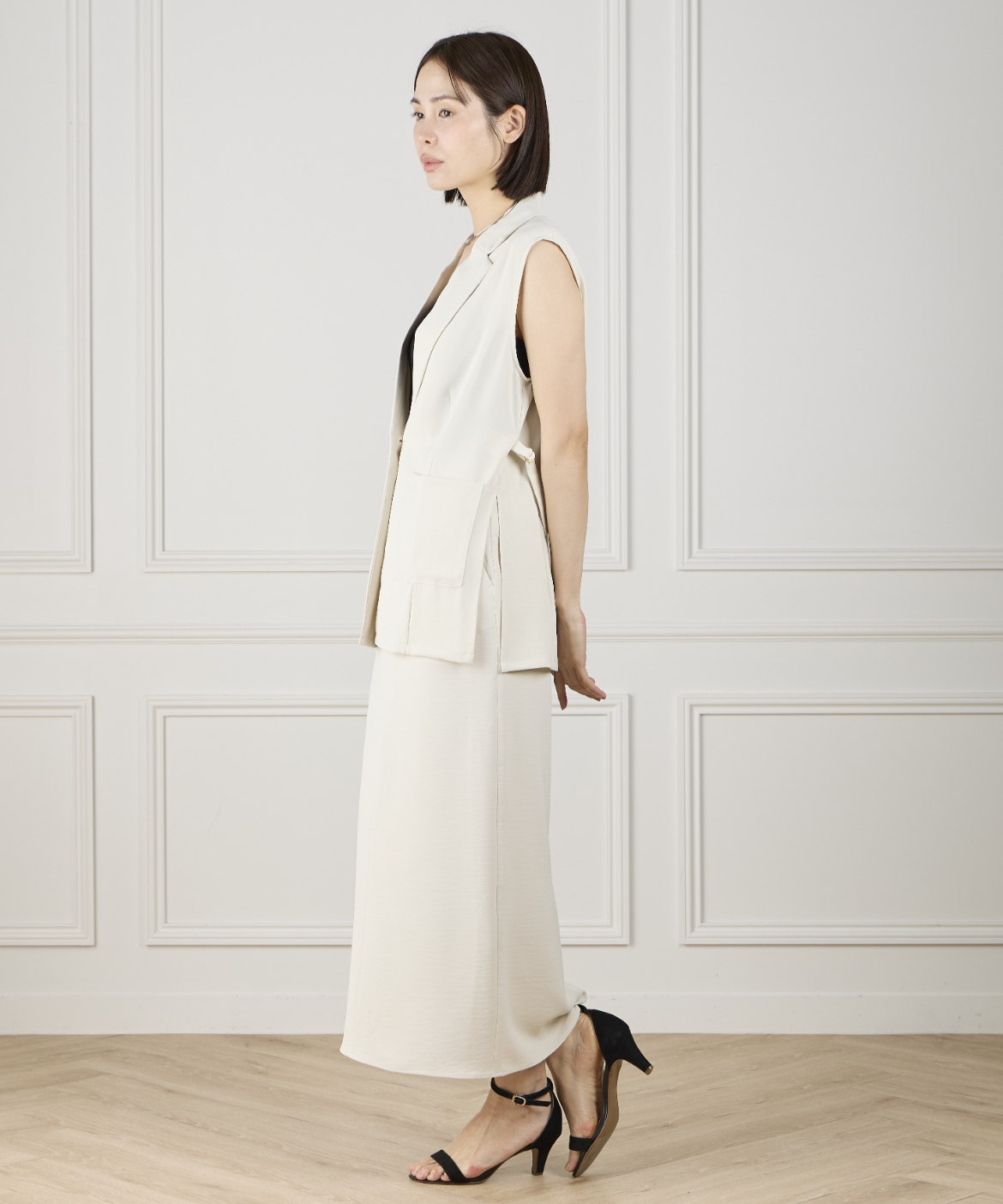 《INED de base》ハイストレッチカルゼワッシャー ジレジャケット【セットアップ対応】