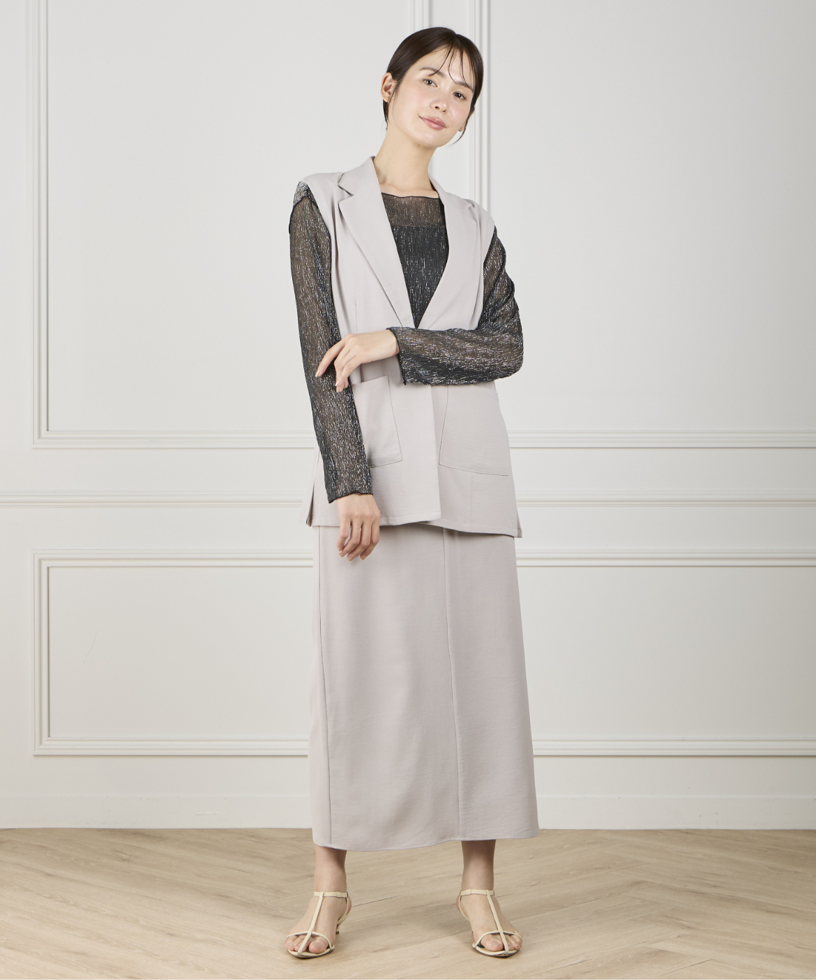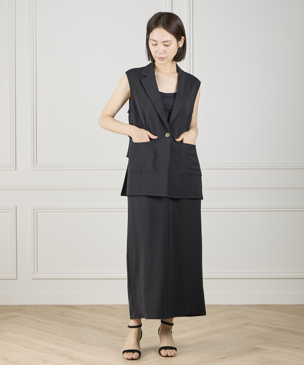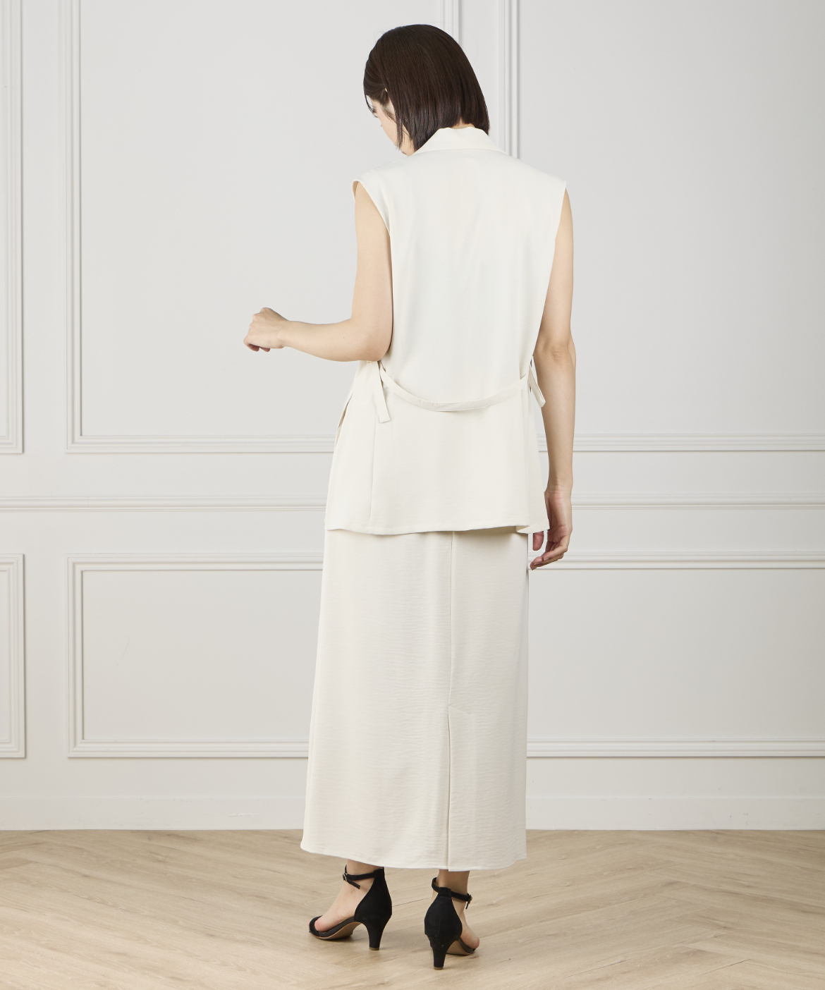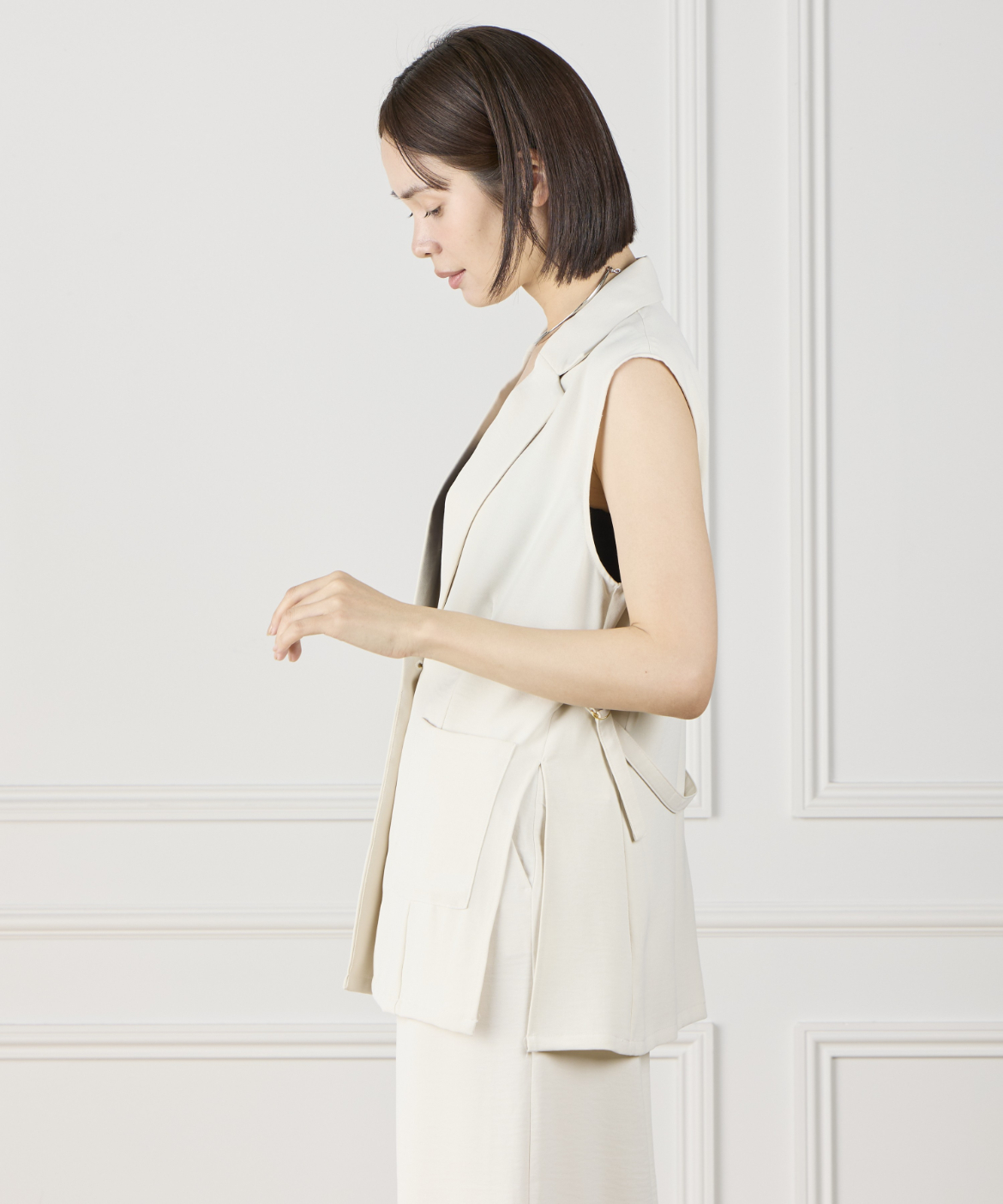 《INED de base》ハイストレッチカルゼワッシャー ジレジャケット【セットアップ対応】