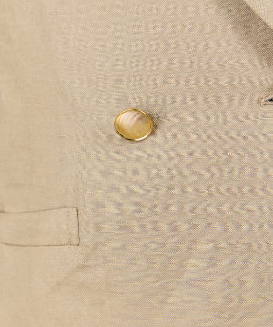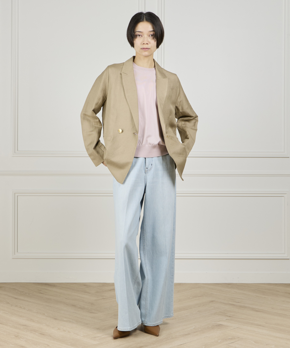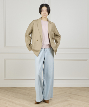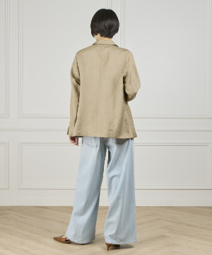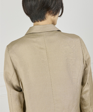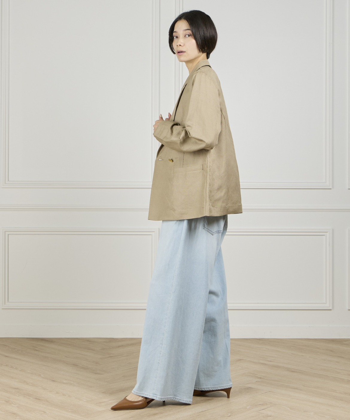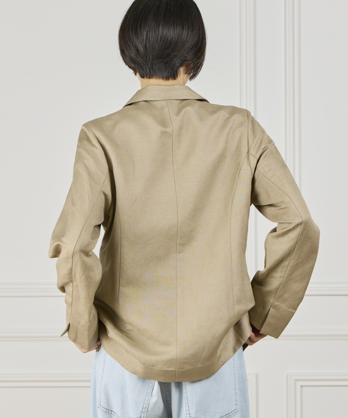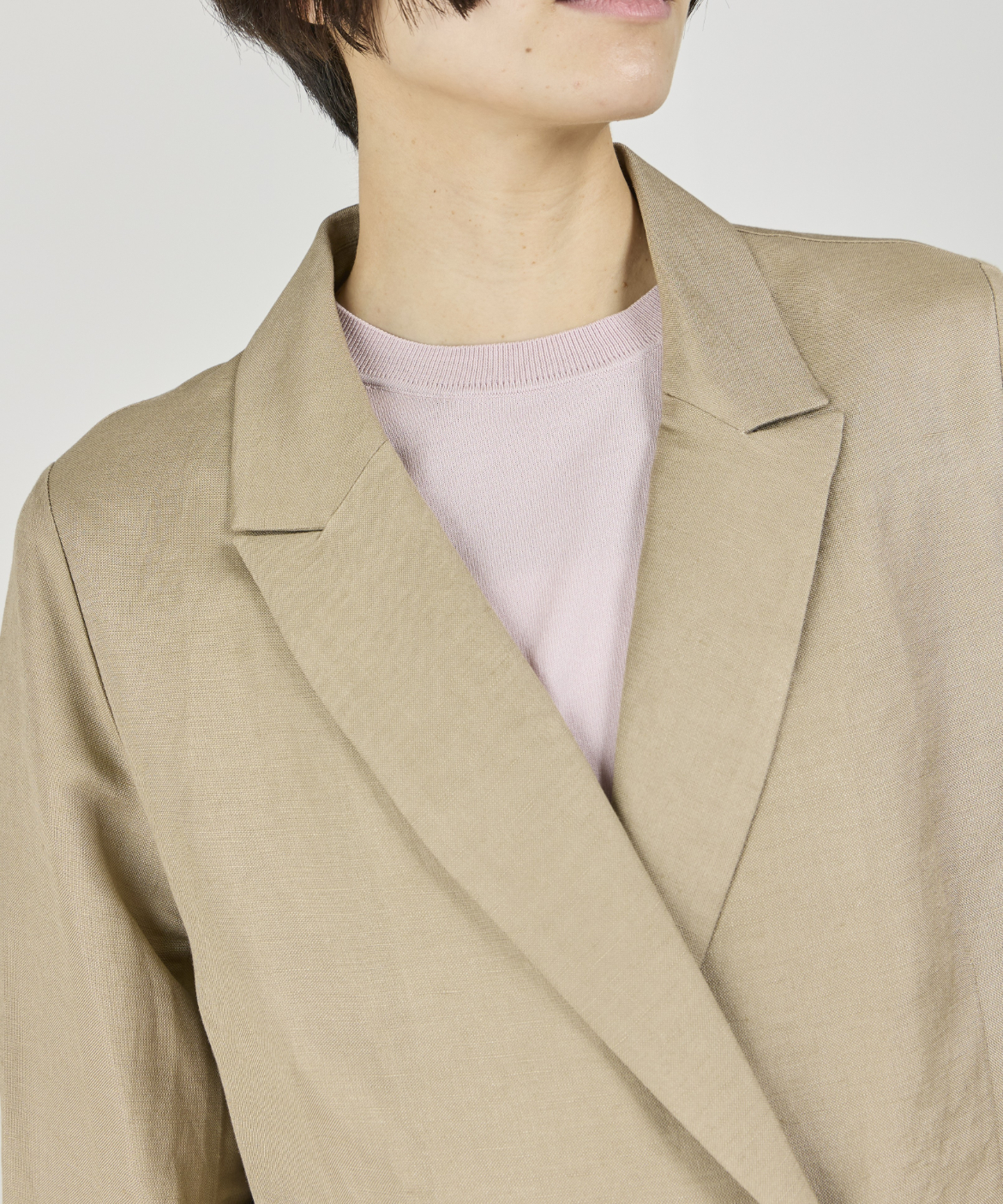 洗練された抜け感を演出する、軽やかな麻調素材のダブルジャケット
