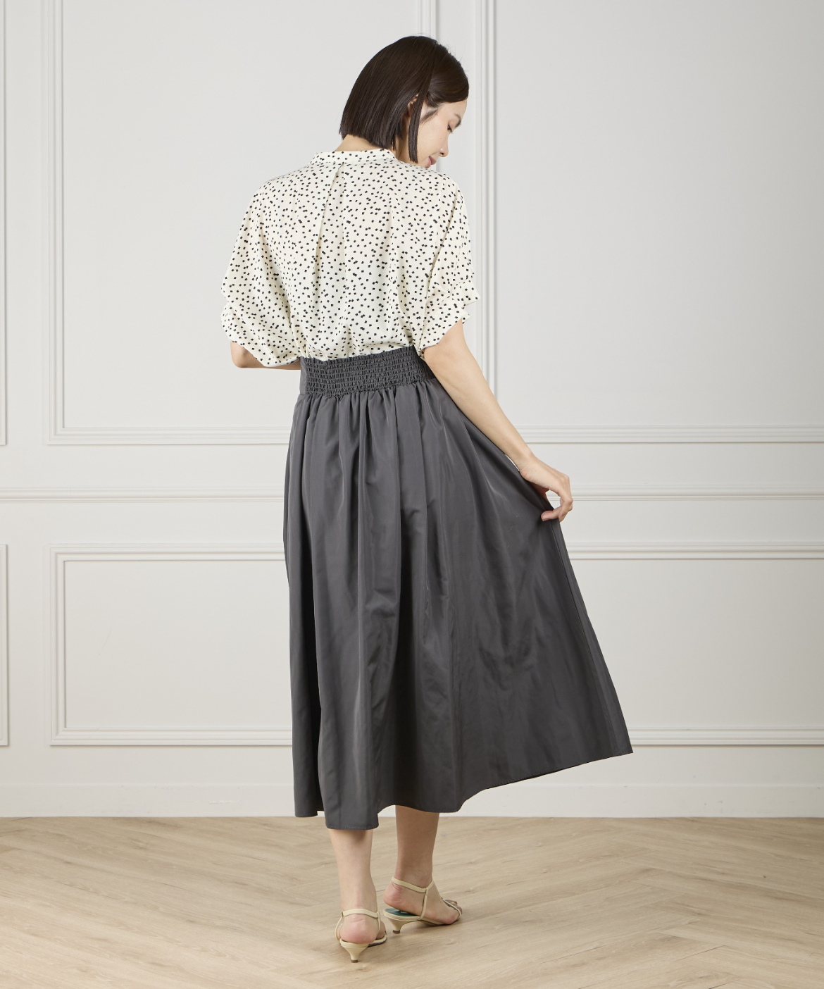 《INED de base》マットタフタ バックギャザースカート