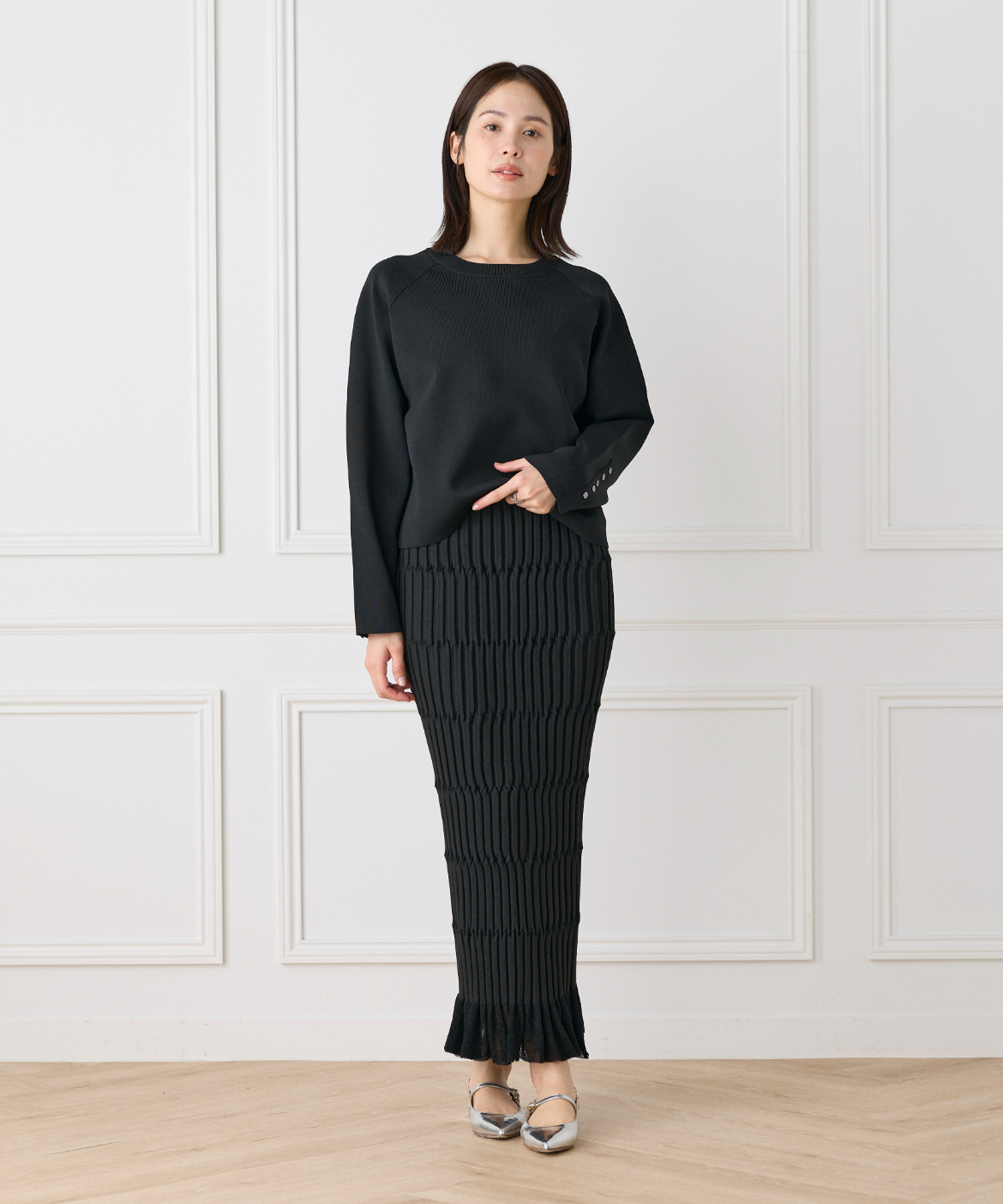 《INED de base》ツイストワイドリブ タイトスカート
