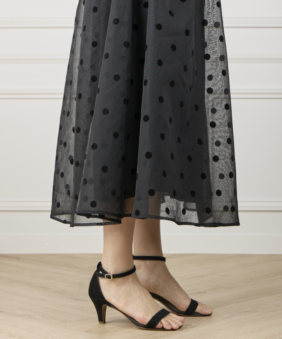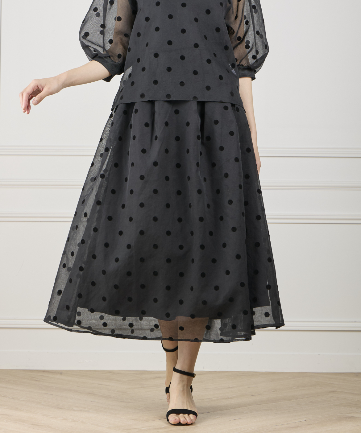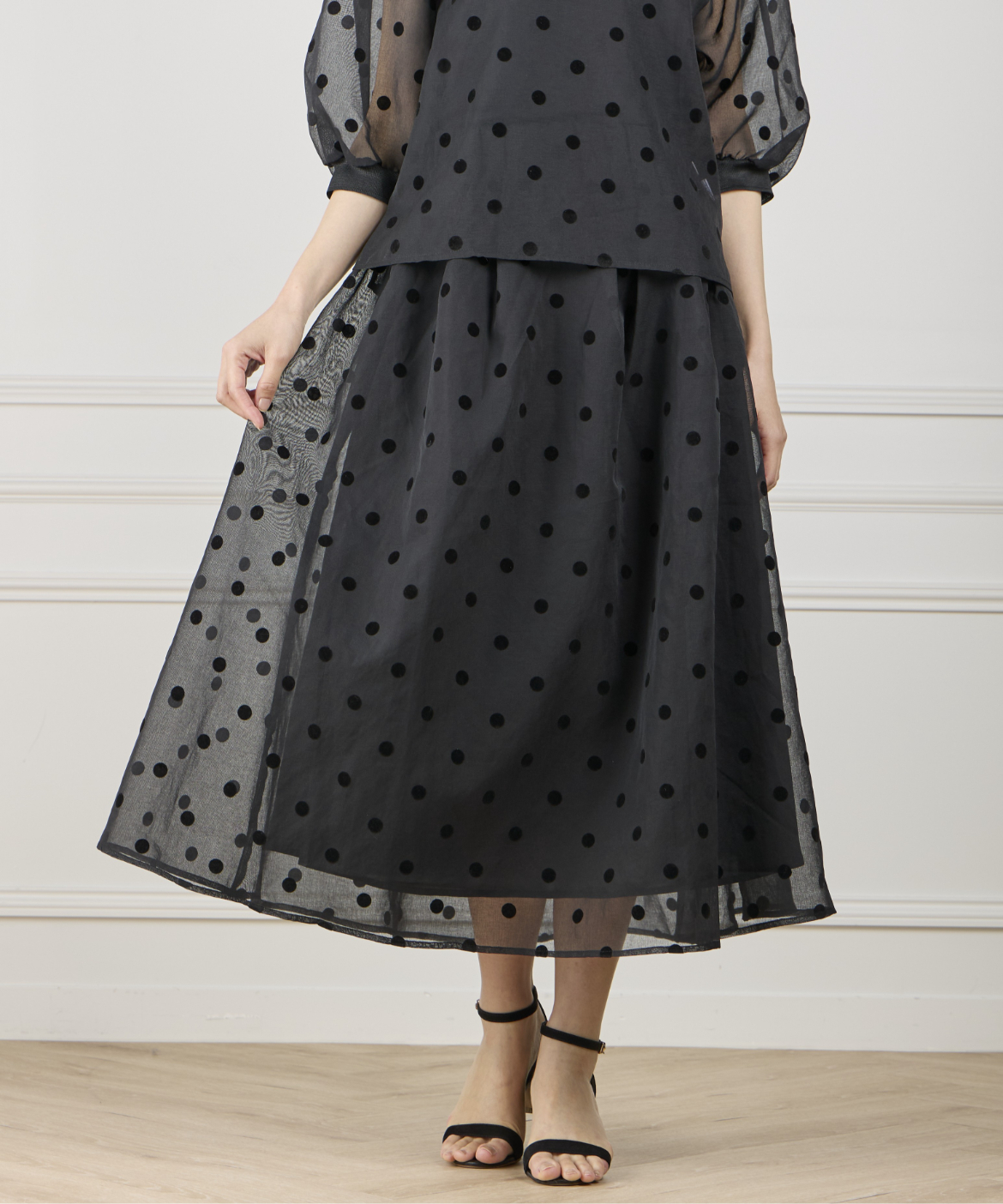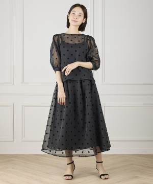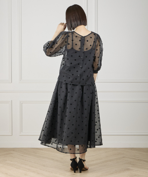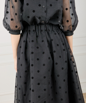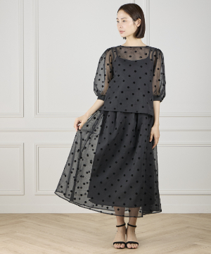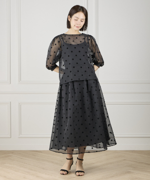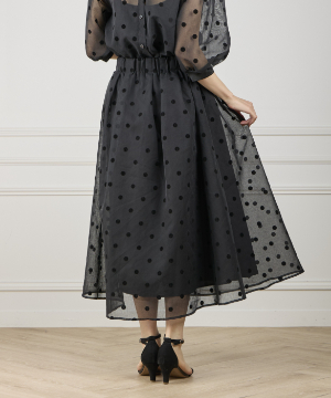 《INED de base》麻調シアーフロッキードットスカート【セットアップ対応】