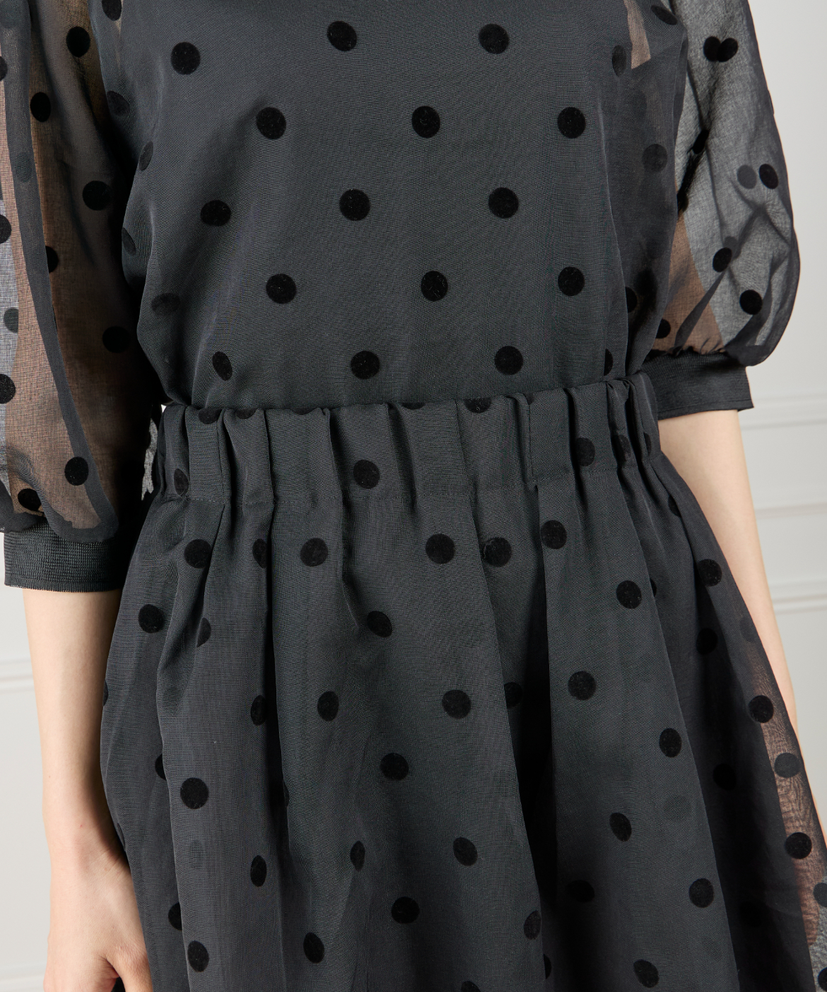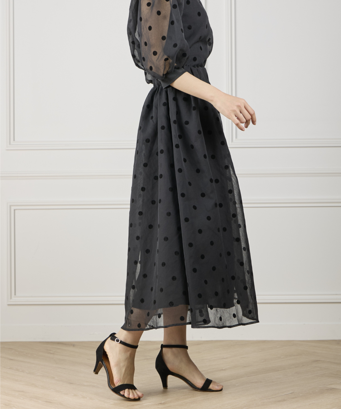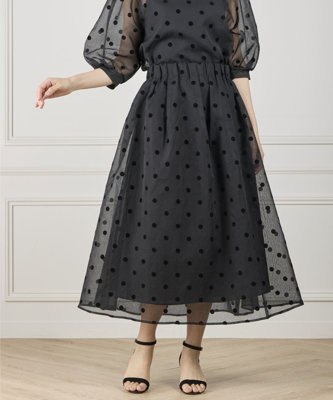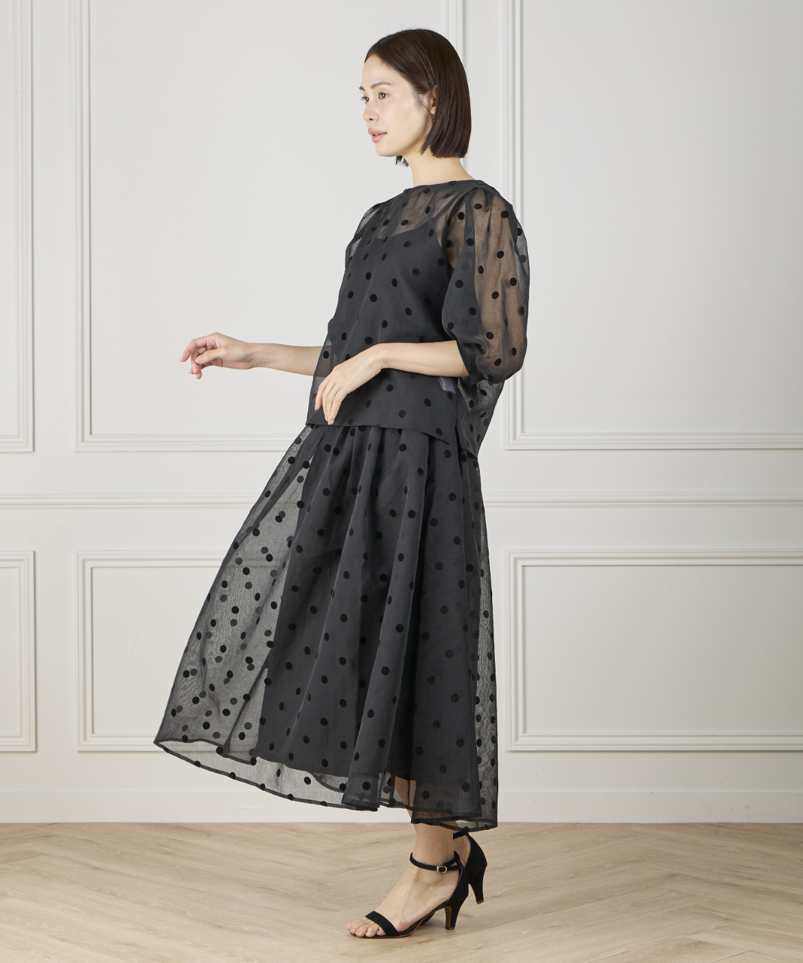 《INED de base》麻調シアーフロッキードットスカート【セットアップ対応】