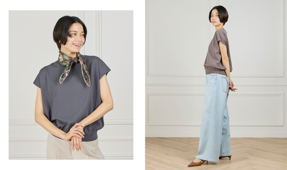 一枚で品よく決まるフレンチスリーブニット