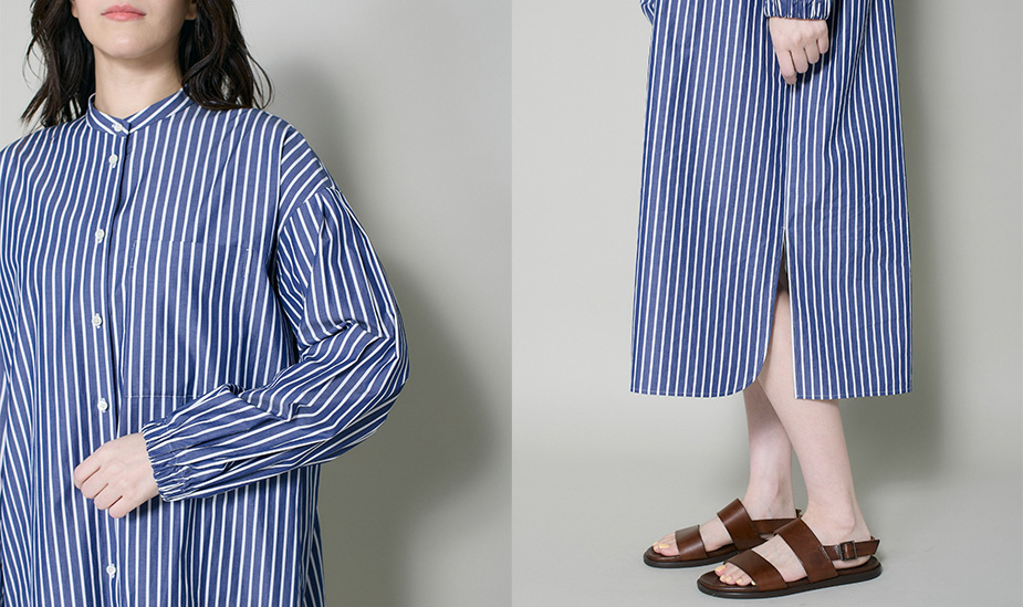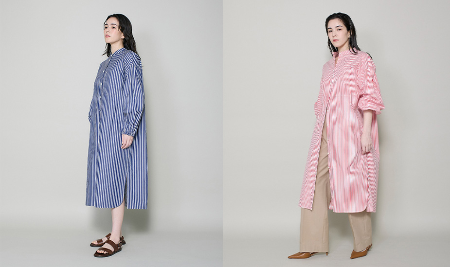 軽やかにリラックス。 春を呼び込むストライプワンピース。新しい季節の始まりに、袖を通したくなるのは清々しいストライプの彩り。