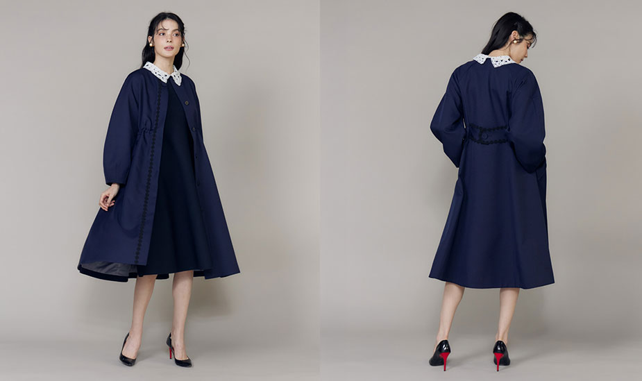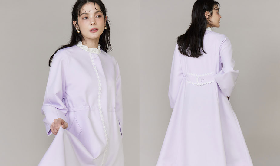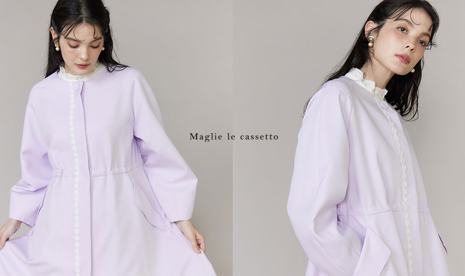 ¥66,000ドレスを纏ったようなフィット&フレアラインが美しい春コート。ウエストの両サイドには、絞れるドロストデザインでウエストをマークするとよりスタイルアップが叶うシルエットに。Maglieらしいフラワー刺繍を後ろのウエストタブにも施すことで、バックスタイルも美しく見えるようにこだわったコートです。