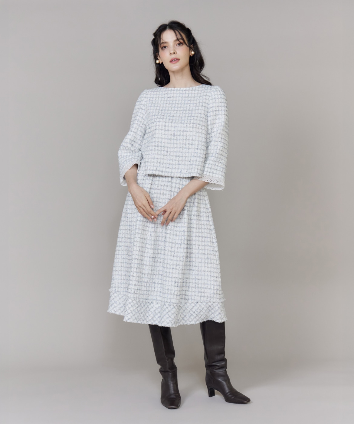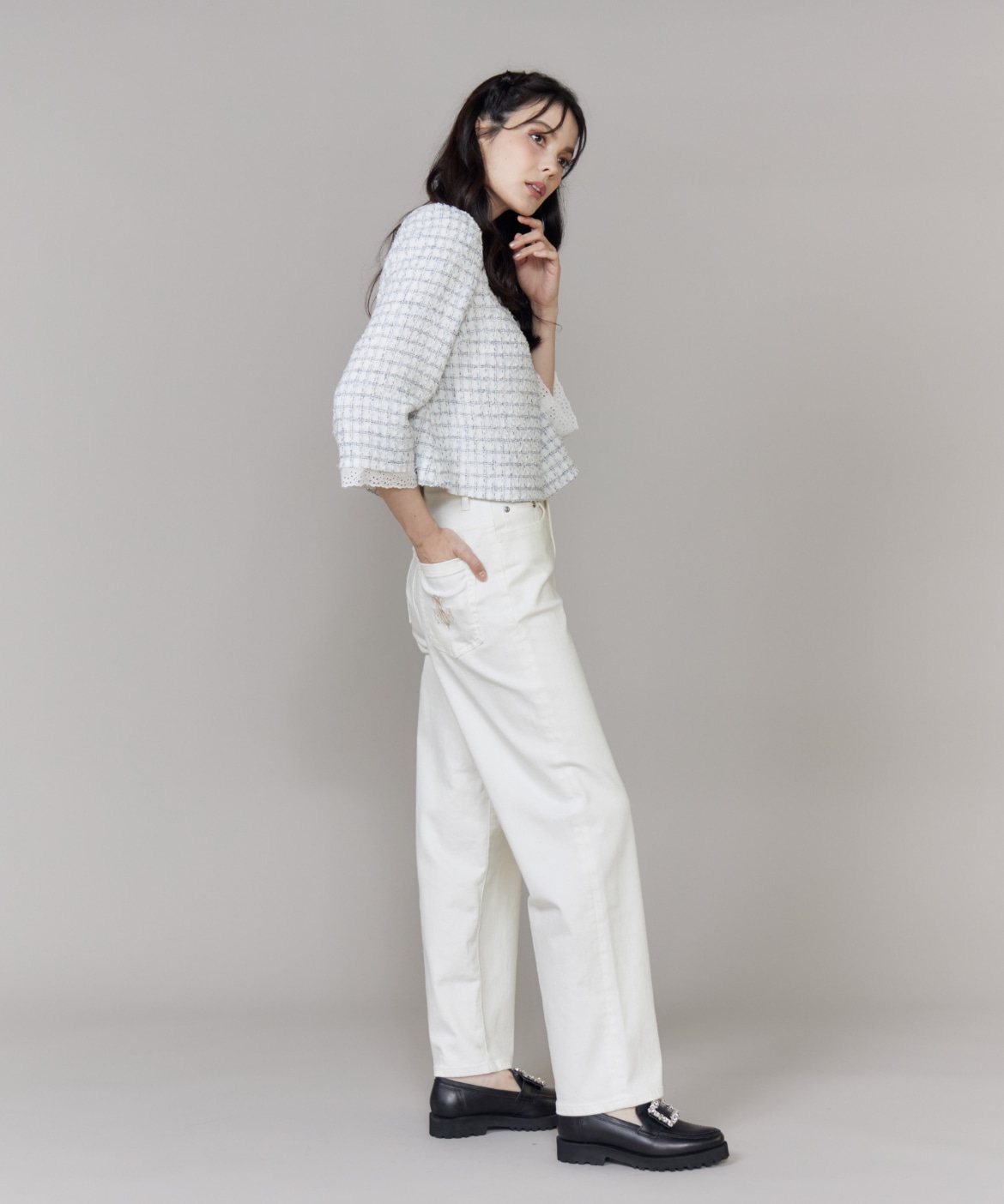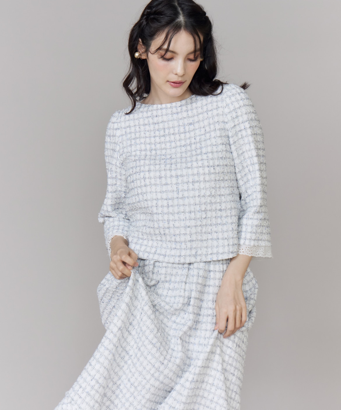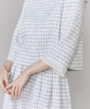 《大きいサイズ》袖刺繍レース艶めきツイードブラウス《M Maglie le cassetto》