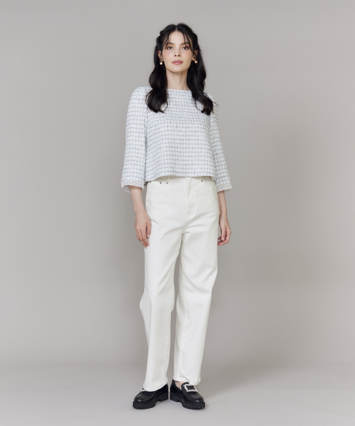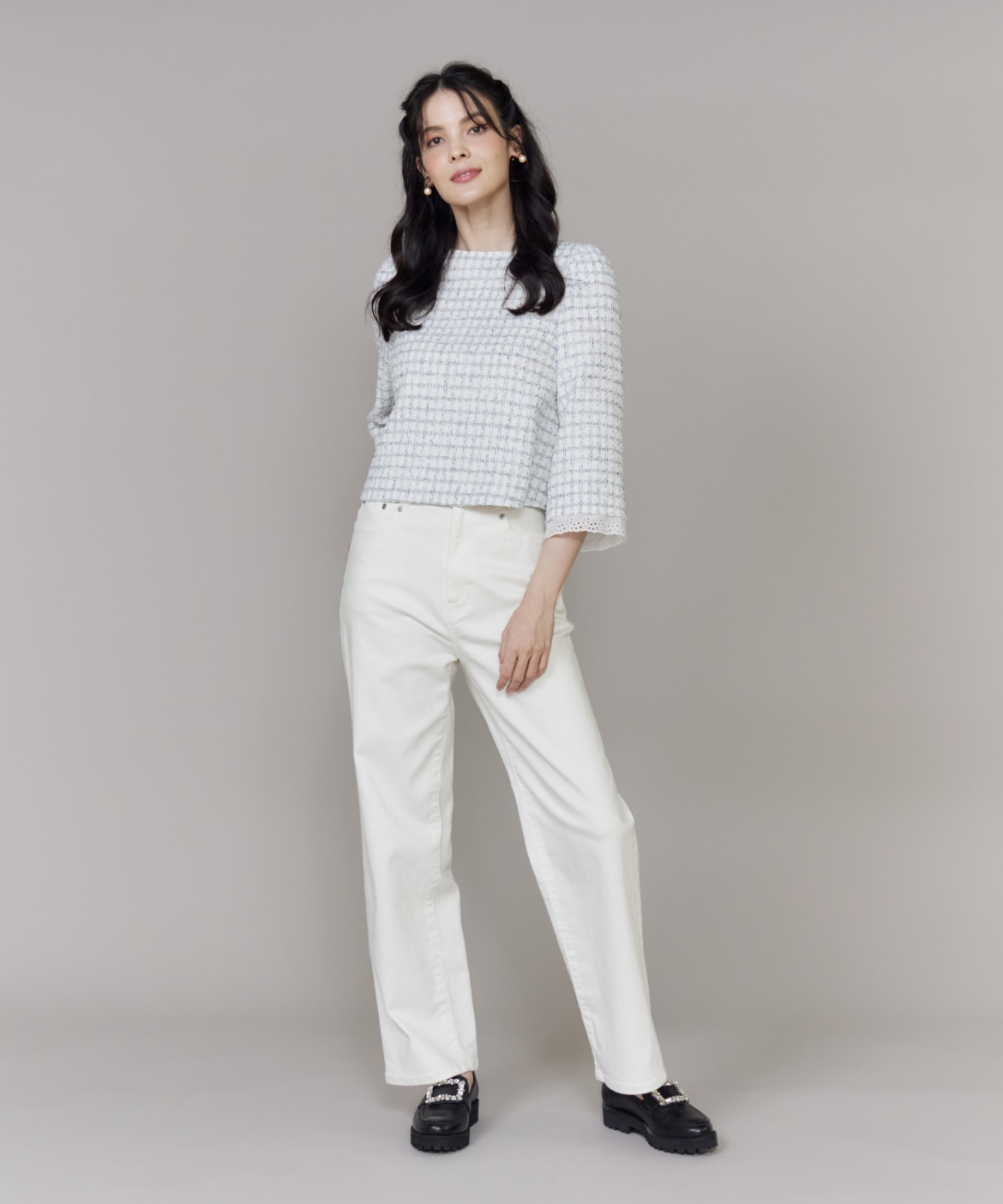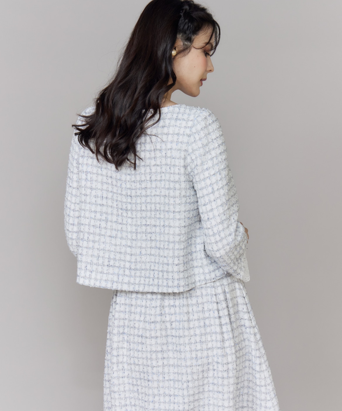 《大きいサイズ》袖刺繍レース艶めきツイードブラウス《M Maglie le cassetto》