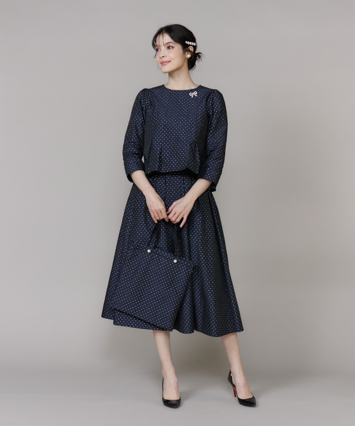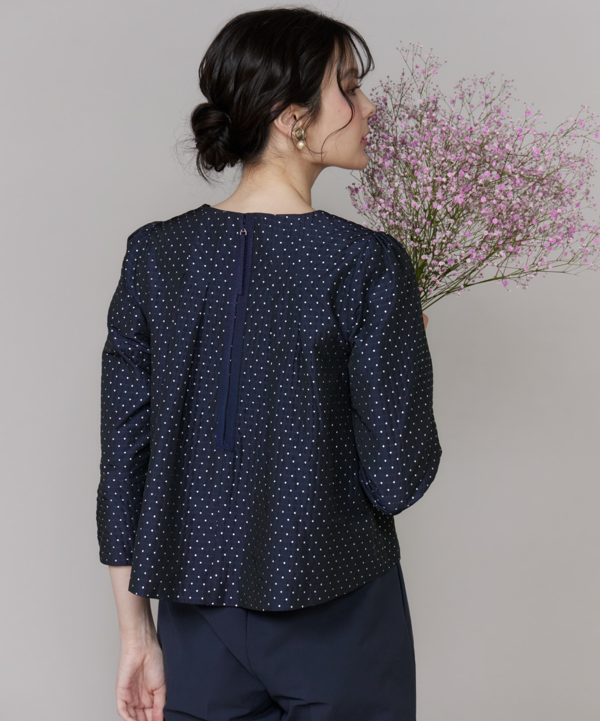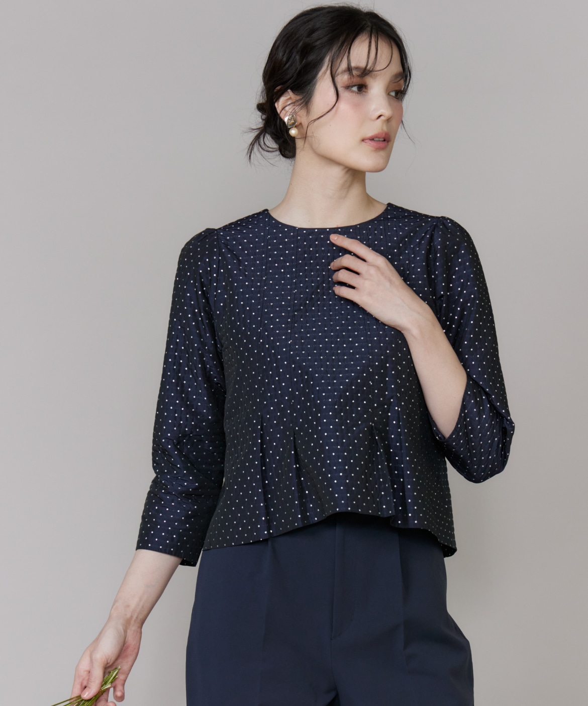 《プラスサイズ》ラメドットジャガードブラウス
