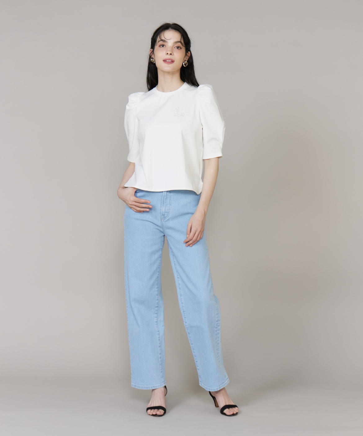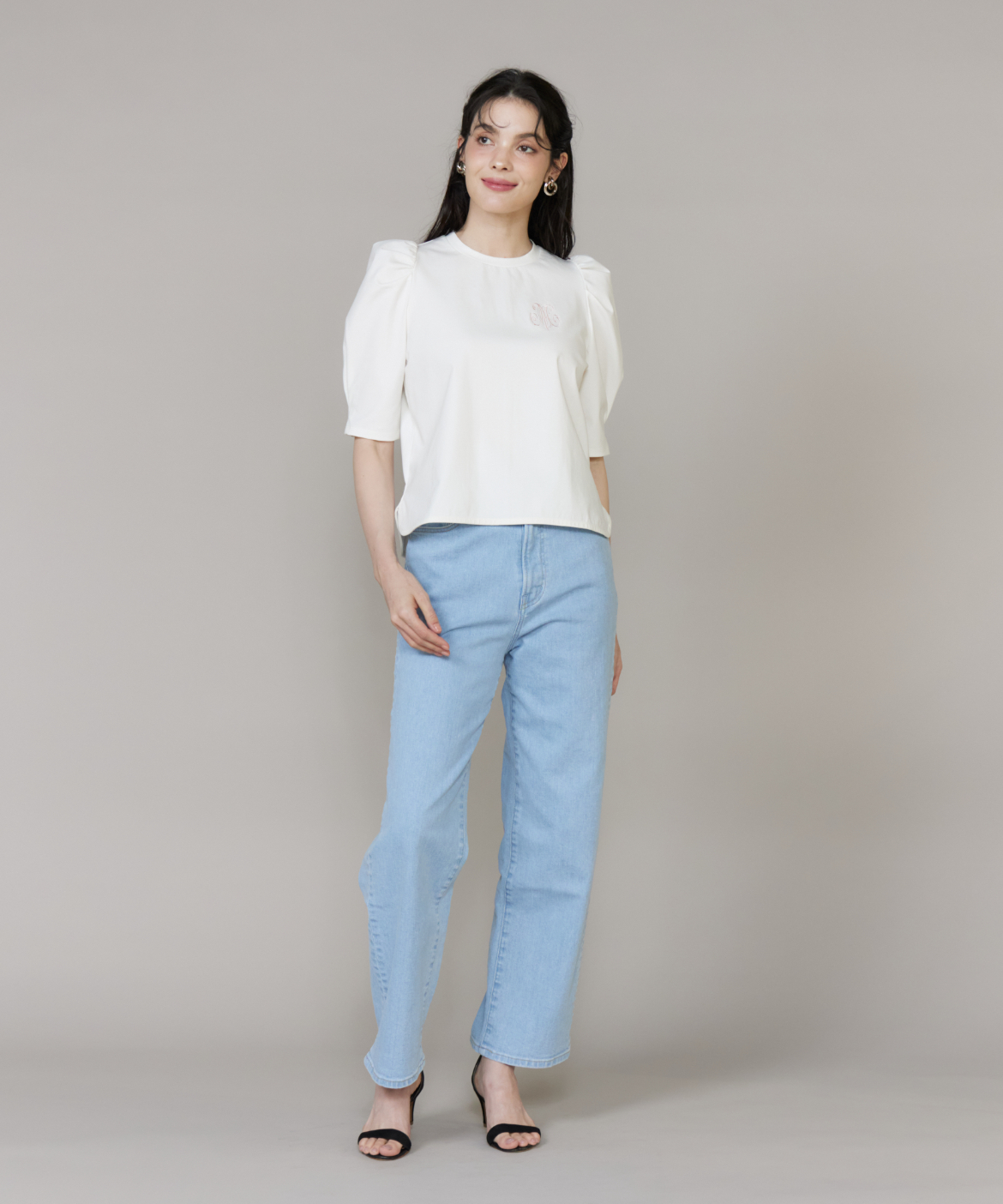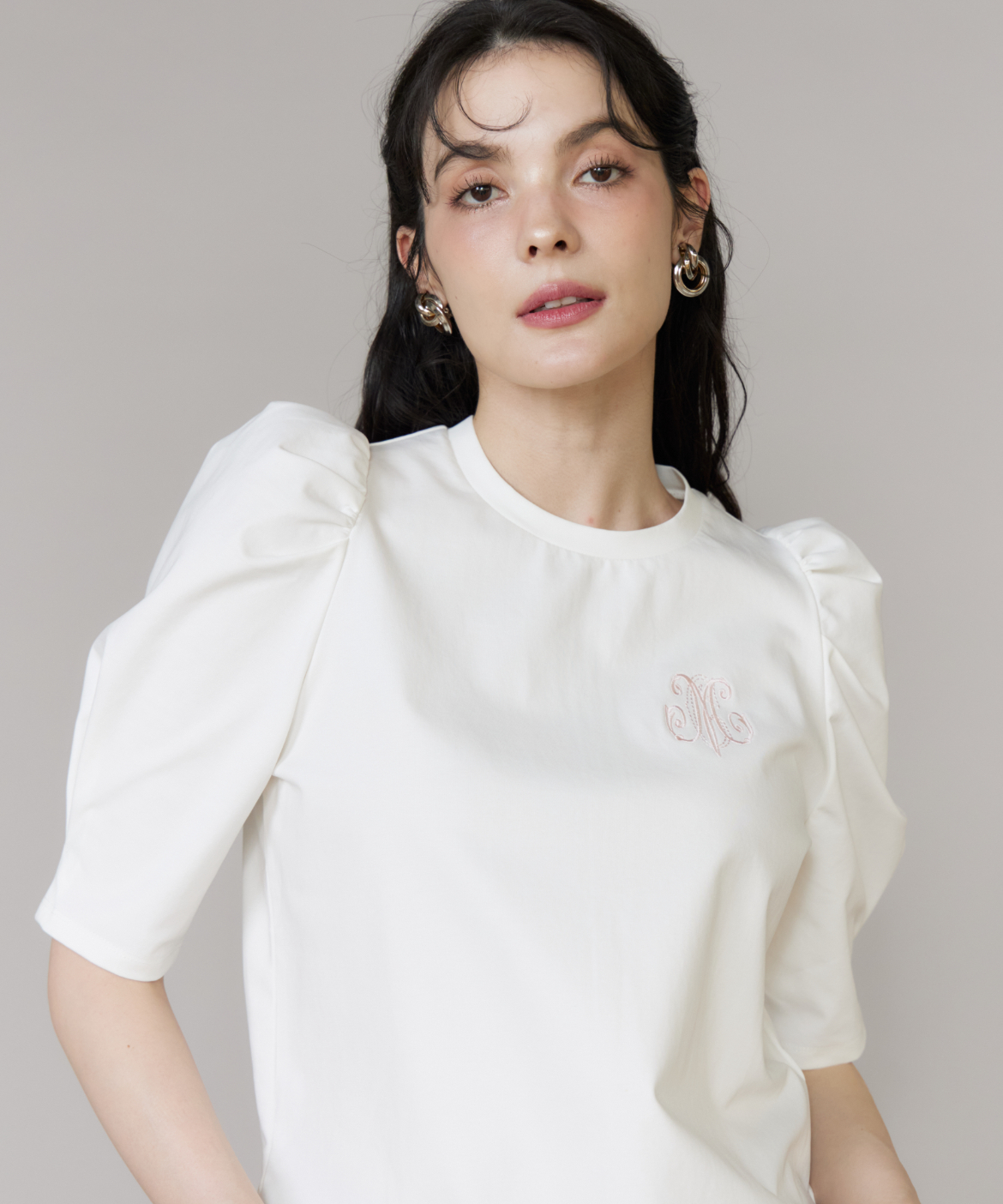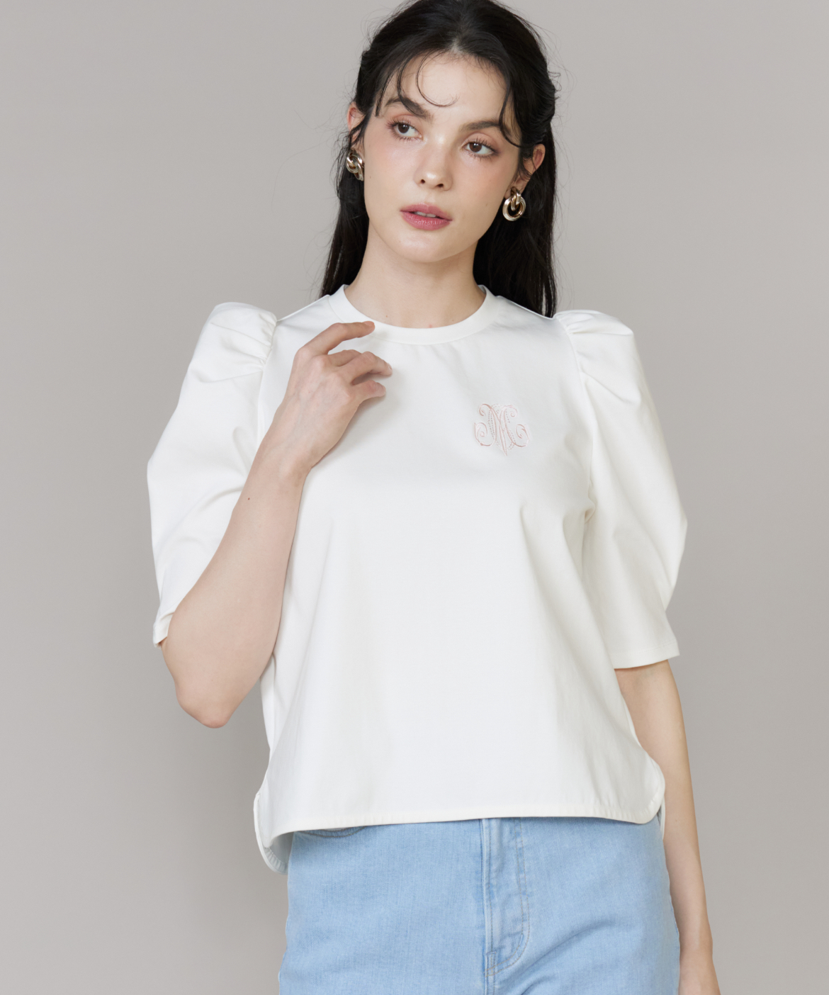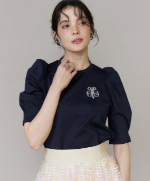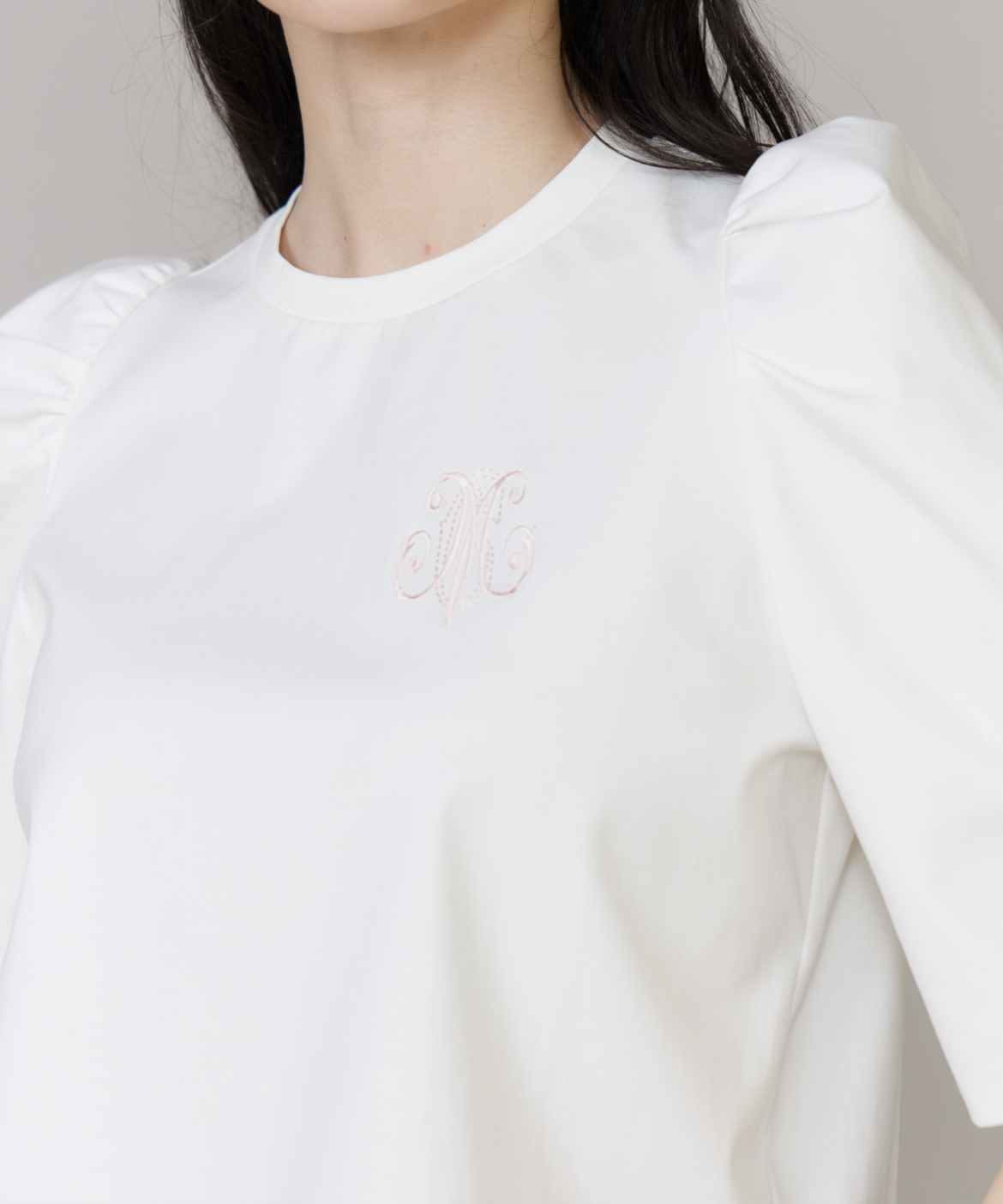 《大きいサイズ》ロゴ刺繍ボリューム袖カットソー