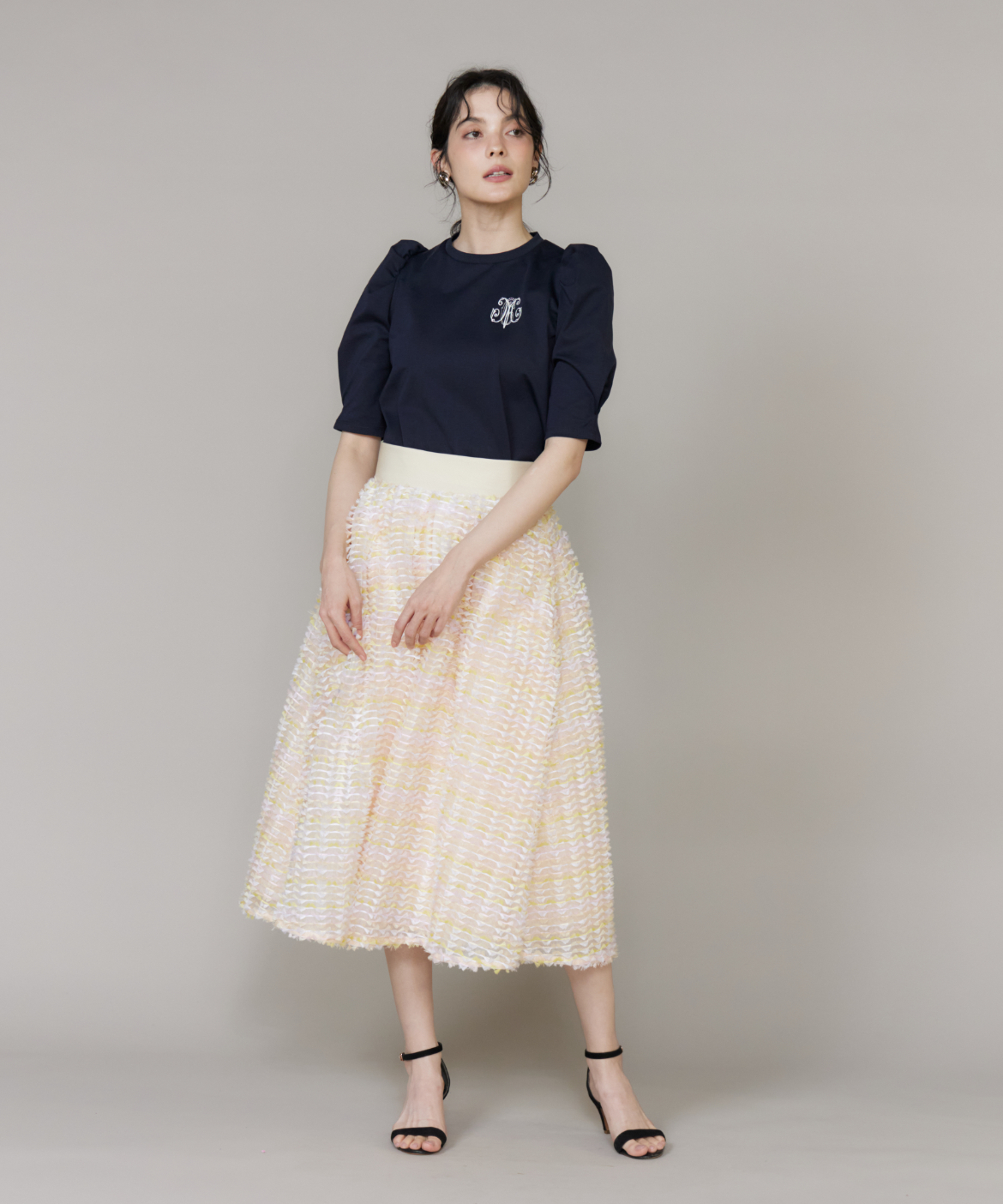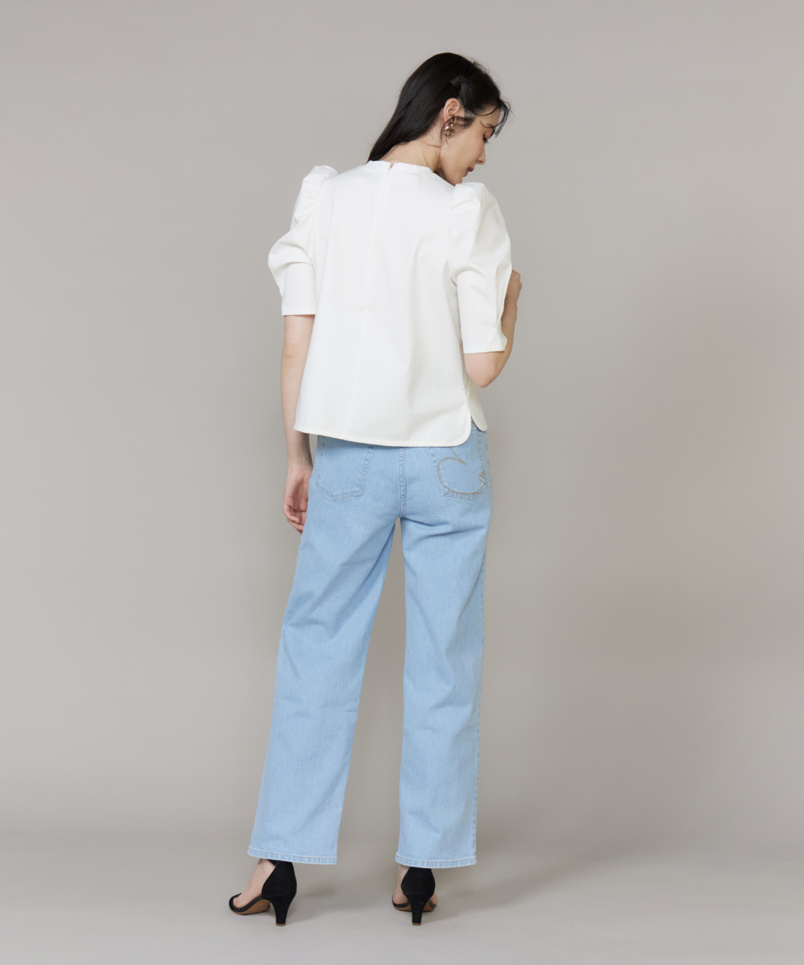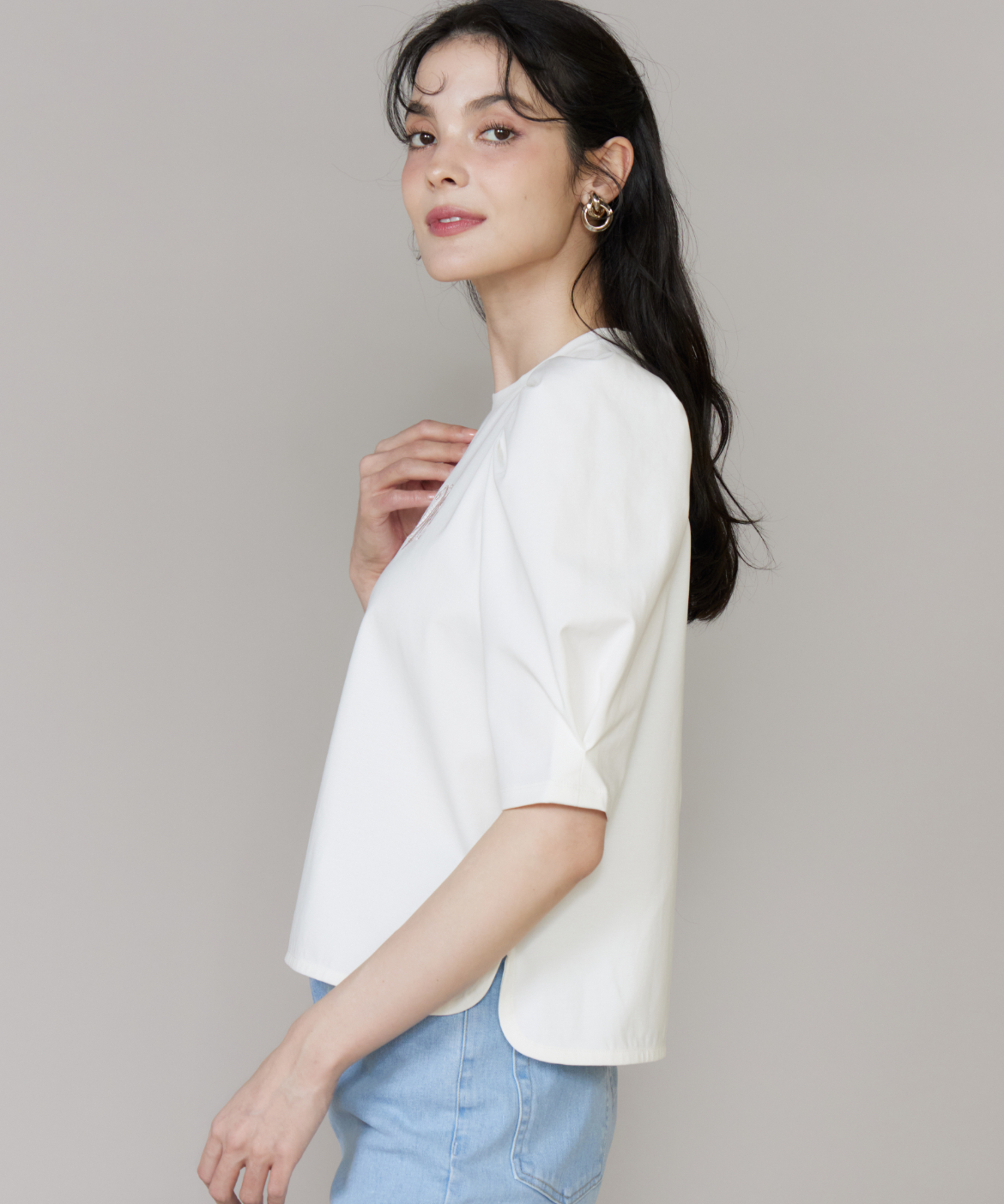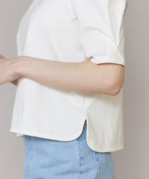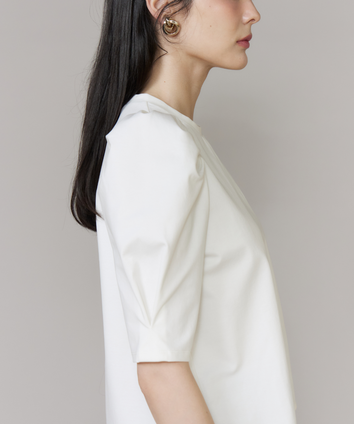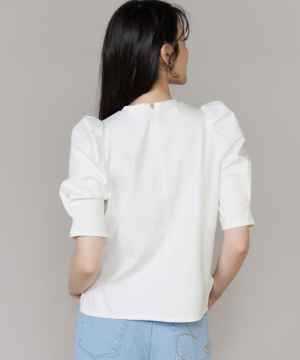 《大きいサイズ》ロゴ刺繍ボリューム袖カットソー