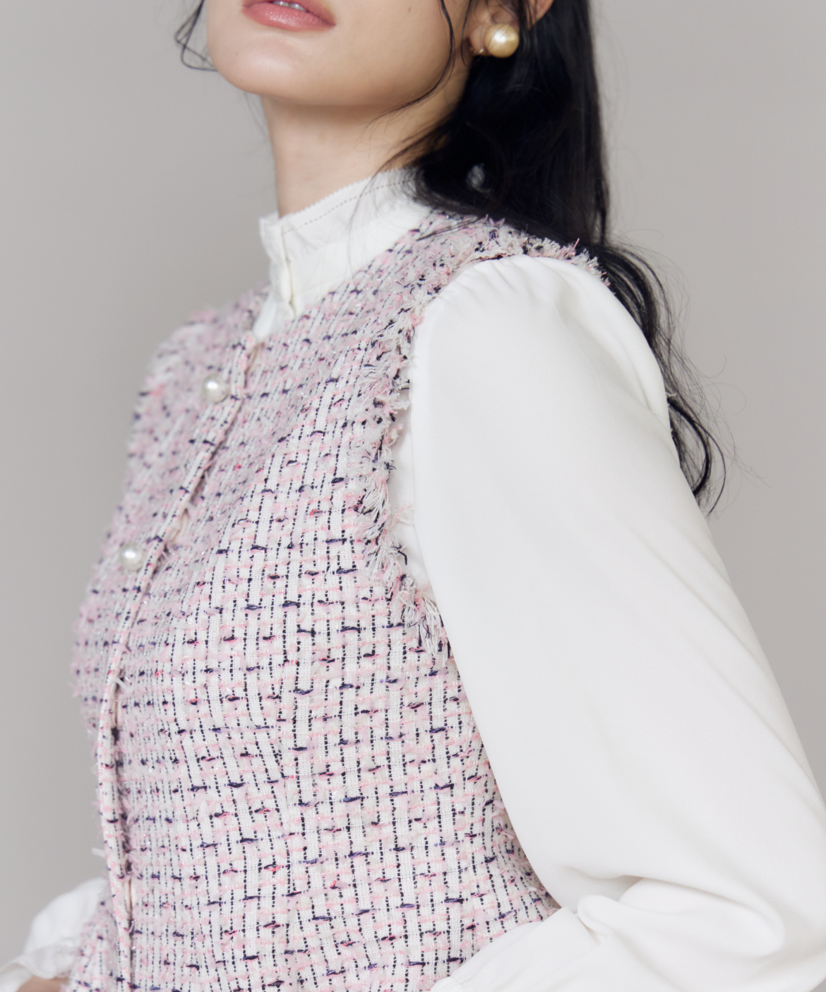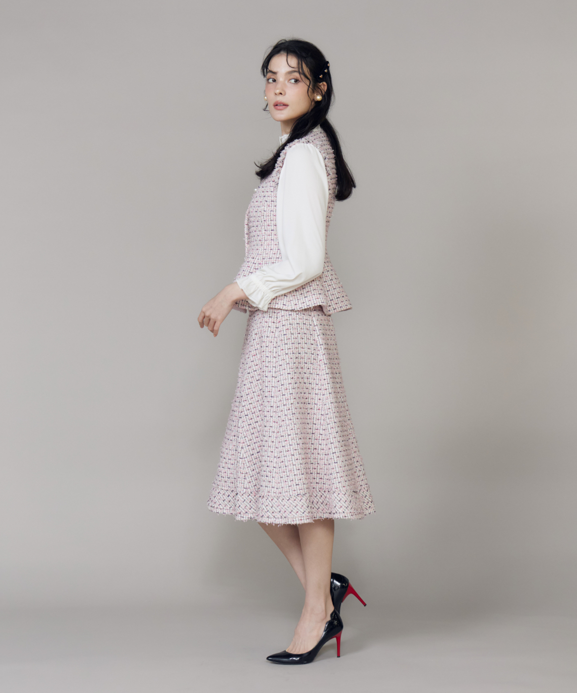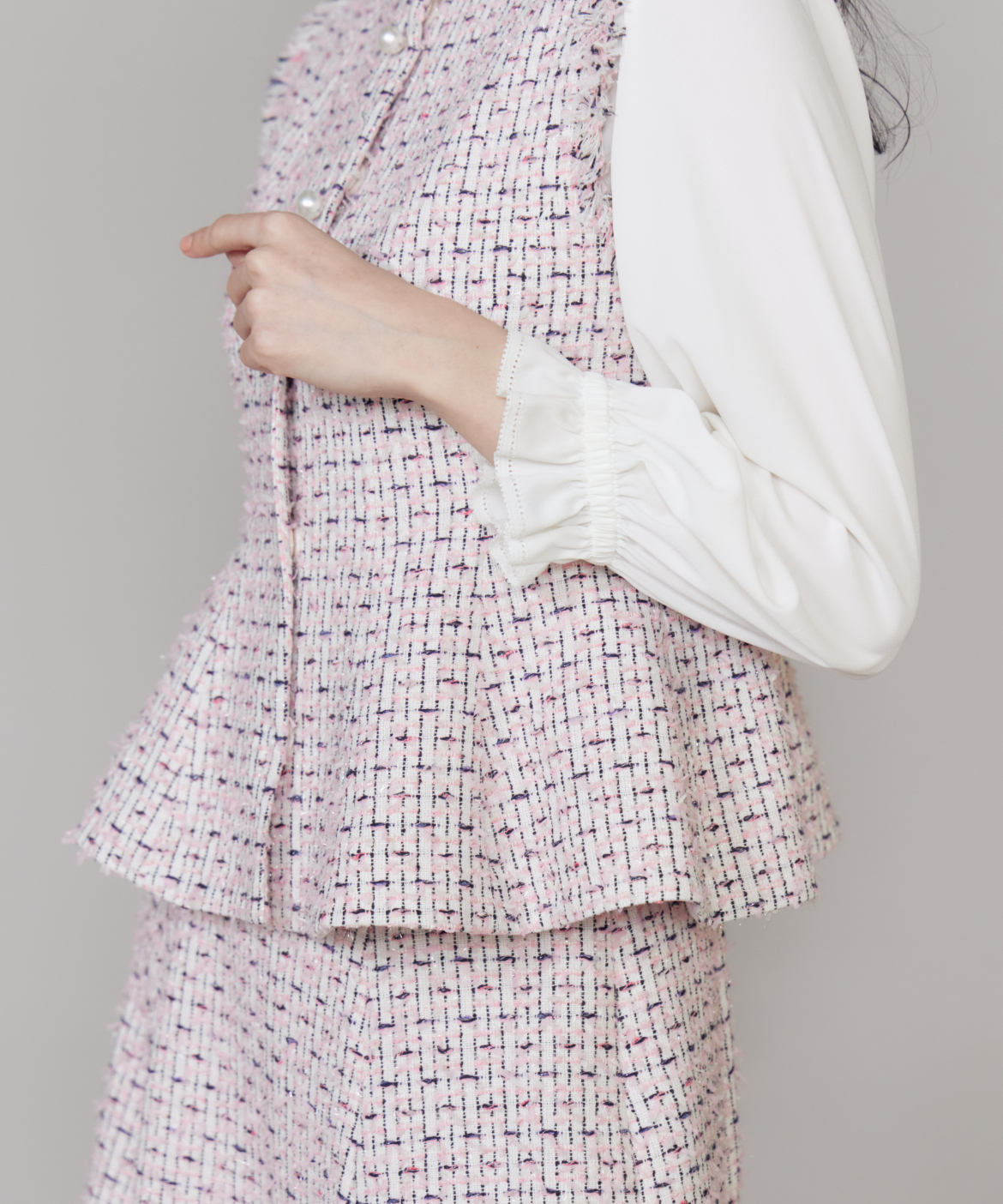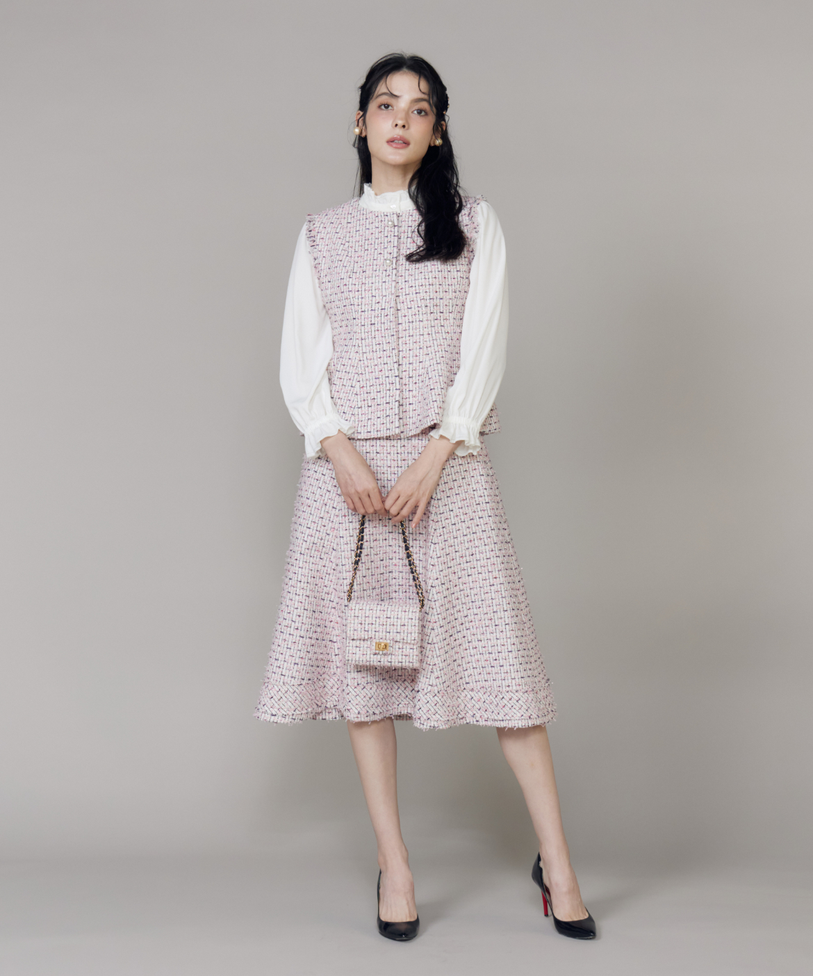 《プラスサイズ》フリンジツイードジレ《M Maglie le cassetto》