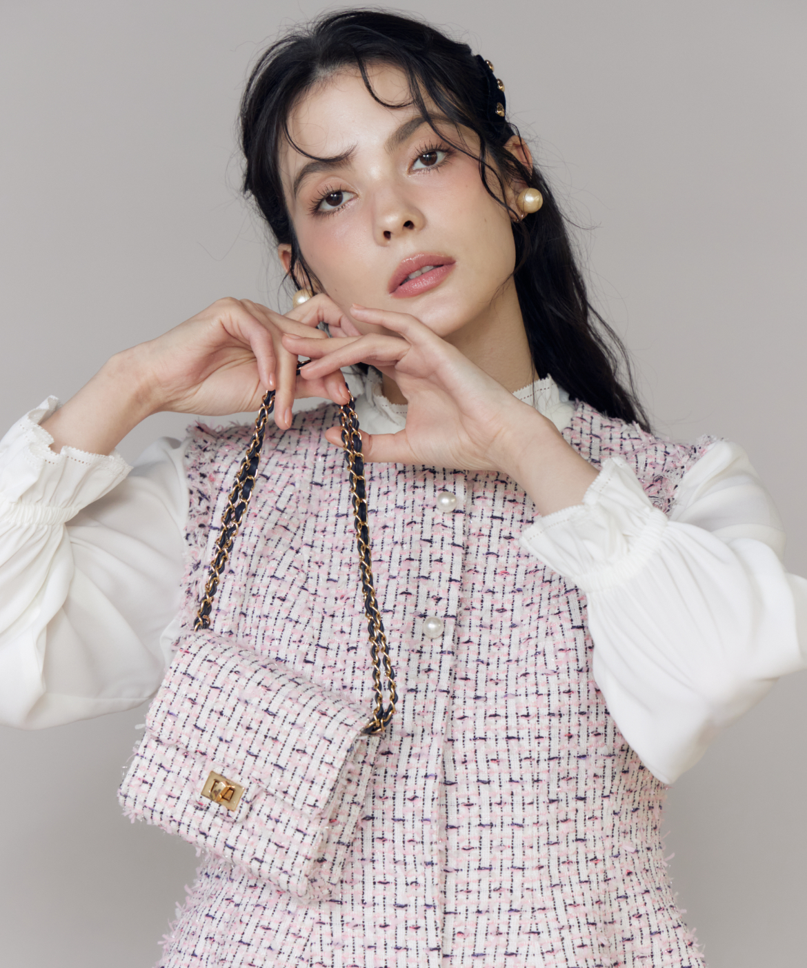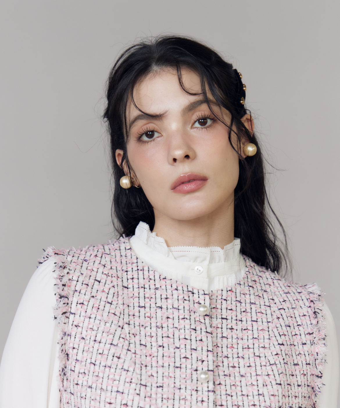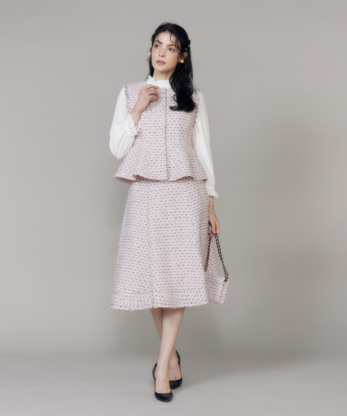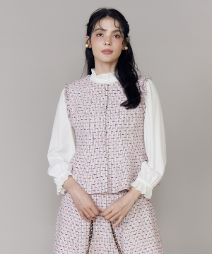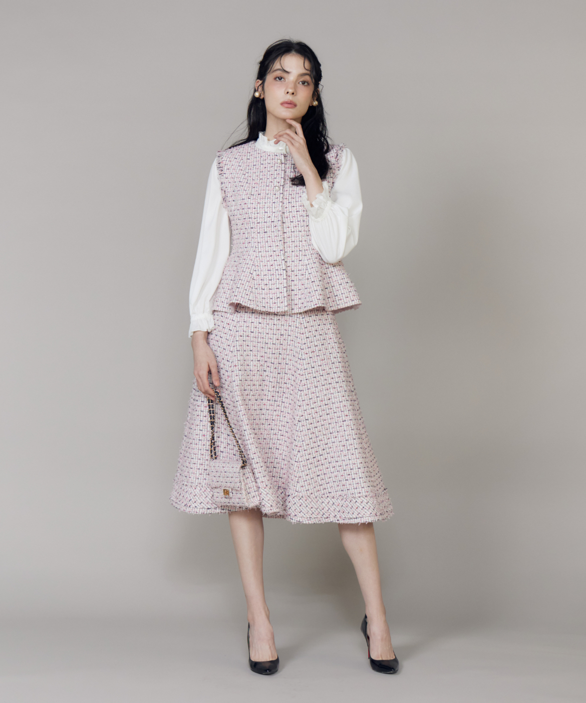 《プラスサイズ》フリンジツイードジレ《M Maglie le cassetto》