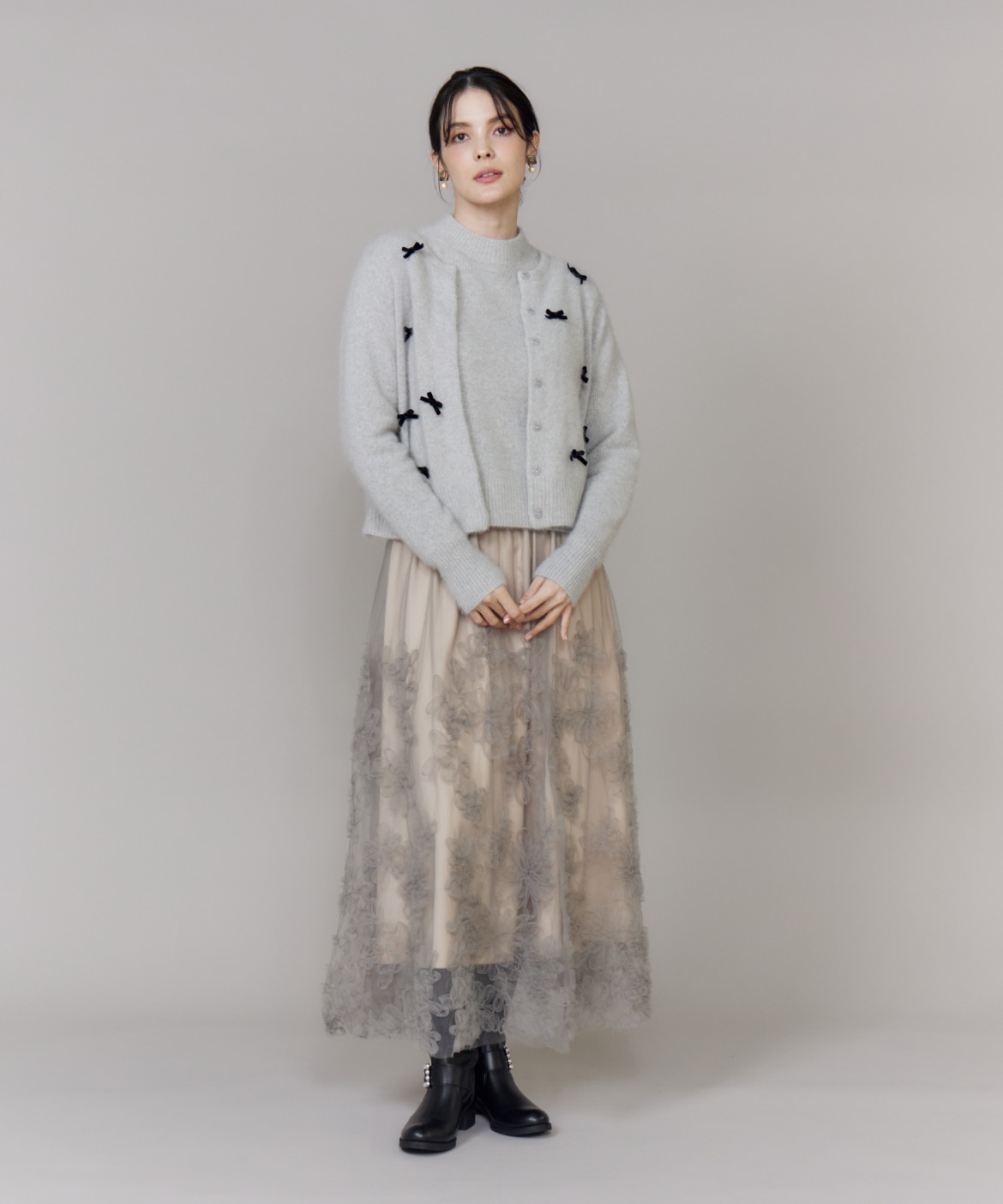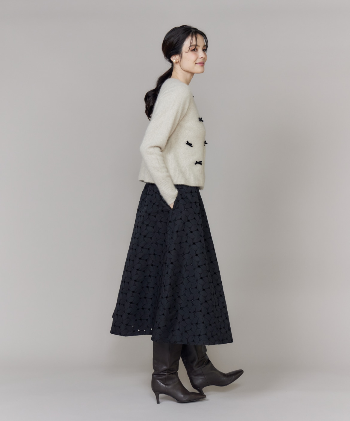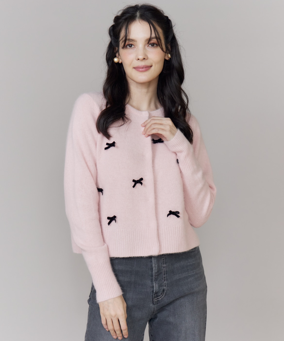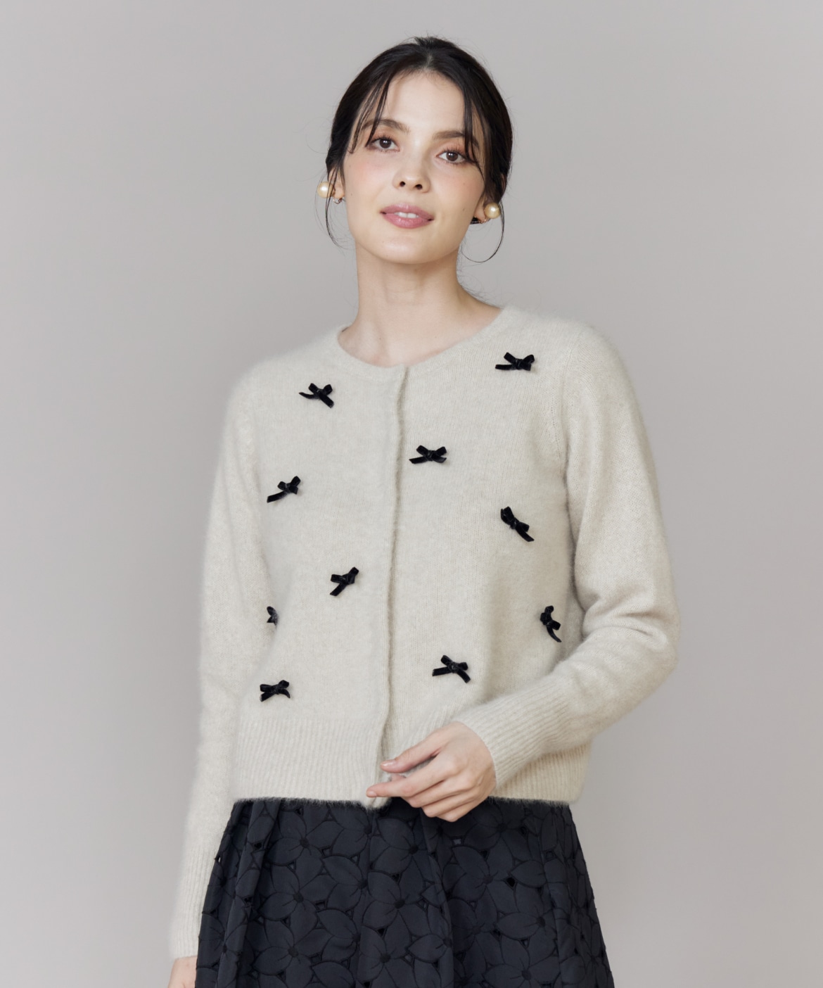 《大きいサイズ》ベロアリボンフォックスカーデ