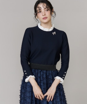 【予約】《大きいサイズ》フリルドッキングニットプルオーバー