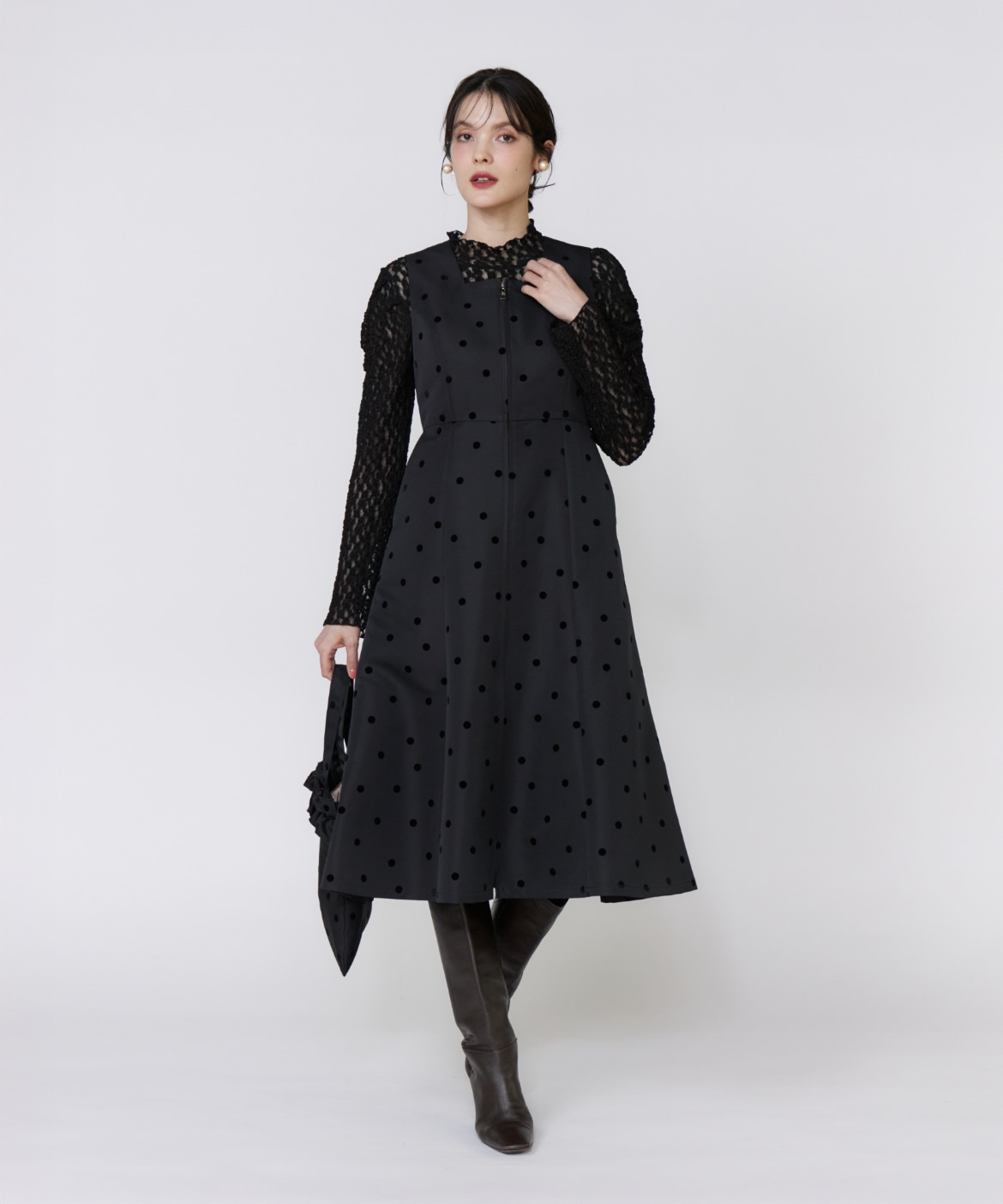 《プラスサイズ》《WEB限定》ドットフロッキーワンピース《M Maglie le cassetto》