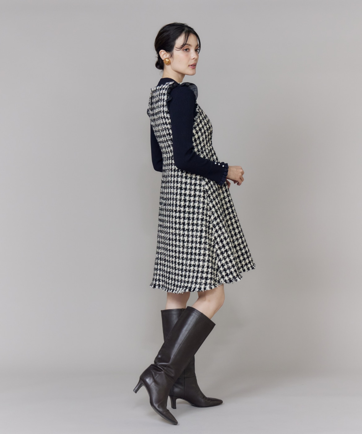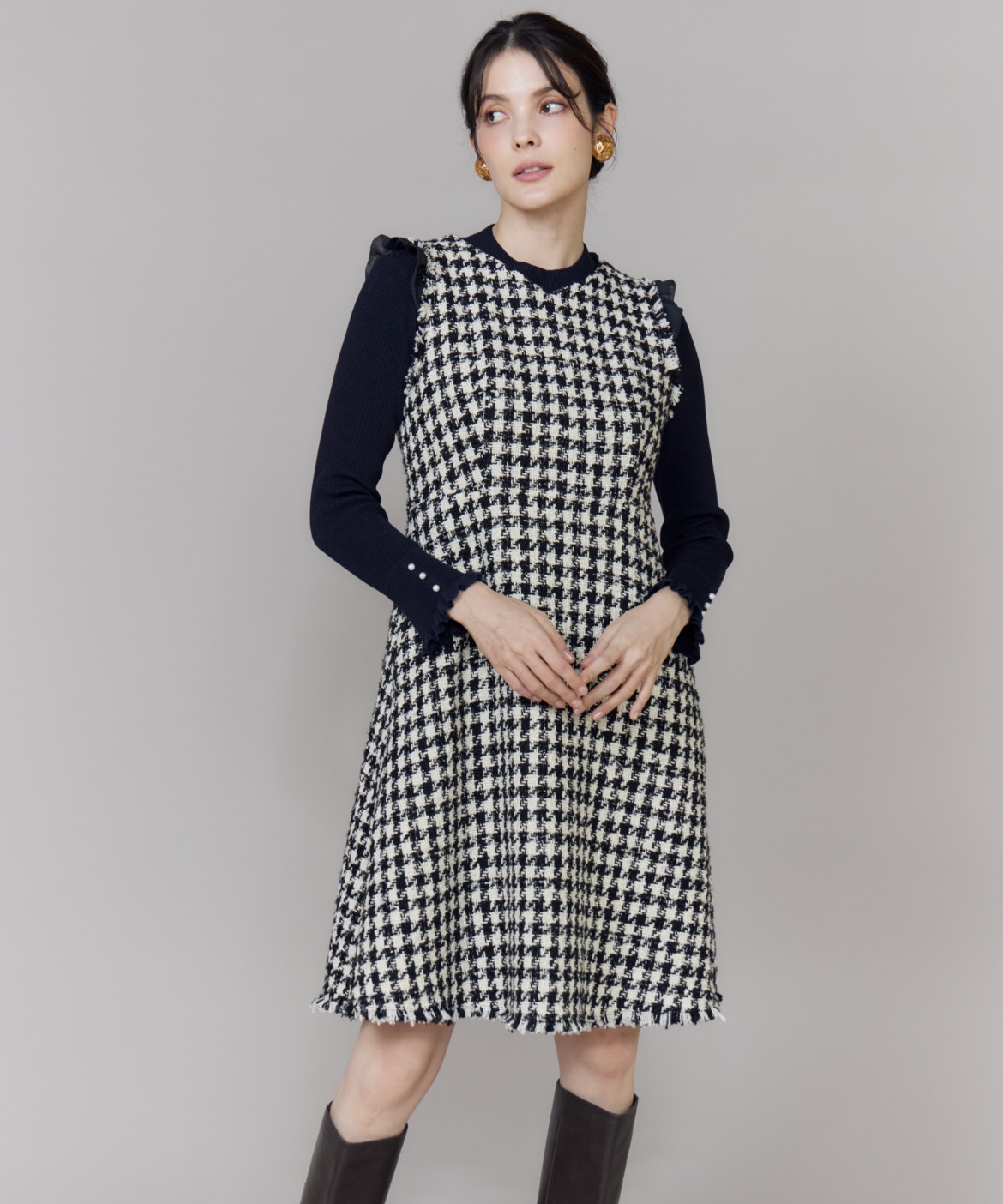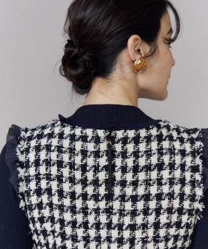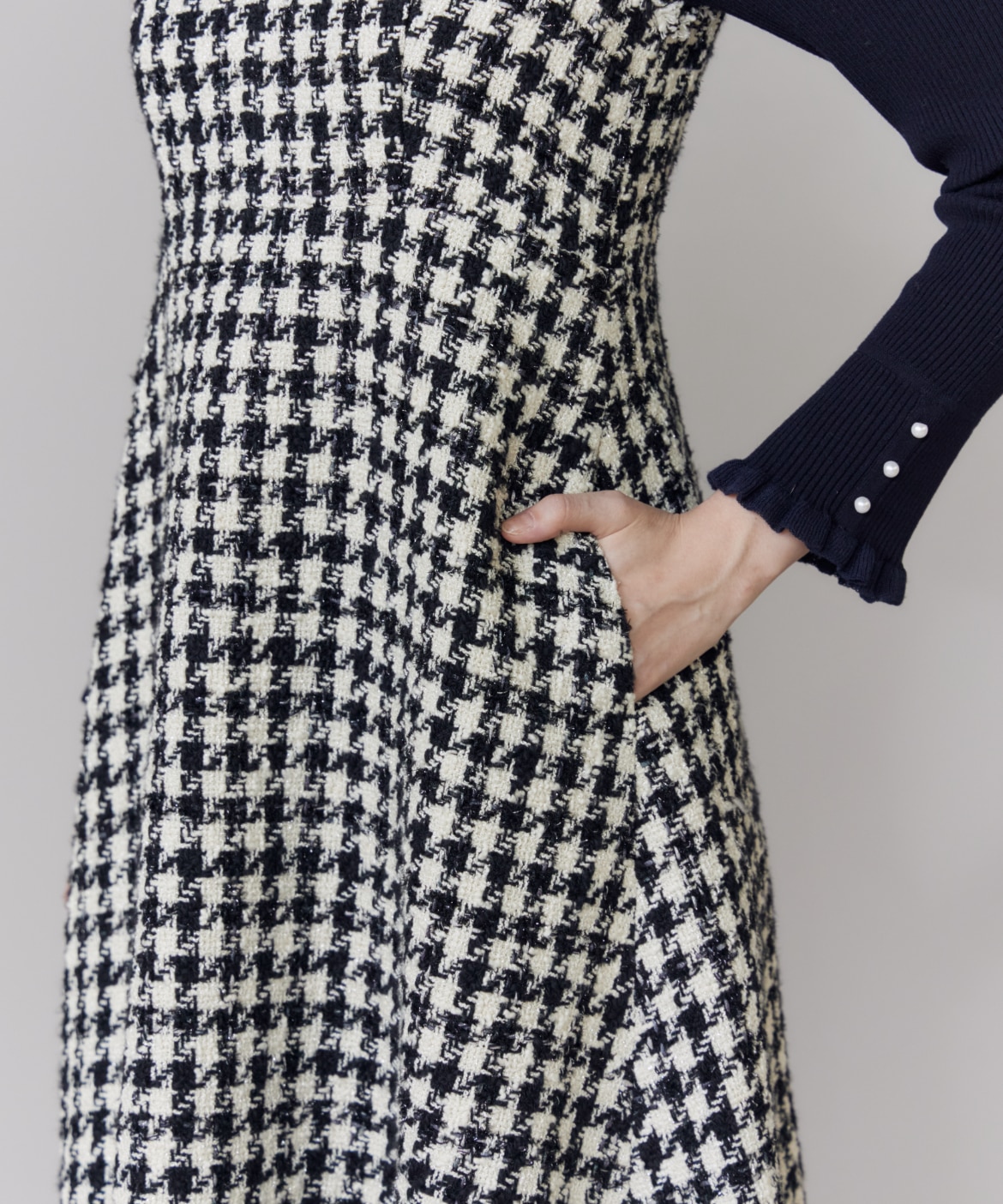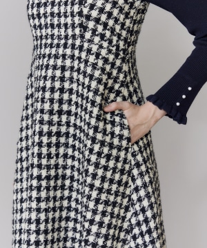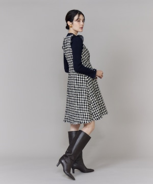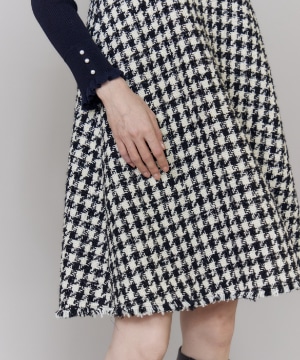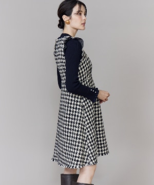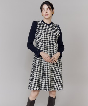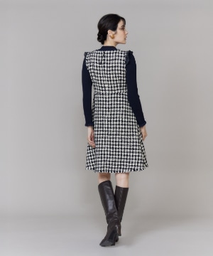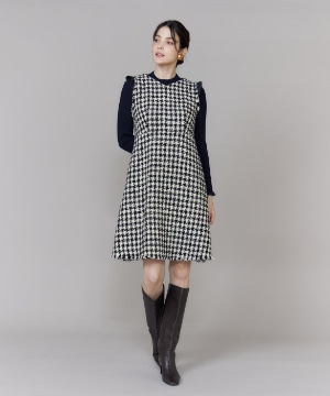 《プラスサイズ》Vネック千鳥柄ワンピース