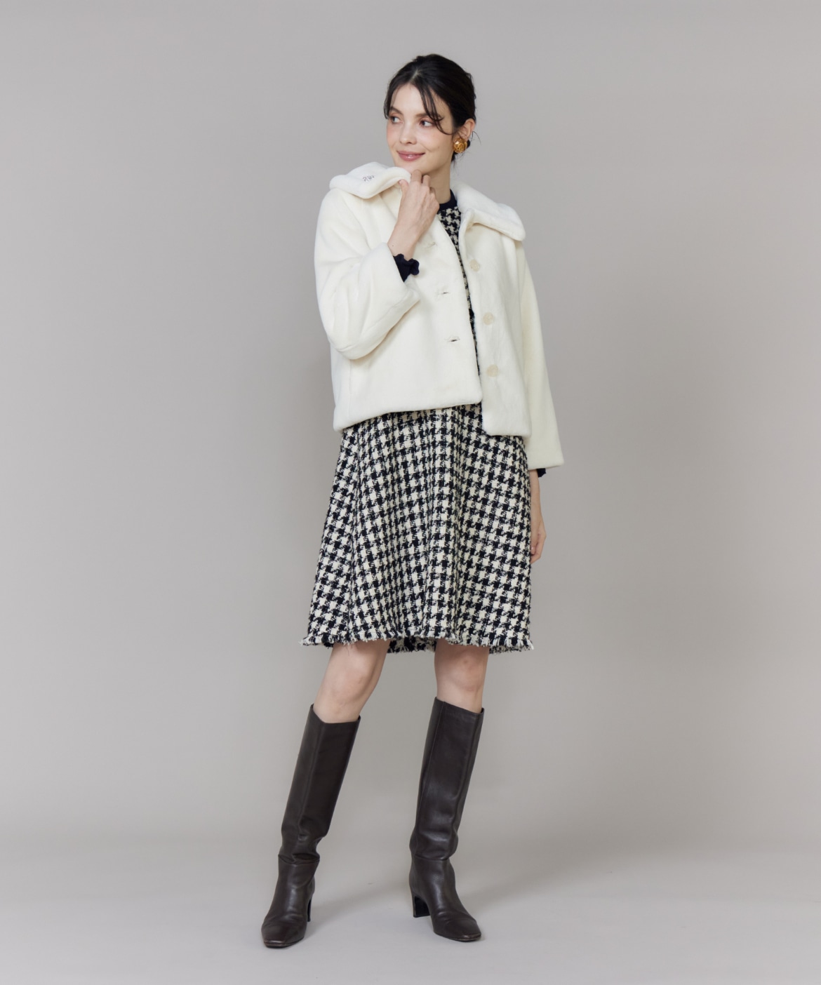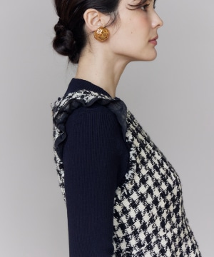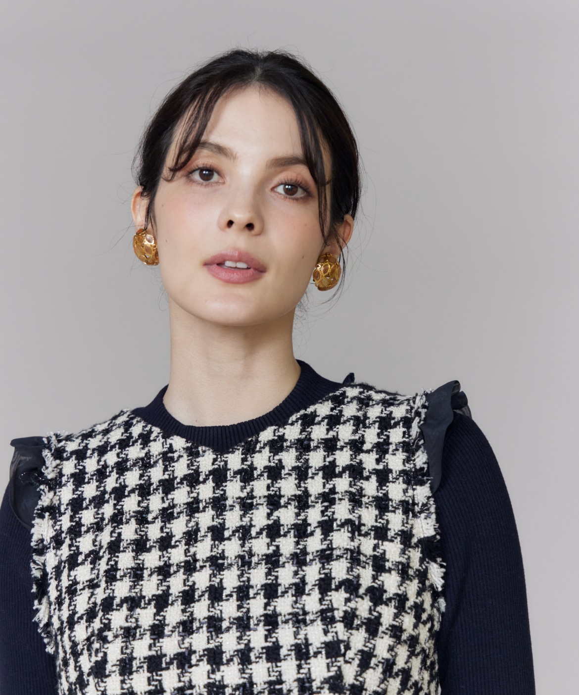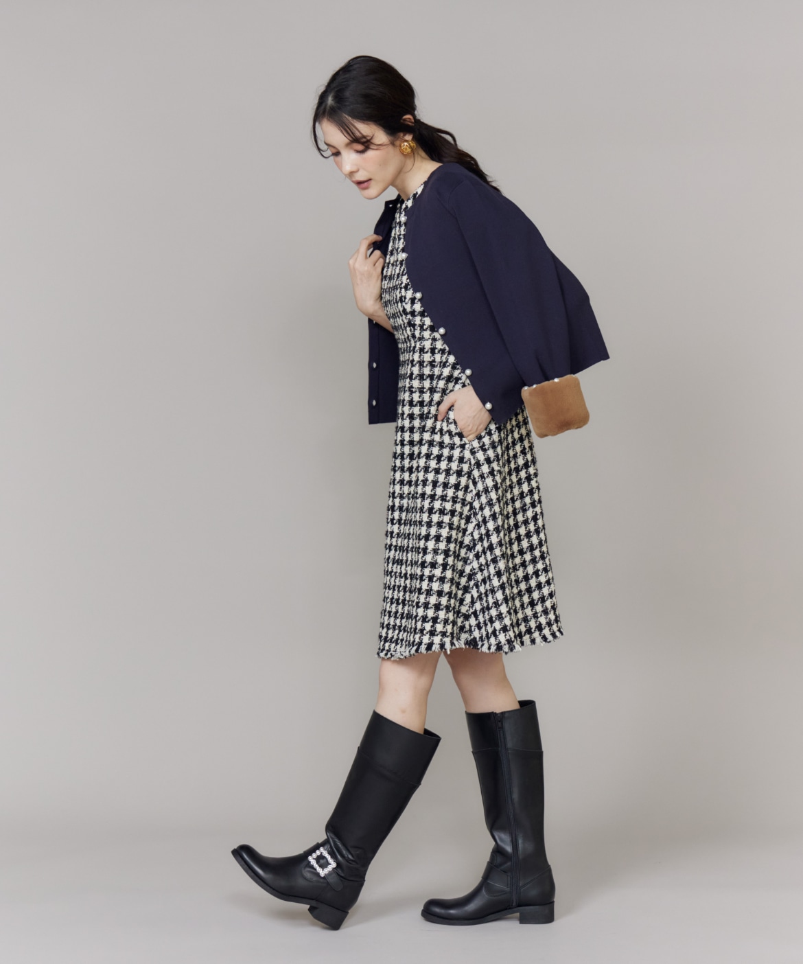 《プラスサイズ》Vネック千鳥柄ワンピース