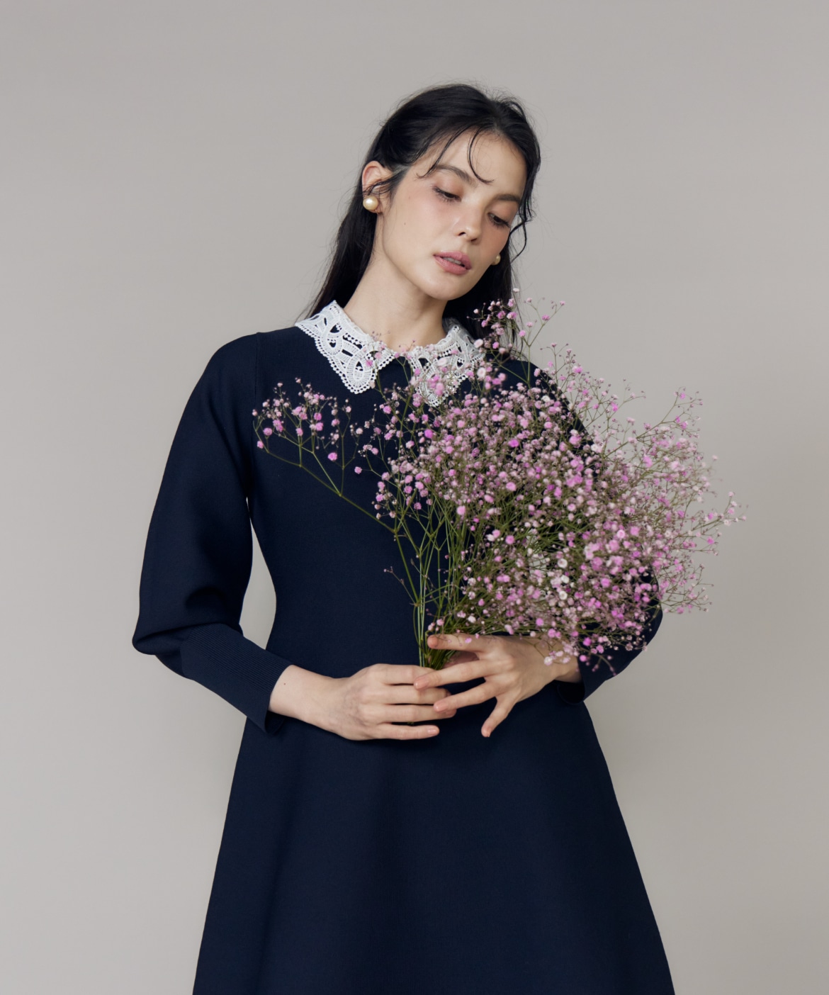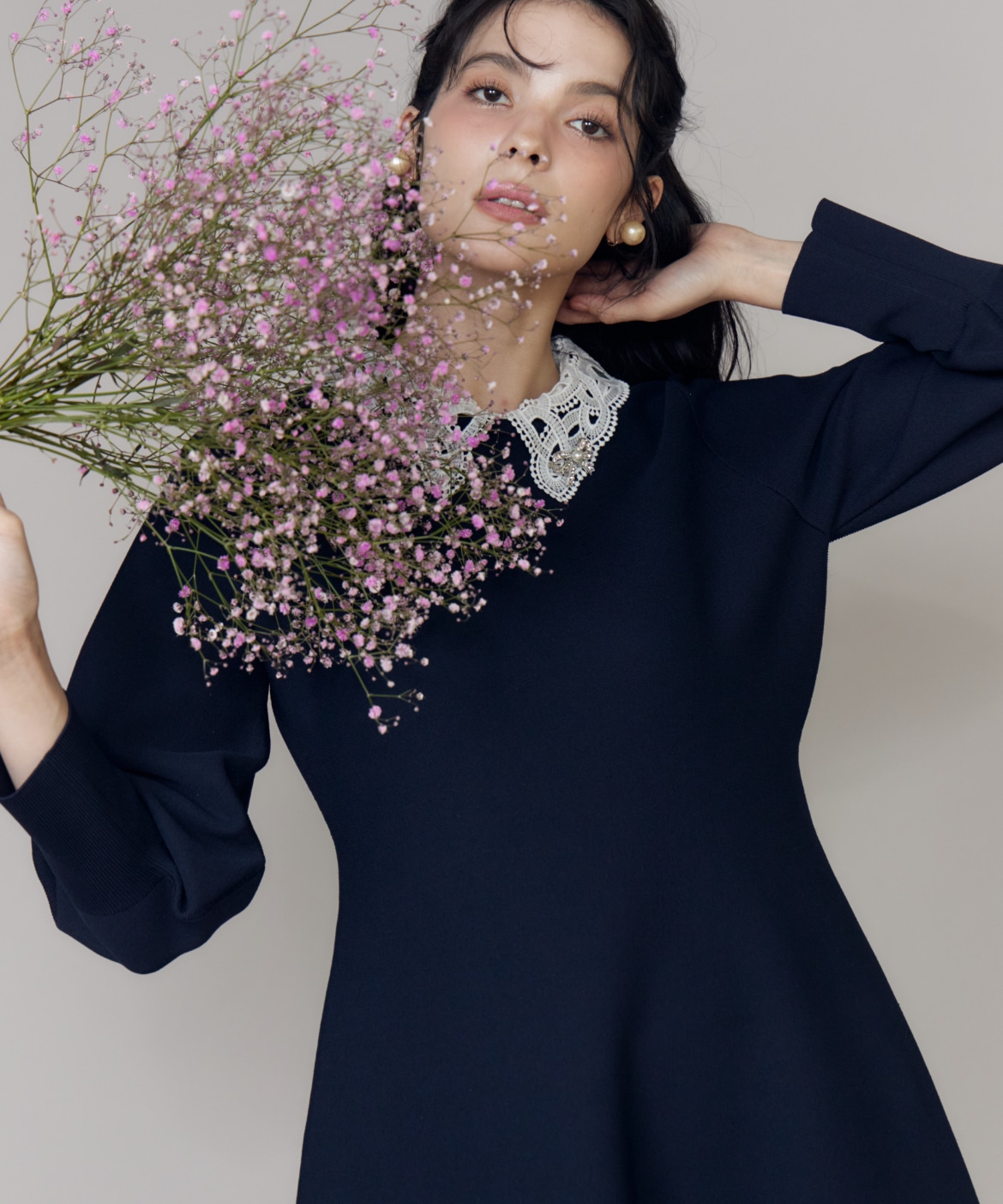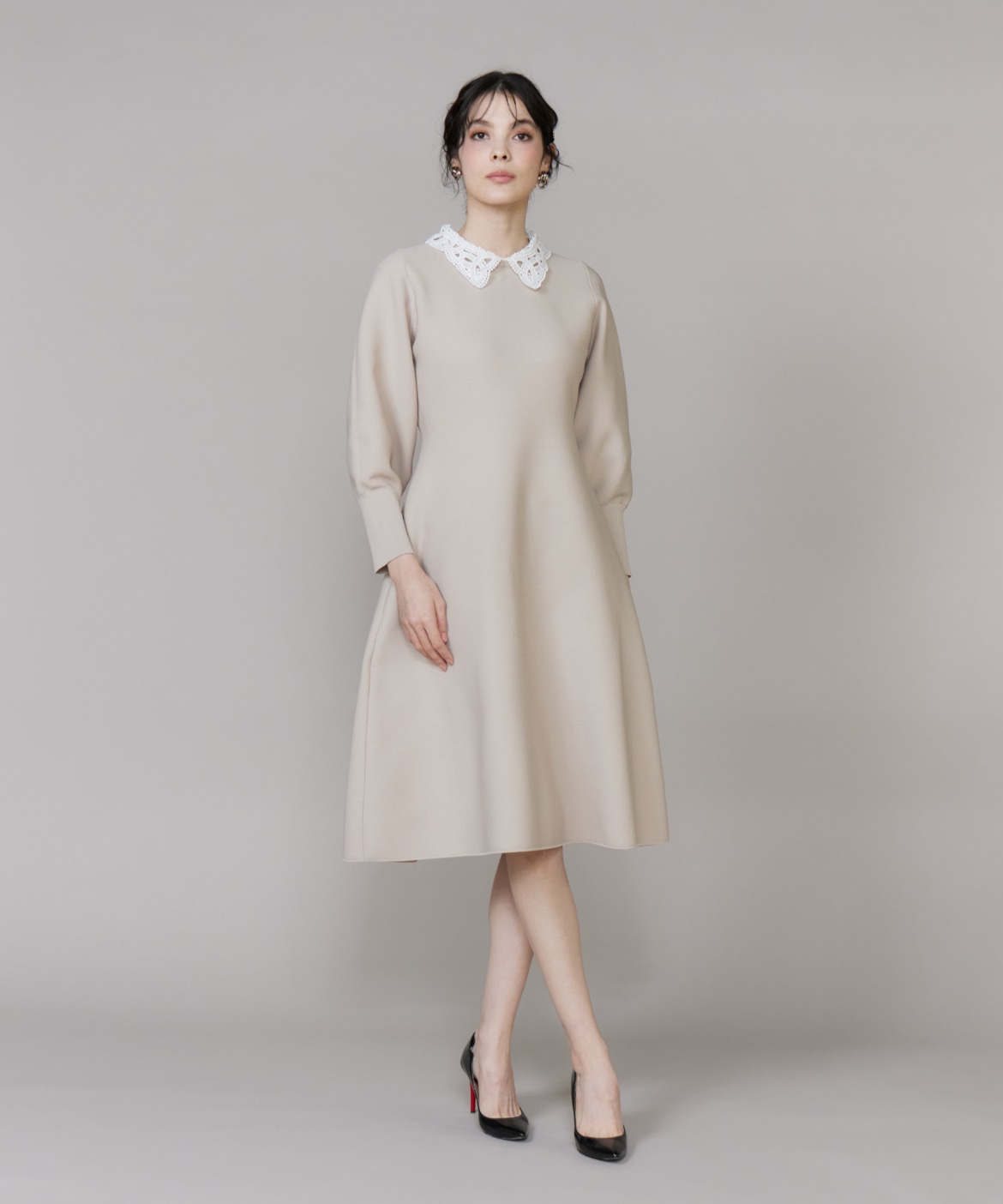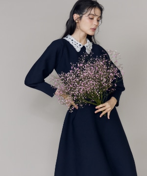 【予約】《大きいサイズ》衿レースニットワンピース《M Maglie le cassetto》