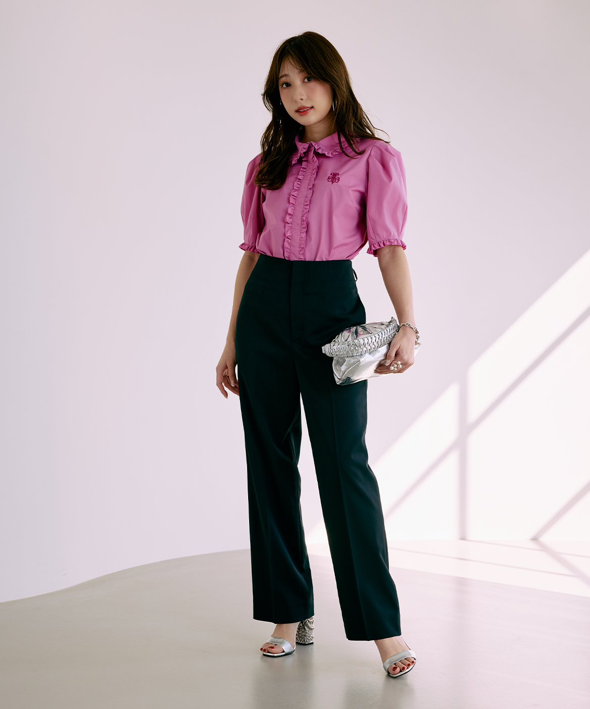 《大きいサイズ》フラワーレース美シルエットストレートパンツ《M Maglie le cassetto×冨張愛》