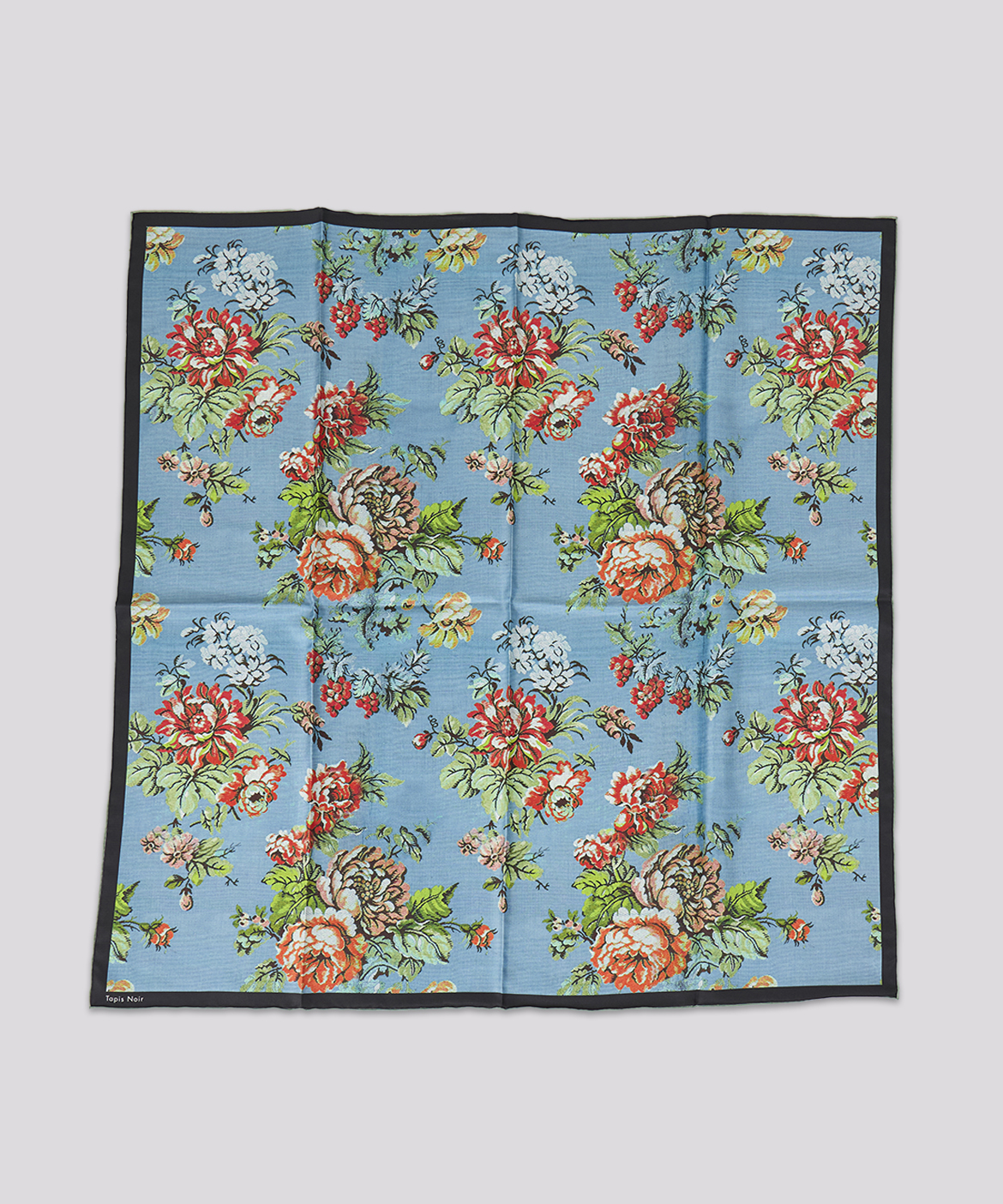 2020年に Mads Lehn Kruse によってデンマークで設立された Tapis Noirは、ヴィンテージのテキスタイルをモダンにアレンジし、手縫いのシルクツイルや最高級のクレープ・デシンなど素材や手法にこだわって生まれたスカーフブランドです。古いファブリックのコレクターであるアートディレクターのLehn Kruseは、織物の質感、豊かなタペストリー、古い壁パネル等をデジタルで美しいシルクに変換しオリジナル生地に仕上げています。タピノワールは、シルクスカーフのみを専門とする職人の製造業者とのみ協力しており、アーツアドクラフツに対する敬意をブランドフィロソフィとしています。