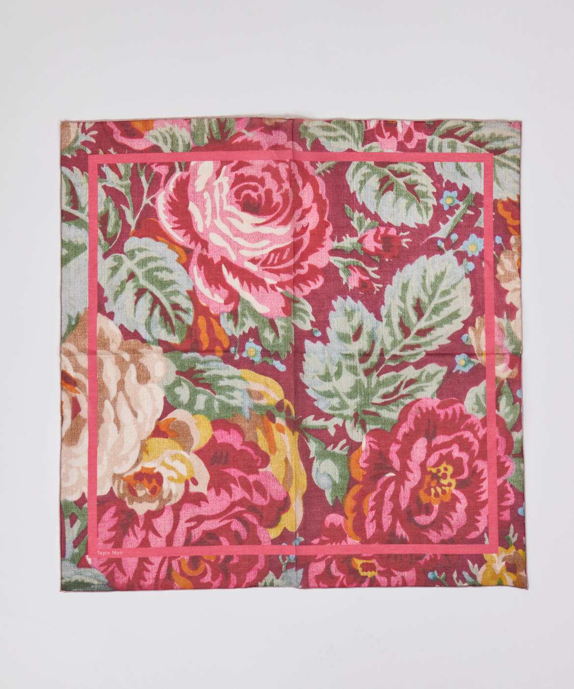 2020年に Mads Lehn Kruse によってデンマークで設立された Tapis Noirは、ヴィンテージのテキスタイルをモダンにアレンジし、手縫いのシルクツイルや最高級のクレープ・デシンなど素材や手法にこだわって生まれたスカーフブランドです。古いファブリックのコレクターであるアートディレクターのLehn Kruseは、織物の質感、豊かなタペストリー、古い壁パネル等をデジタルで美しいシルクに変換しオリジナル生地に仕上げています。タピノワールは、シルクスカーフのみを専門とする職人の製造業者とのみ協力しており、アーツアドクラフツに対する敬意をブランドフィロソフィとしています。