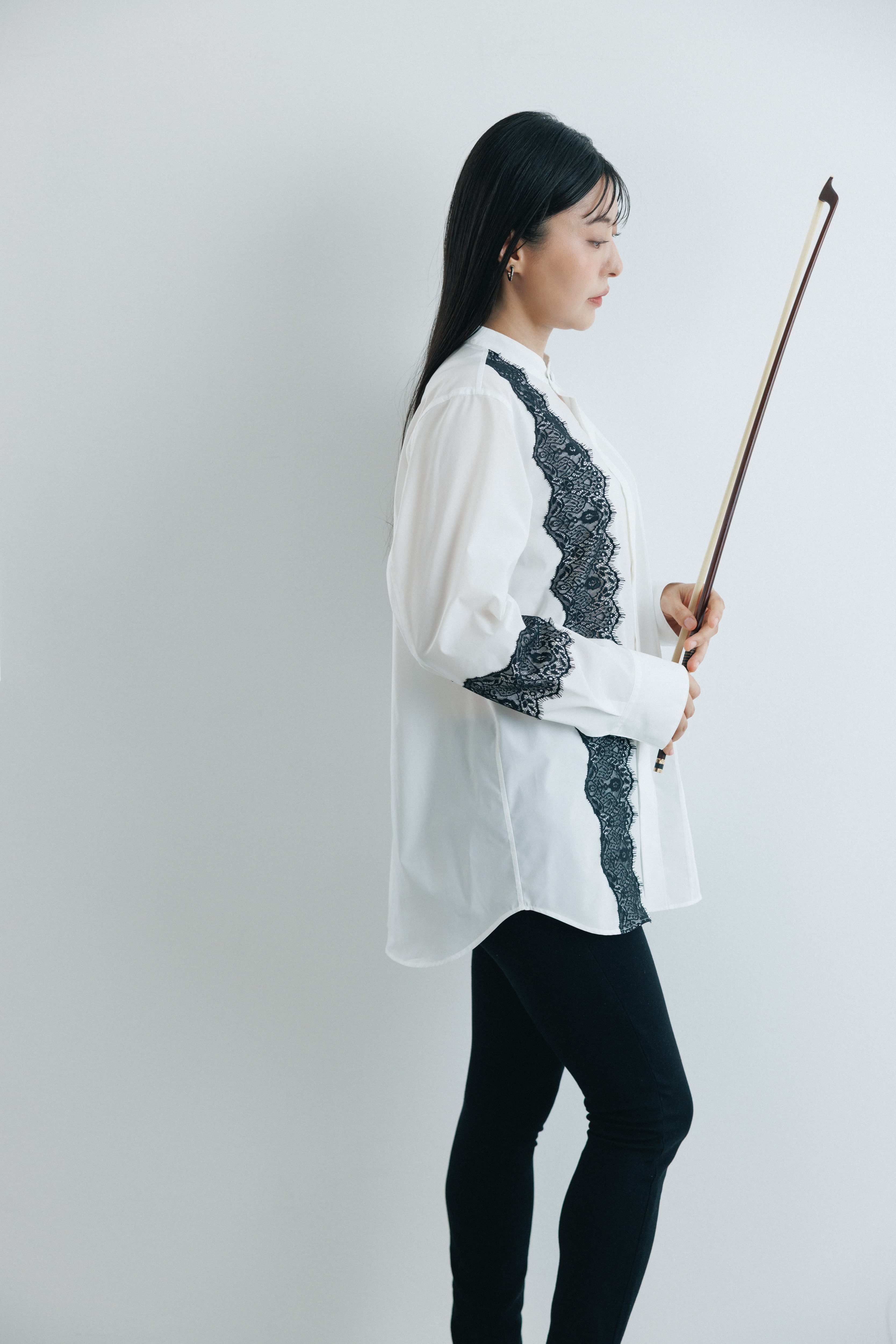 特殊な光沢と陰影のある上質な素材を使用し、舞台上でも映える華やかさを演出します。デザインの特徴は、しっかりとした太めの肩紐に袖のようなフリルをあしらった2WAY仕様。フリルは取り外しが可能で、シーンや楽器に合わせてベアワンピースとしても着用できます。肩のアレンジが自在なフレキシブルなデザインは、演奏シーンにも最適。シルエットは、すっきりとした4段ティアードが生み出す美しいライン。ハイウエスト切替でスタイルアップ効果も抜群です。さらに、胸パッド付きで安心感があり、バックのストリングデザインによりフィット感の調整も可能。着心地とデザイン性を両立した一着です。カラーは、今季注目のボルドーと、幅広い楽器と相性の良い大人ピンクの2色展開。華やかでありながら上品に纏えるドレスです。