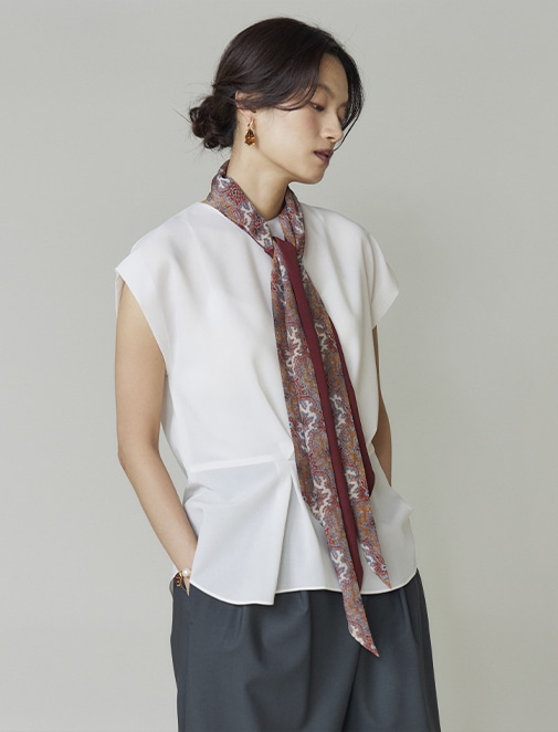 程よいボリュームで首元を華やかに。シルク100%素材でコーディネートに上品な要素をプラスしてくれます。