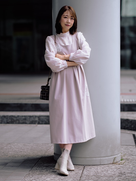 グラデーションでまとめたフェミニンコーデ。