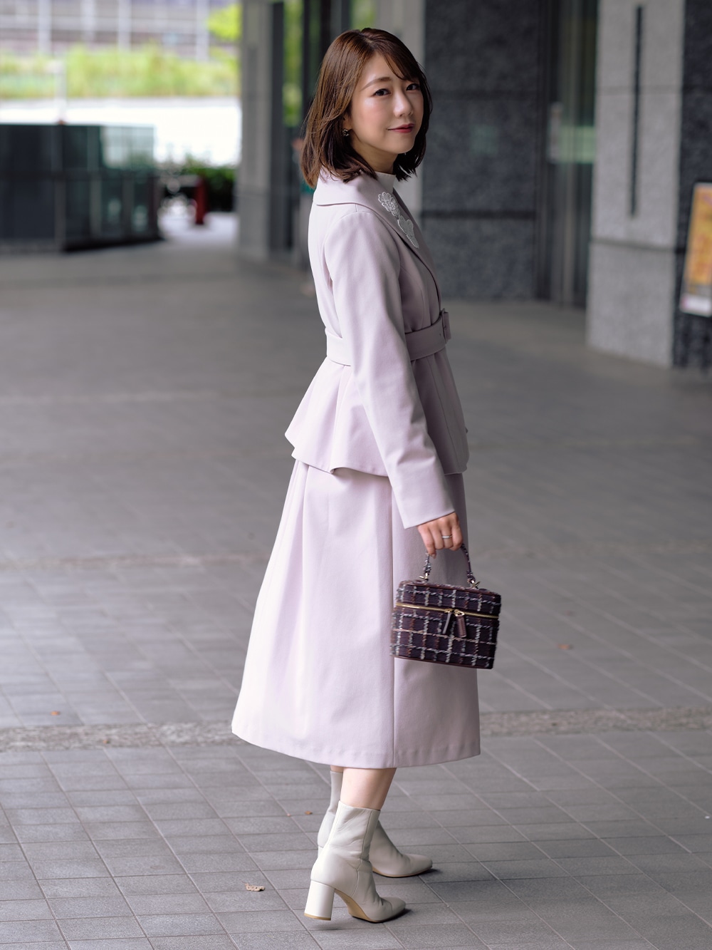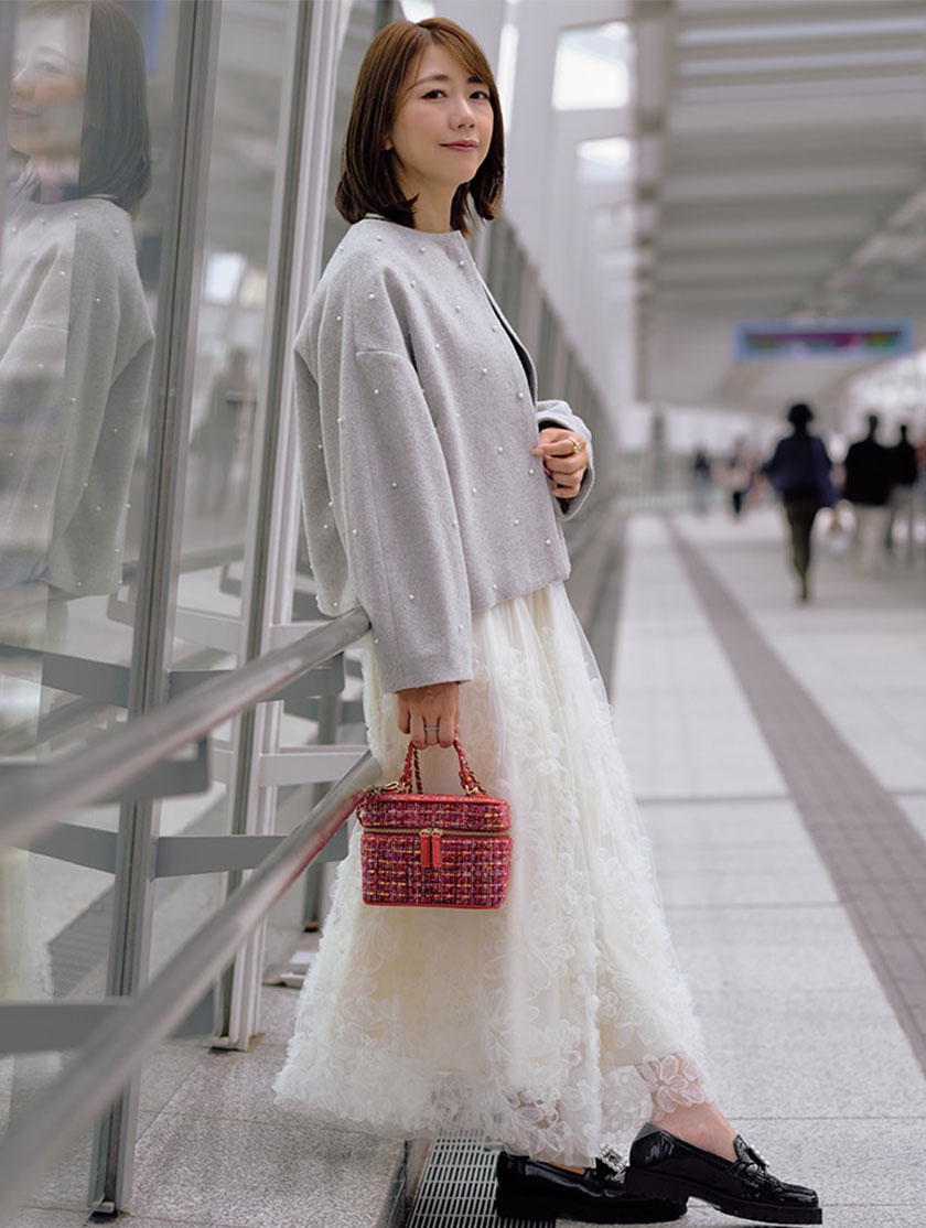 両立した、大人フェミニンなセットアップスタイルです。