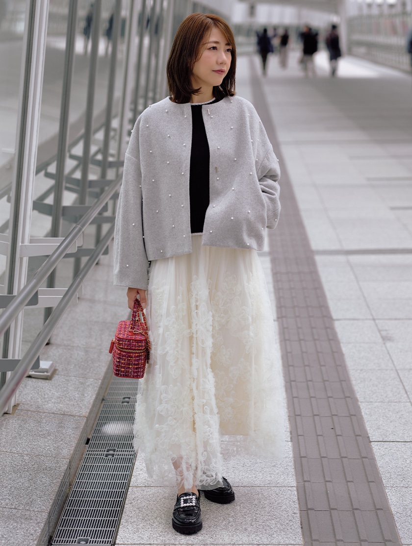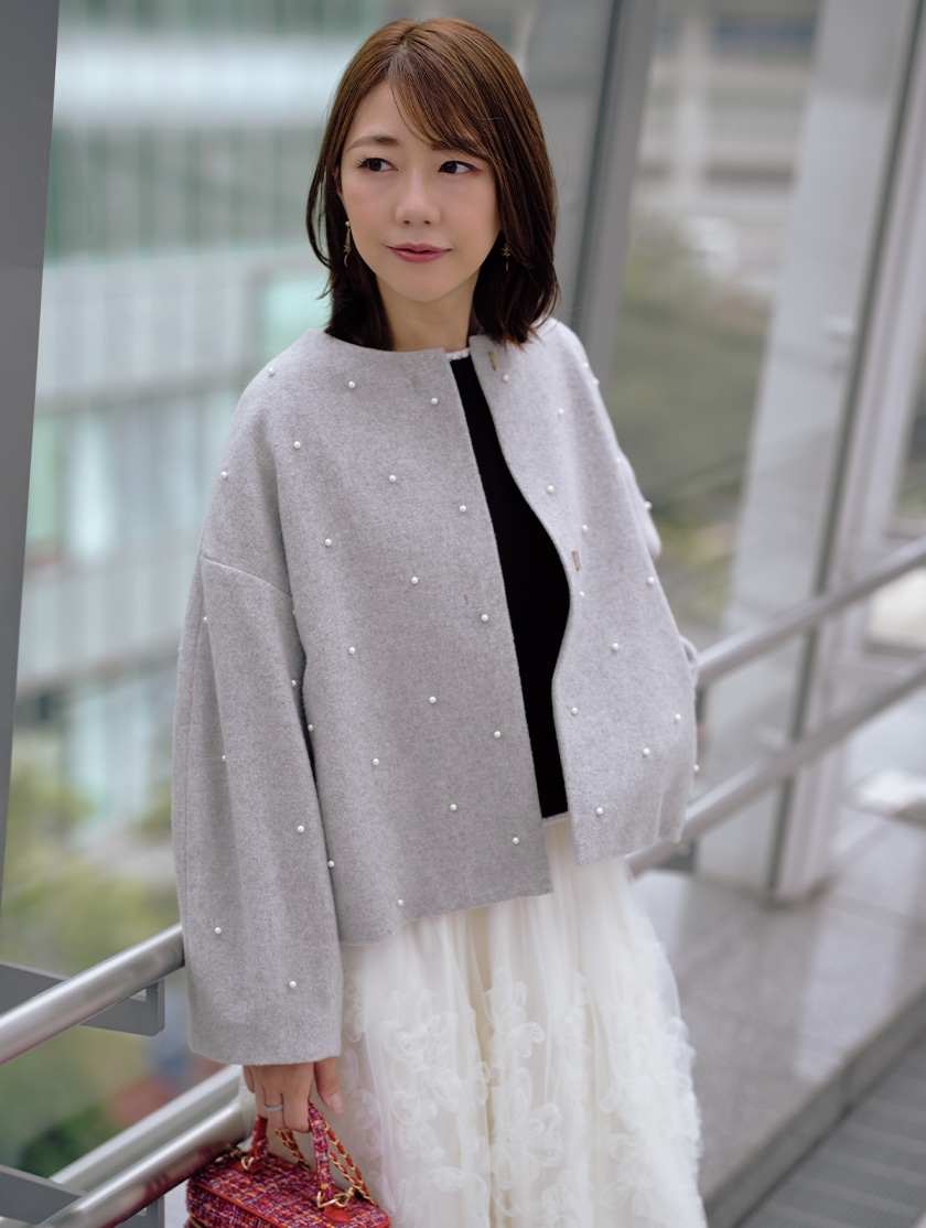 パールが煌めく、華やぎショートコート