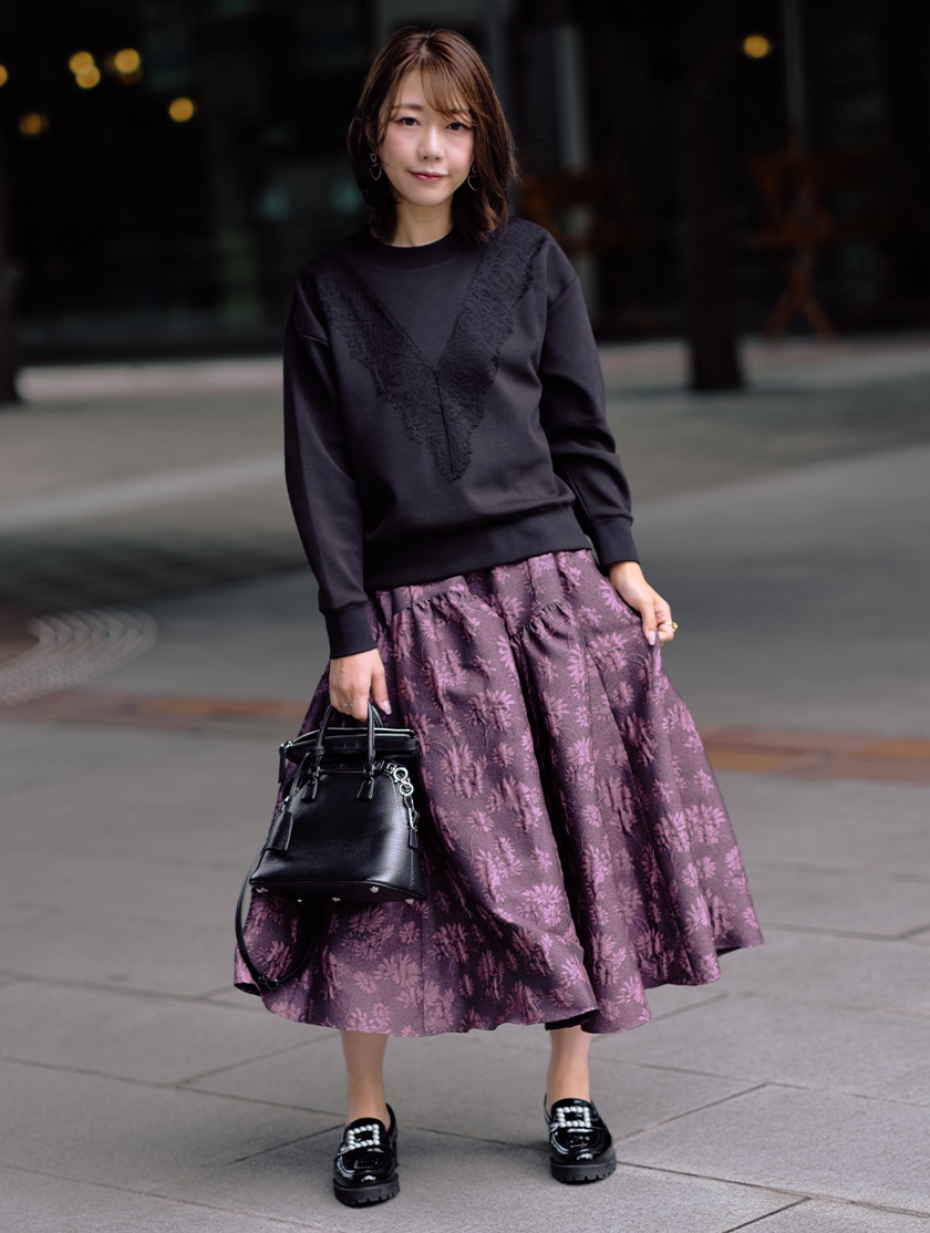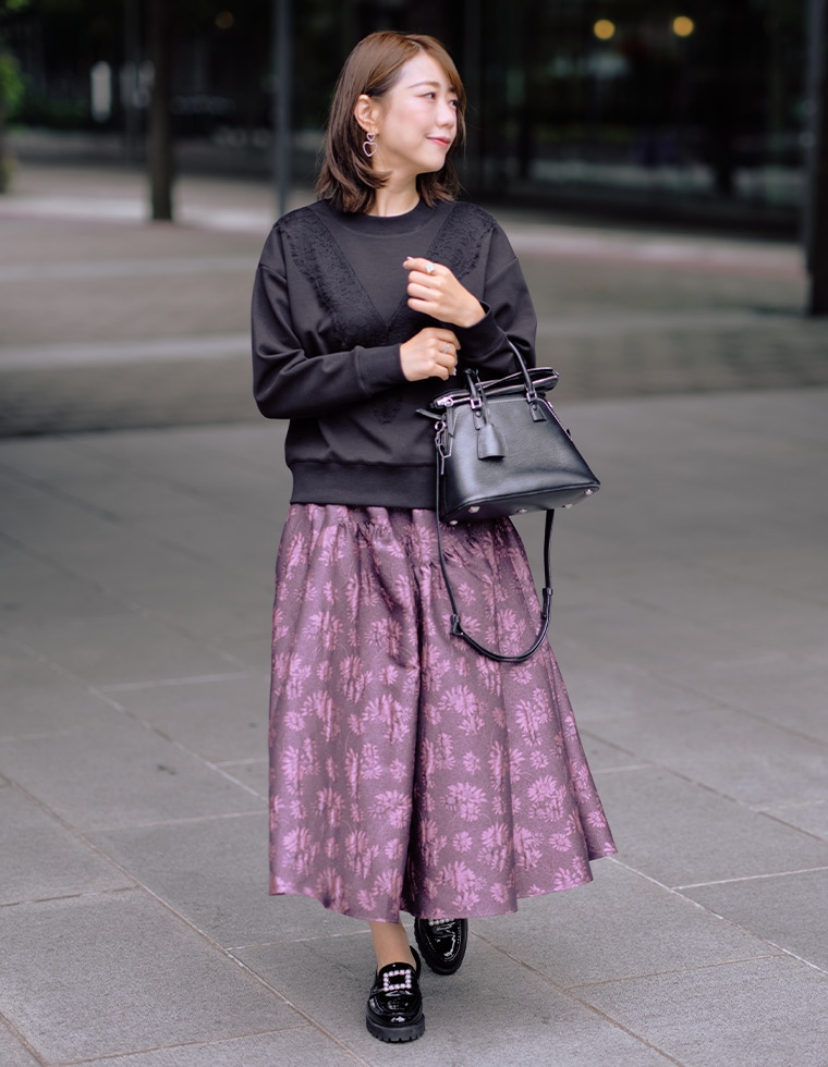 黒の陰影が品のある表情を作ります。動きやすさと上品さを