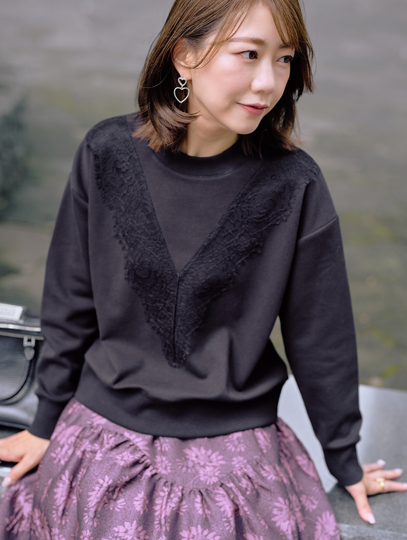 大人カジュアルフェミニンを叶える、レーススウェット
