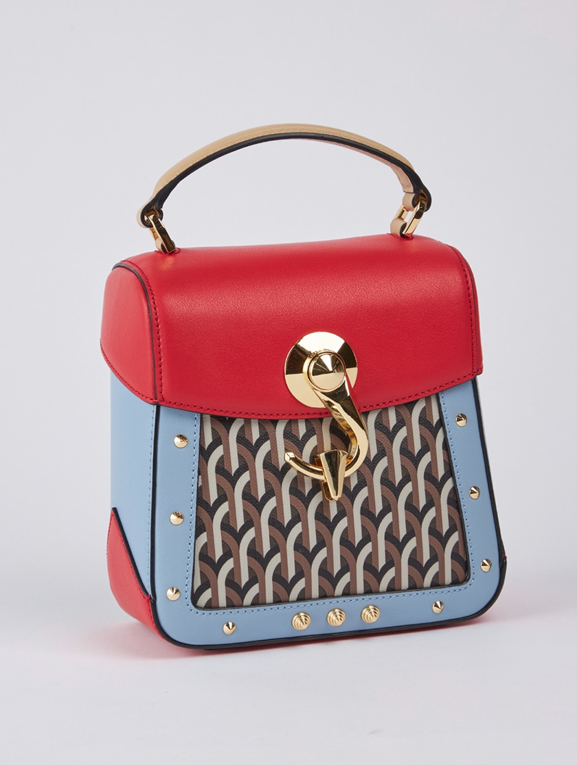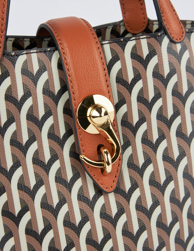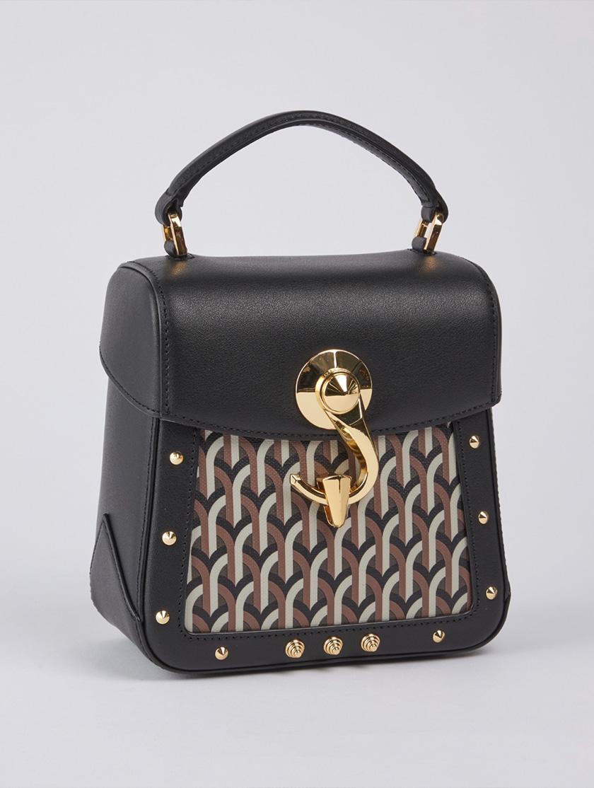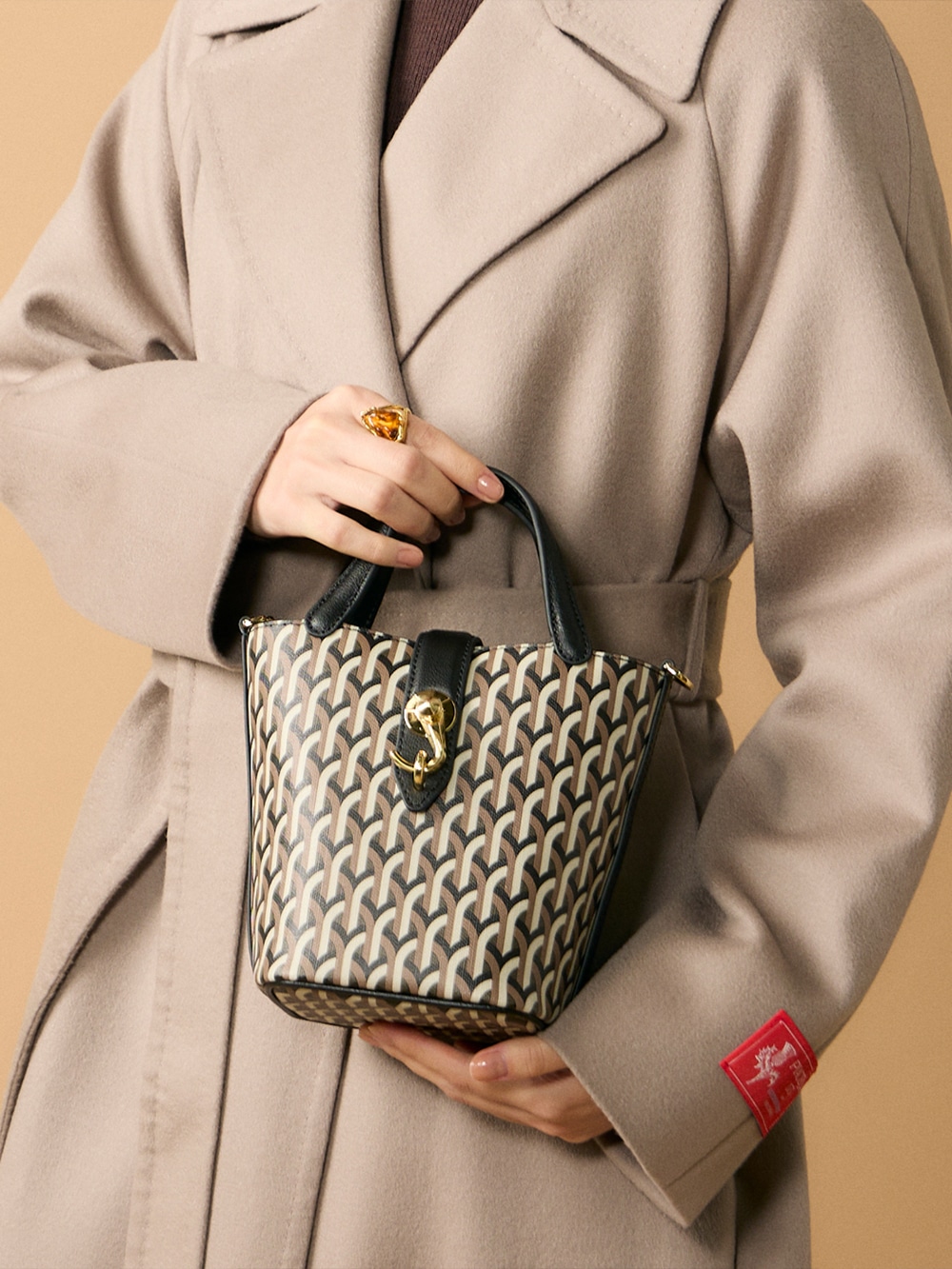 ゴールドトーンのフックメタルとアイコンであるミラノのドゥオーモ風のパターンが特徴的。