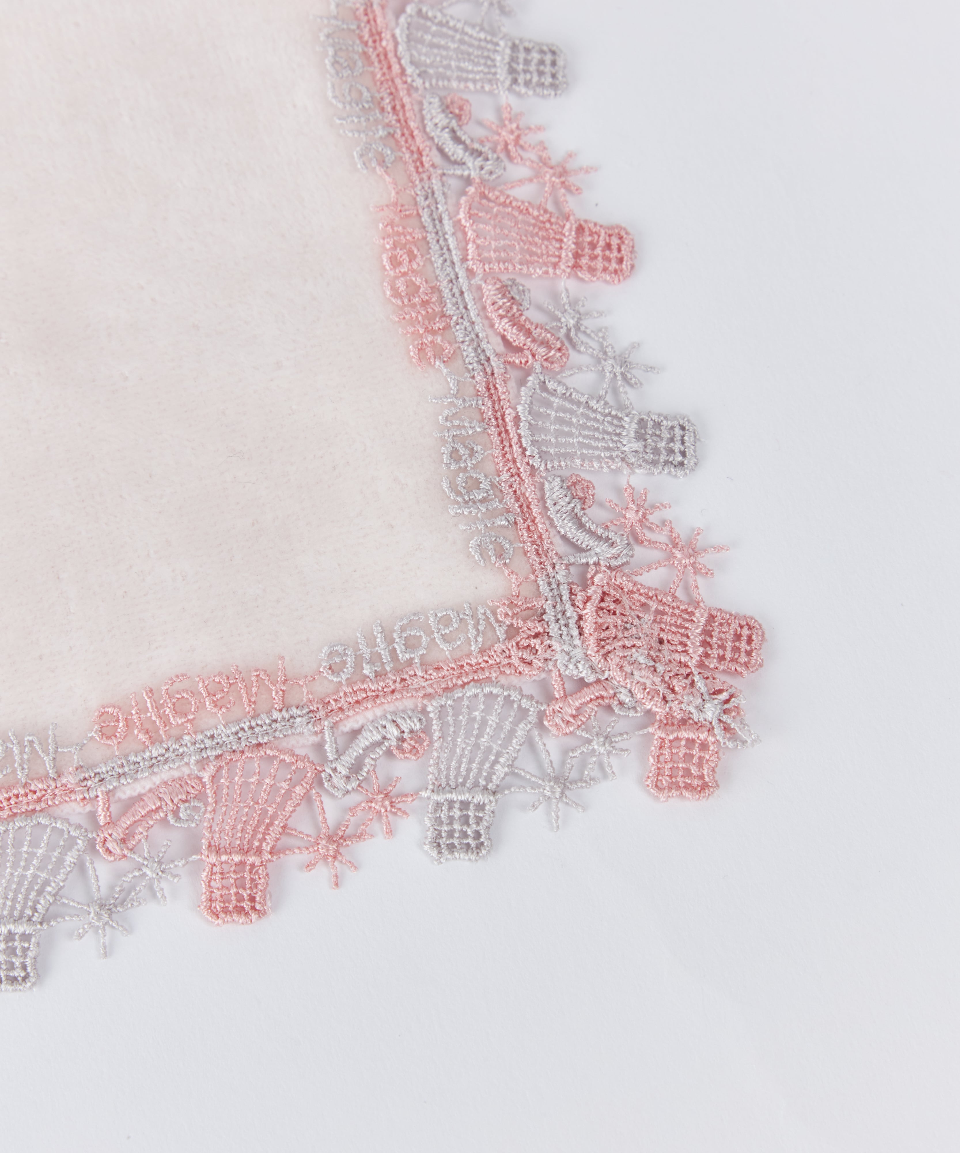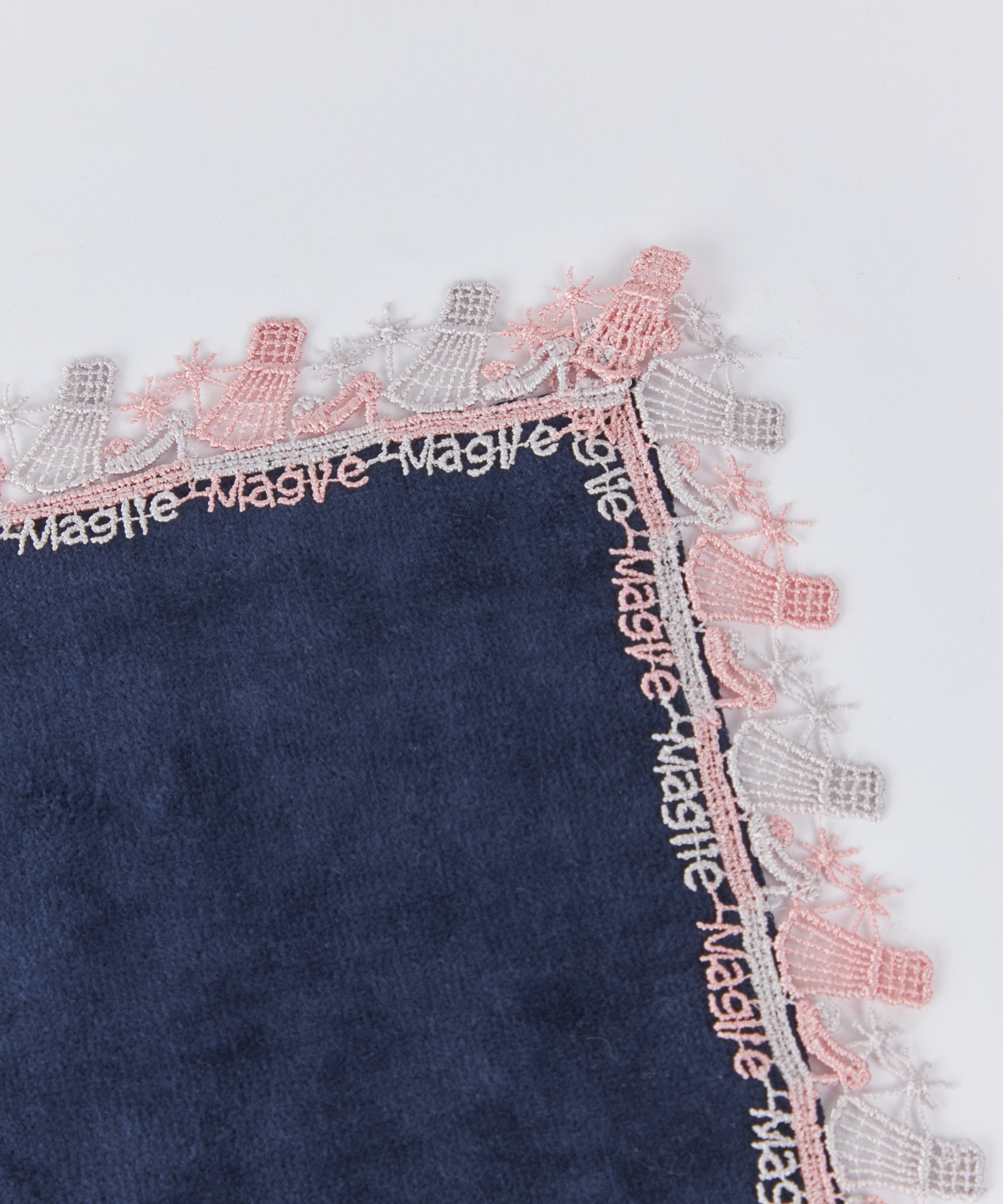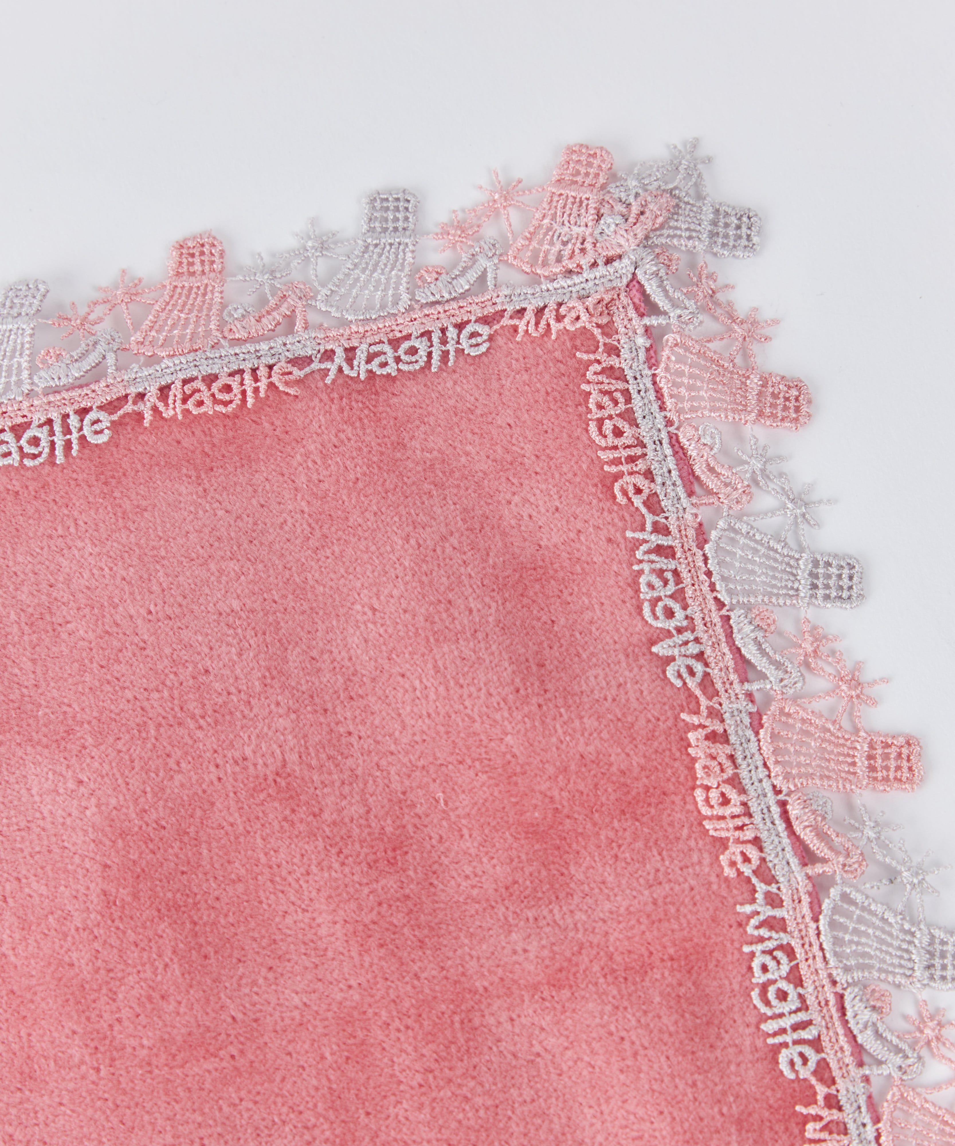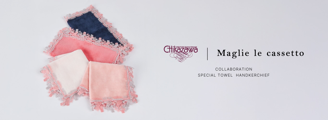 上品で華やかな世界観を持つ<Maglie>と横浜元町の老舗レースブランド<近沢レース店>との初のコラボレーションタオルハンカチ。繊細なレースには、ブランドのアイコンであるワンピースとハイヒールのモチーフデザイン。ハイヒールは「幸せを導く象徴」として、日々を華やかに彩る想いを込めて仕上げました。レースのカラーは、やさしいグレーとピンクを使用。淡いピンクから上品なネイビーまで、日常使いにもギフトにもふさわしい落ち着いたカラーリングで展開します。熟練した職人による丁寧なレースワークと上質なタオル地が織りなす、特別感あふれる一枚です。