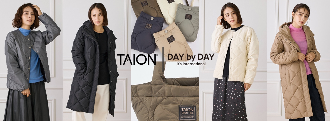 高品質で高機能なインナーダウンを幅広く展開している「TAION」と、DAY by DAY It's internationalがコラボレーションしたアウターアイテム。毎年大人気のクルーネックダウンジャケット、今期新型のフーデットダウンコート、そしてDAY by DAY It's internationalがセレクトしたBAG4型のご紹介。
