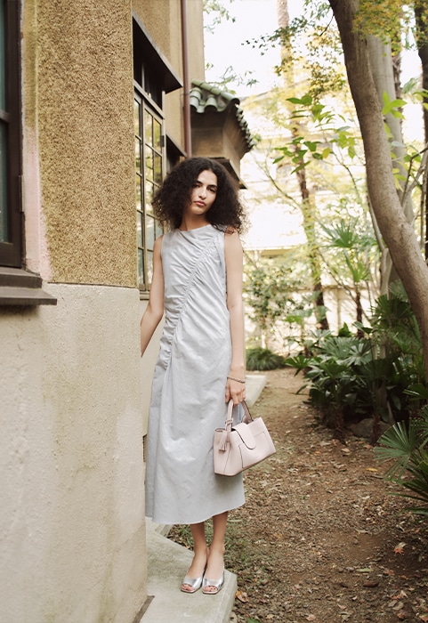 トレンドの横長のシルエットで、お財布、ポーチ、ペットボトルなど、必要なものがしっかり入るサイズ感。