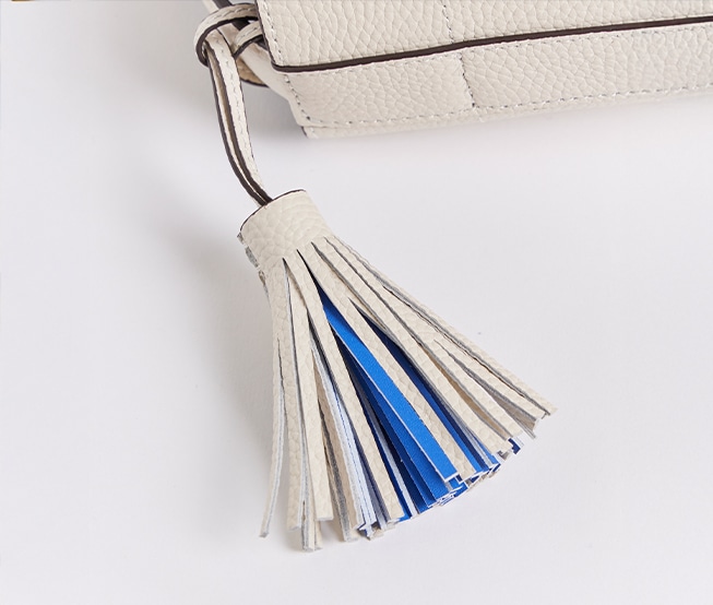 フリンジチャームもリニューアルし、バイカラーデザインに。さらにボリューム感もUPし、より存在感をプラスしてくれます。