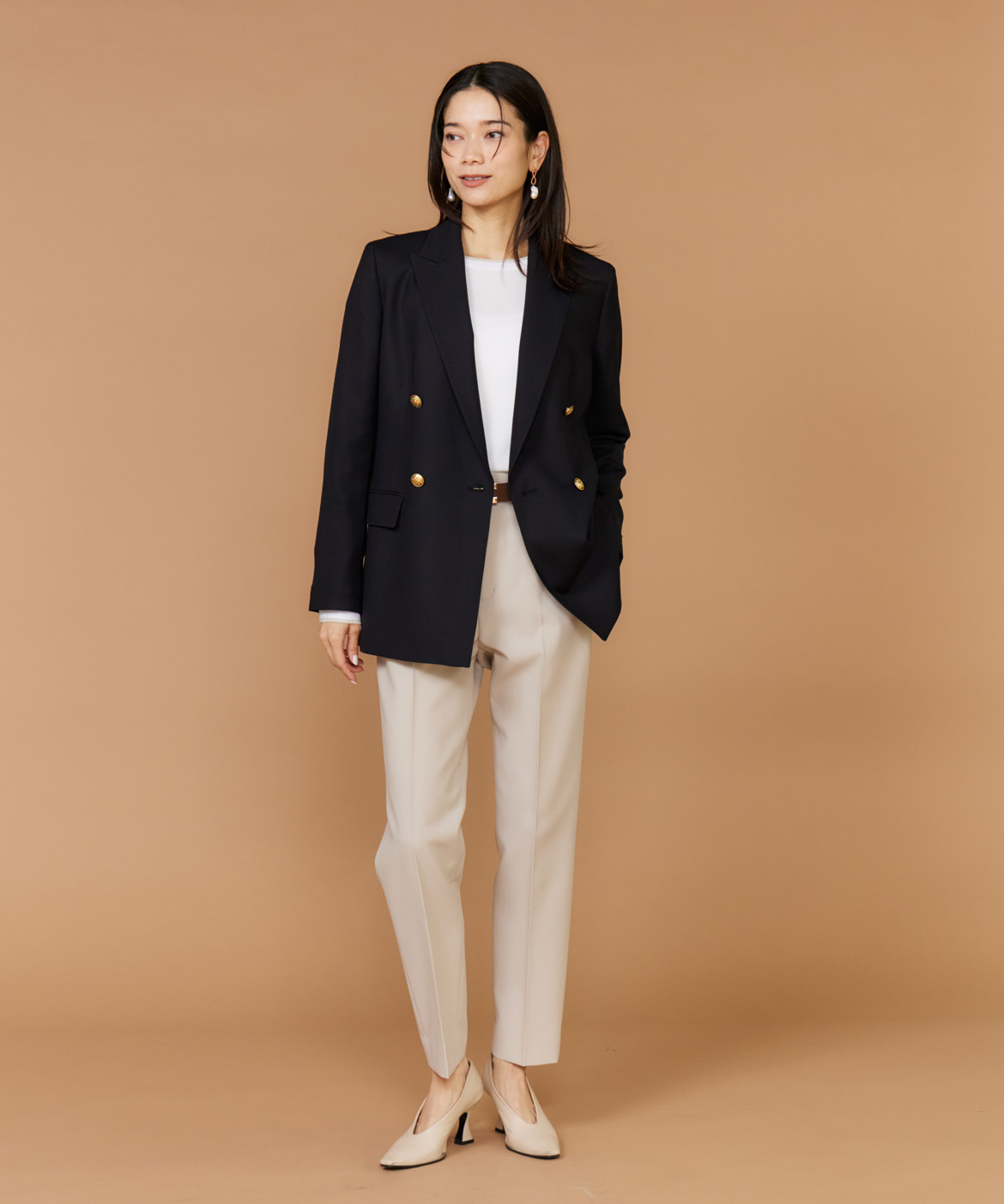 朝晩の冷え込みが残る春は、軽やかなジャケットが活躍。インナーはシンプルな薄手ニットで抜け感を出し、テーパードパンツですっきりとした印象に。春らしい軽やかさをプラスした大人の洗練コーデ。
