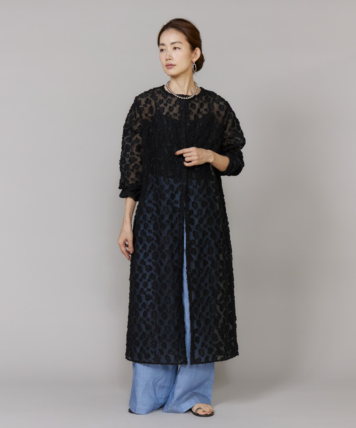 暖かな日に映える軽やかなレイヤードスタイル。透け感のあるロングブラウスが上品さとかわいらしさを演出し、リラックス感のあるパンツで抜け感をプラス。甘さを抑えた大人可愛いバランスが魅力の春コーデです。