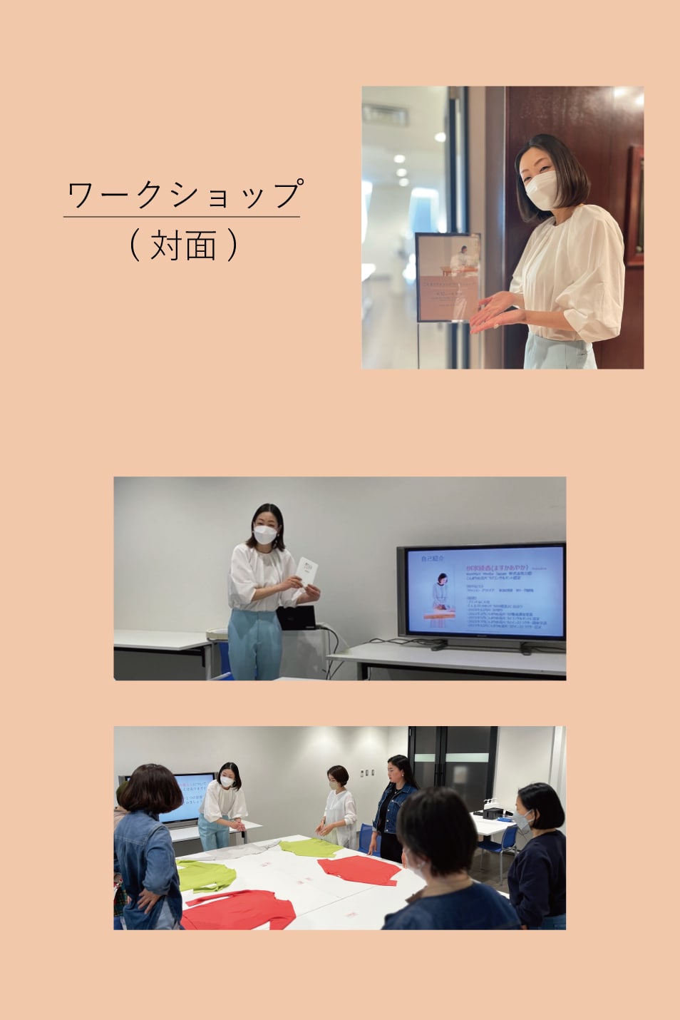 FLANDRE本社があるショールームや店舗で開催。オンラインと同じ流れで進行していきますが、オンラインでは実現できない洋服の「おたたみ実践」があります。意外と知らない「効率よく、皺になりにくく、取り出しやすい」FLANDREならではの畳み方をこんまり(R)メソッドに準じてレクチャーし、大好評をいただいています。最近では百貨店での開催も行っており、回を重ねるごとに片づけで「品のある丁寧な暮らし」を手に入れて欲しい強い思いが伝わりワークショップ後に「片づけレッスン」にお申込みされる方が増えています。