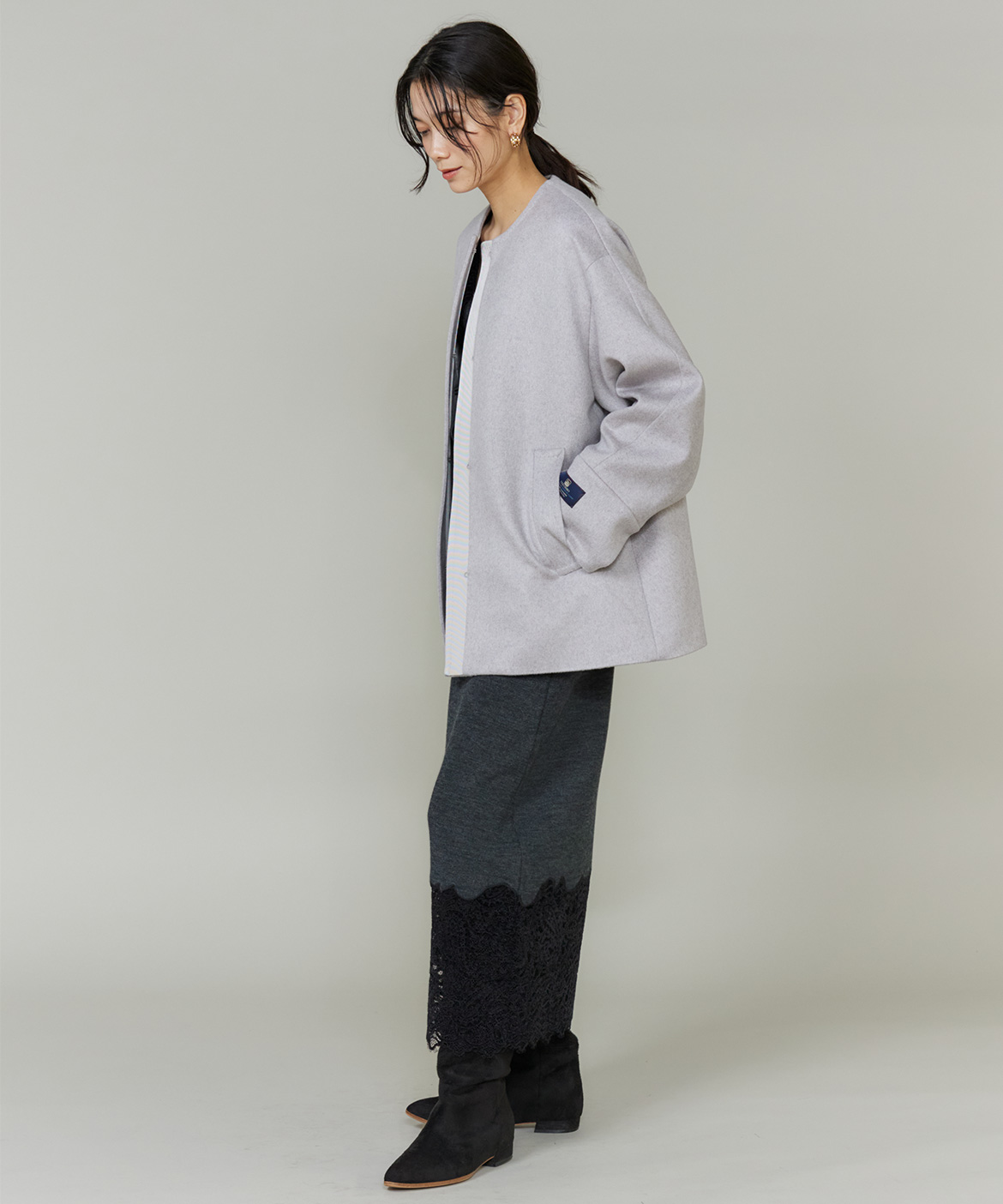 《CONTESSA》カシミヤノーカラーショートコート