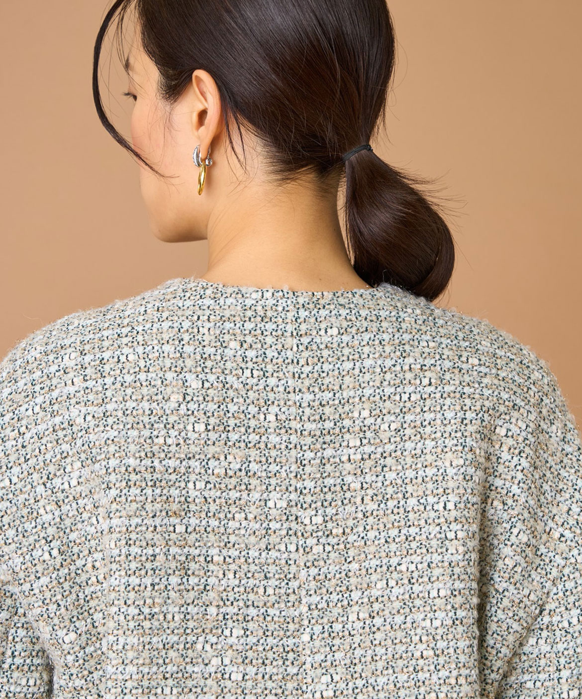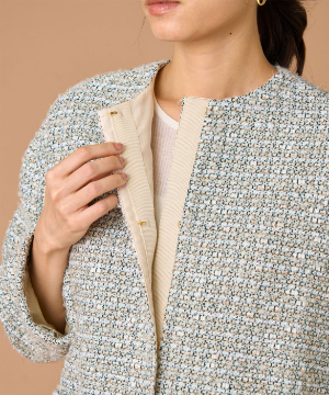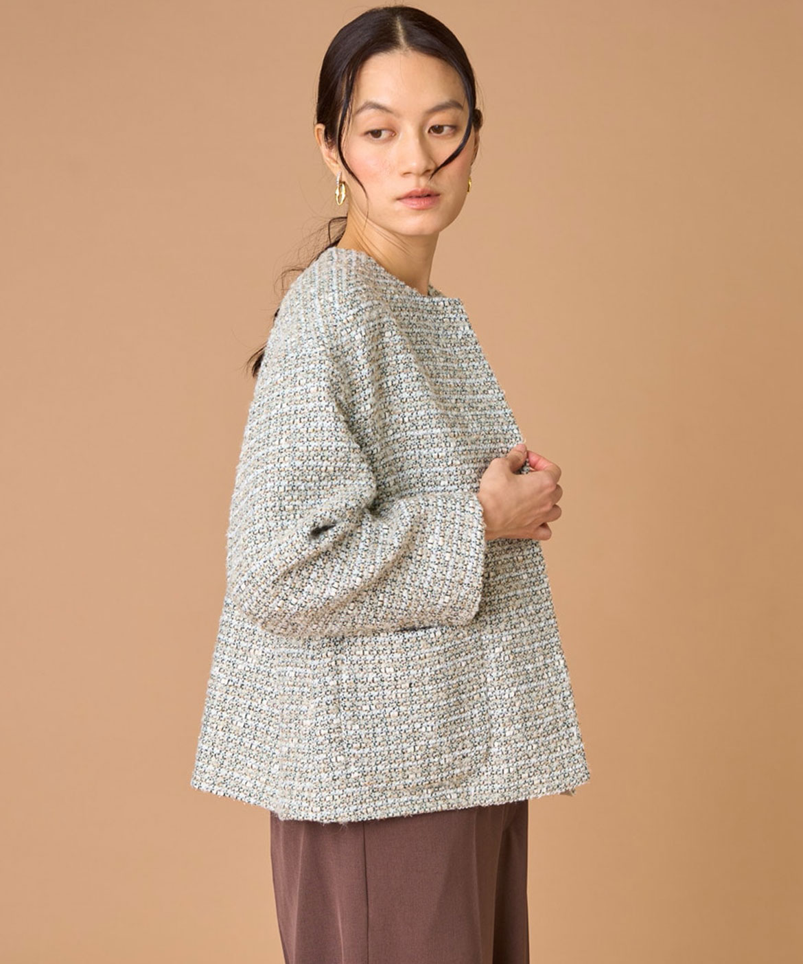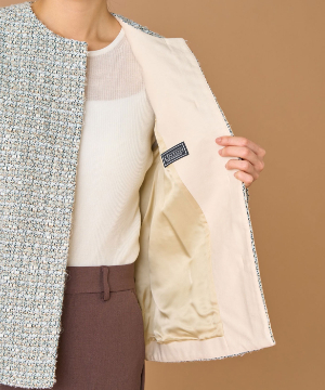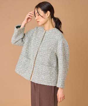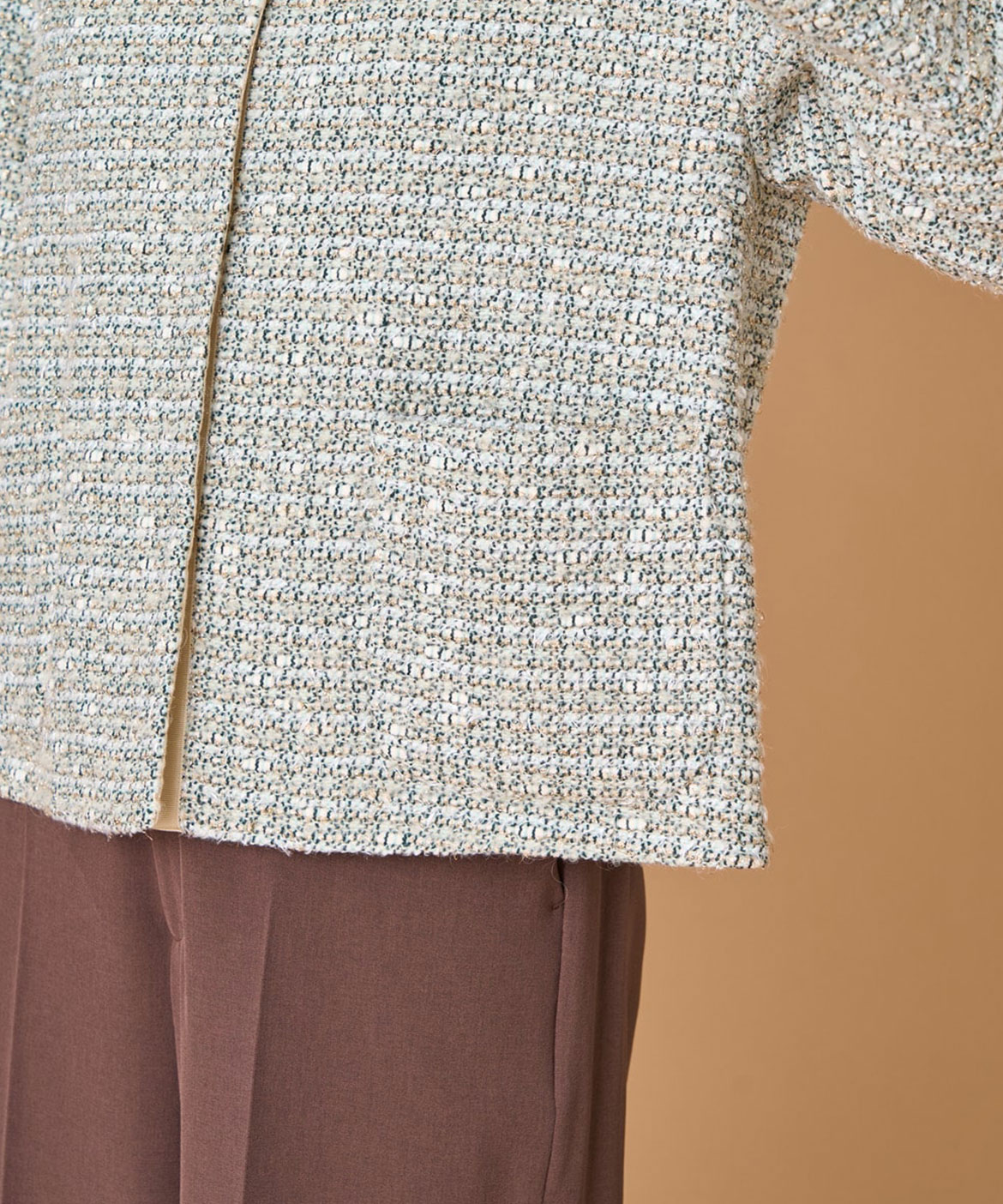 イギリスの老舗LINTON社の高品質なツイードでデザインされたジャケットです。様々な糸によって生み出される表情が上品かつクラス感のある雰囲気になっています。羽織るだけでコーディネートの主役になるアイテムです。オフィスやセレモニー、デイリーまで幅広いシーンで活躍出来るアイテムです。